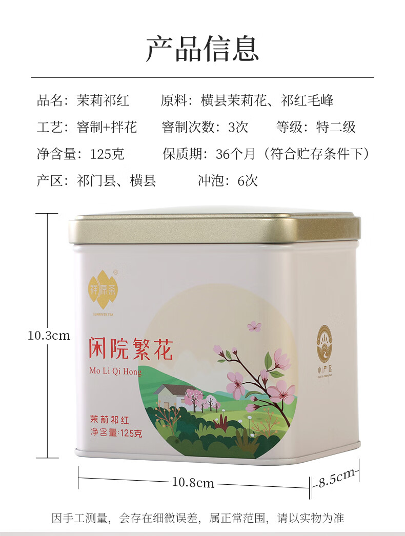 祥源丨闲院繁花 茉莉祁红 特二级 125g