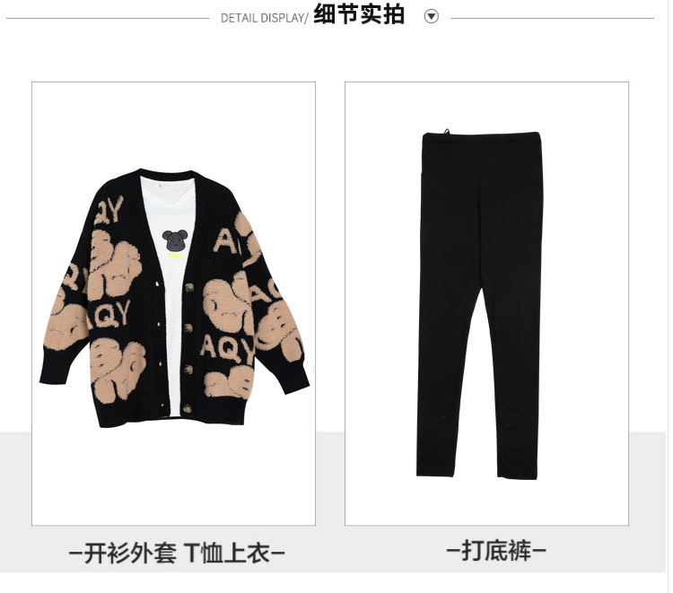 【不挑孕期 柔软舒适】保暖三件套孕妇套装时尚款外出两件套孕期产前产后长袖上衣秋冬季外套针织毛衣