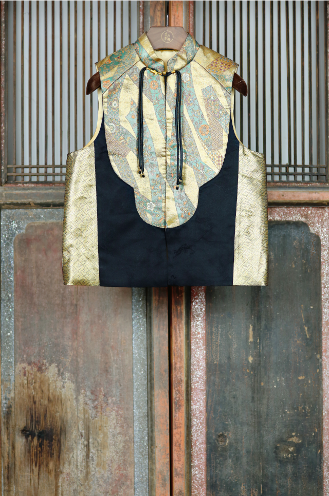盛唐牡丹盛奢系列 | 彩金织金纬锦西阵织马甲-黑色