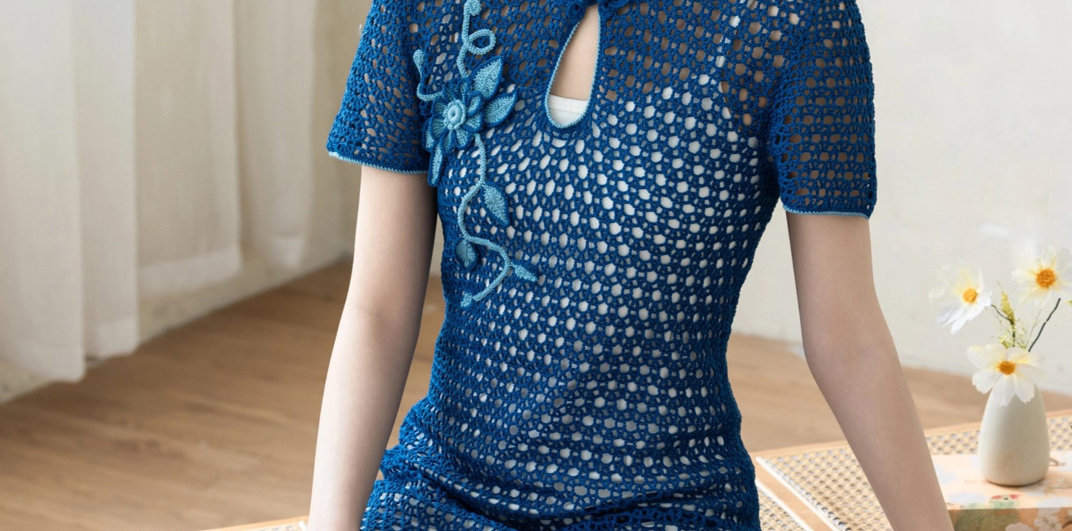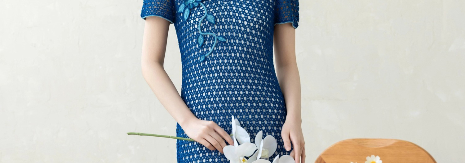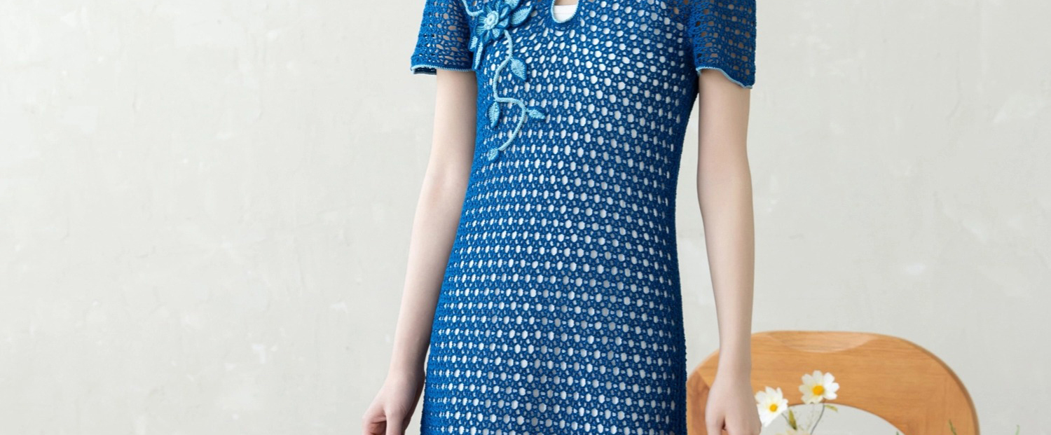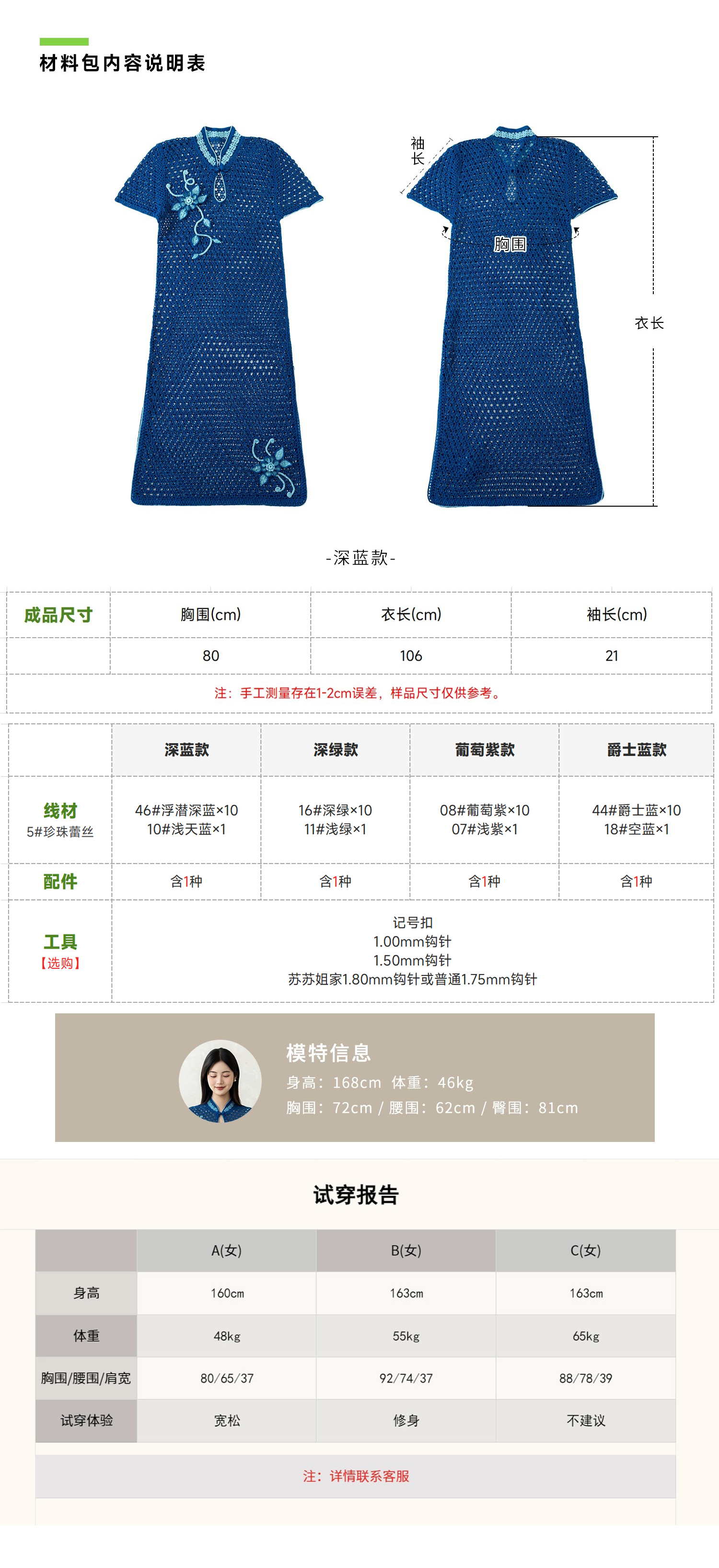 苏苏姐家水波微皱旗袍蕾丝裙手工diy衣服钩针编织毛线团材料包