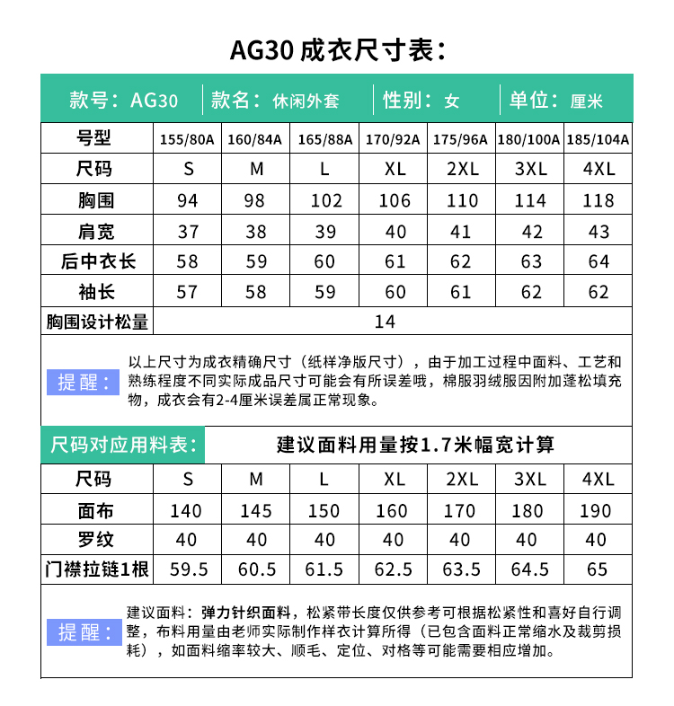 裁缝学苑 AG30女士长袖棒球服休闲开衫外套11服装裁剪图牛皮纸样