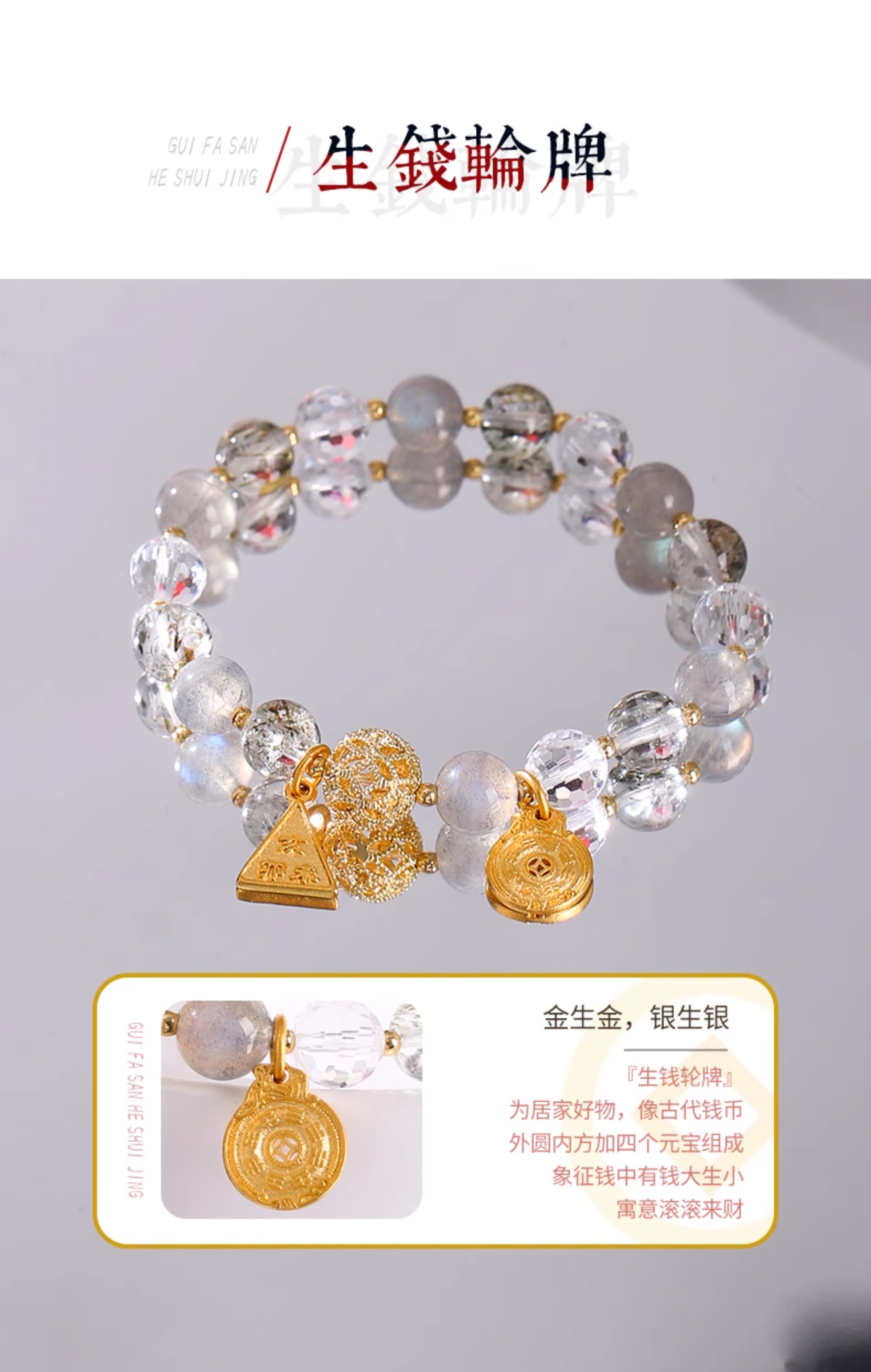 【祈愿吉品】灰月光三合手链水晶钱母手串