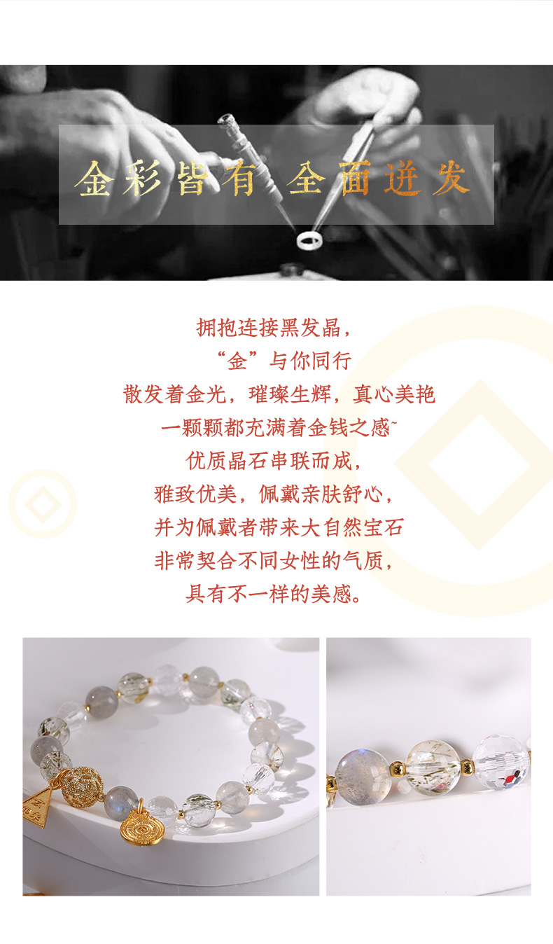 【祈愿吉品】福气东来茶晶白水晶手链 男女