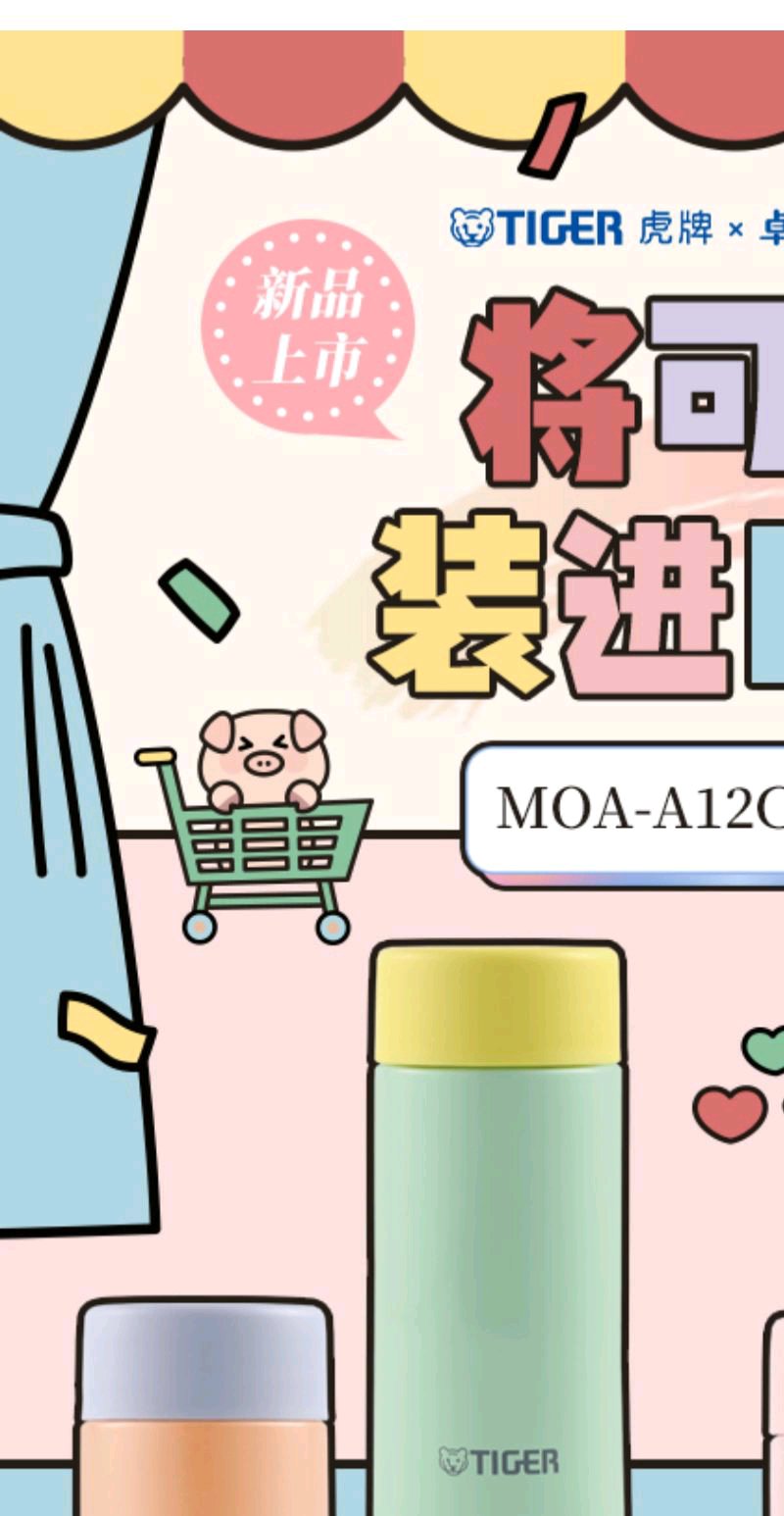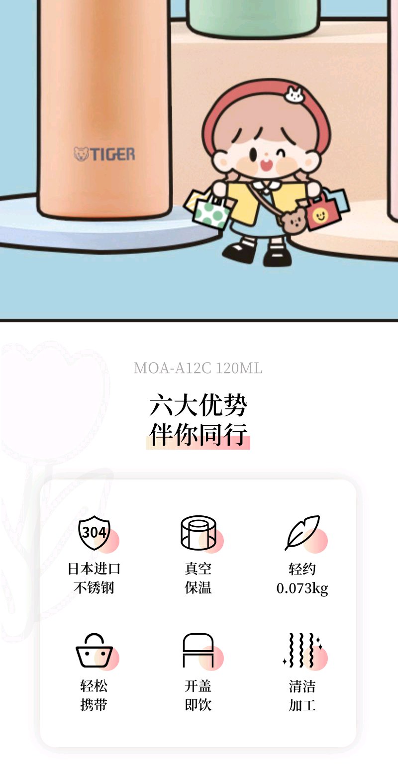 【6F】tiger虎牌卓大王联名款MOA-A12C可爱迷你小清新保温袋杯120ML