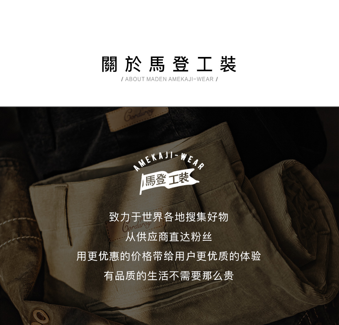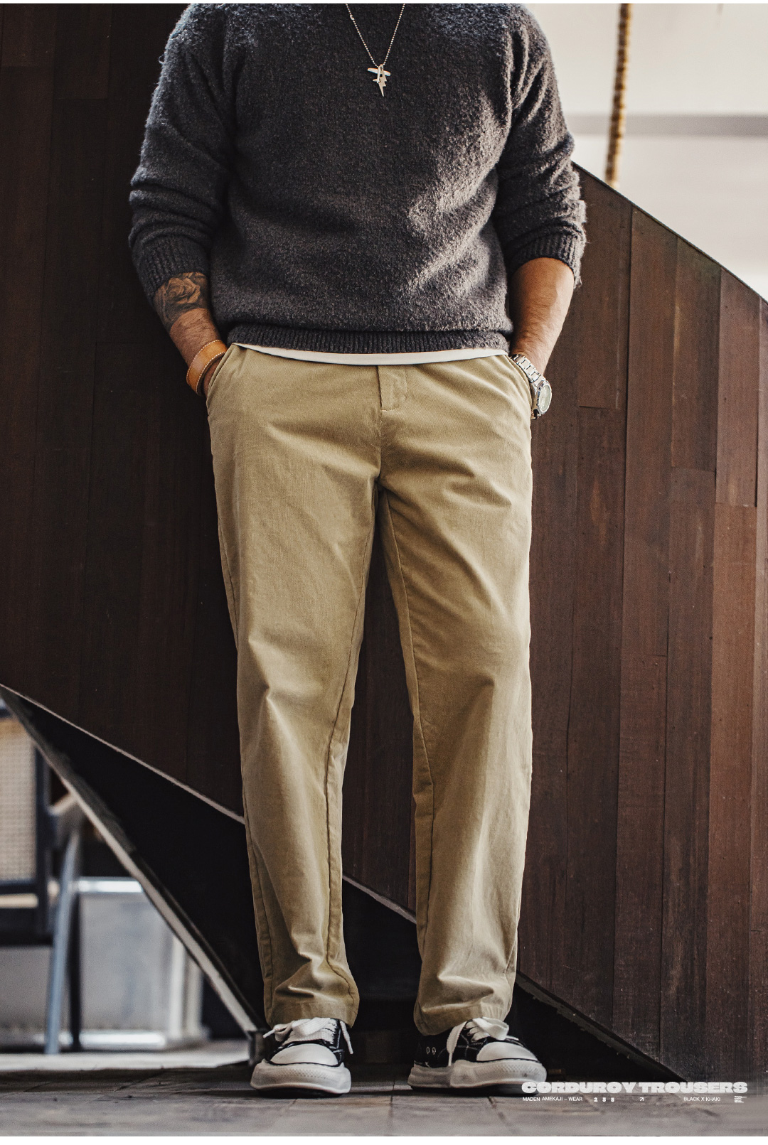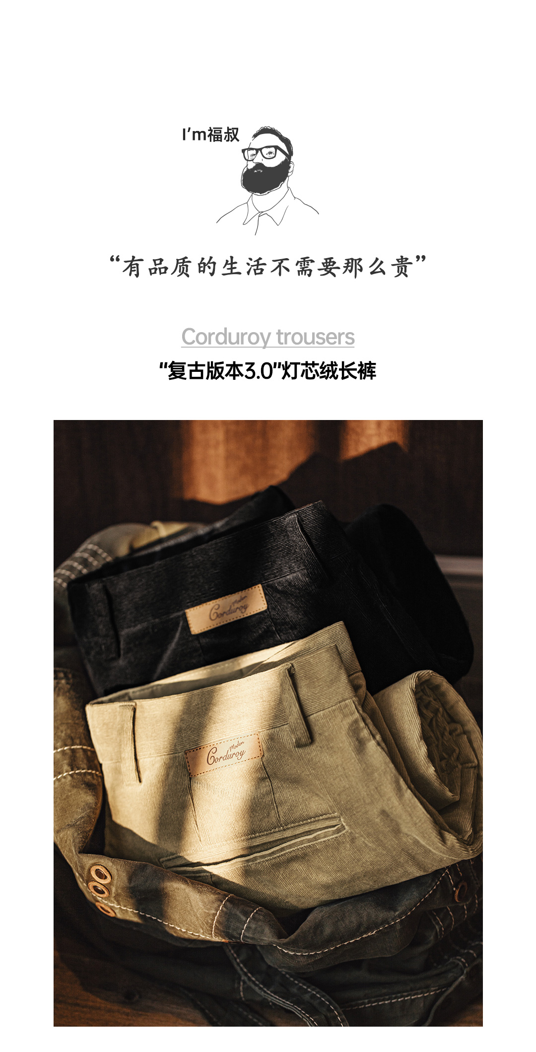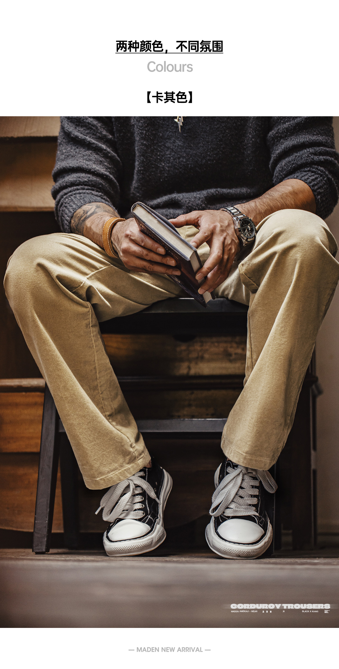 马登工装 美式复古灯芯绒休闲裤子阿美咔叽小众直筒宽松长裤男秋