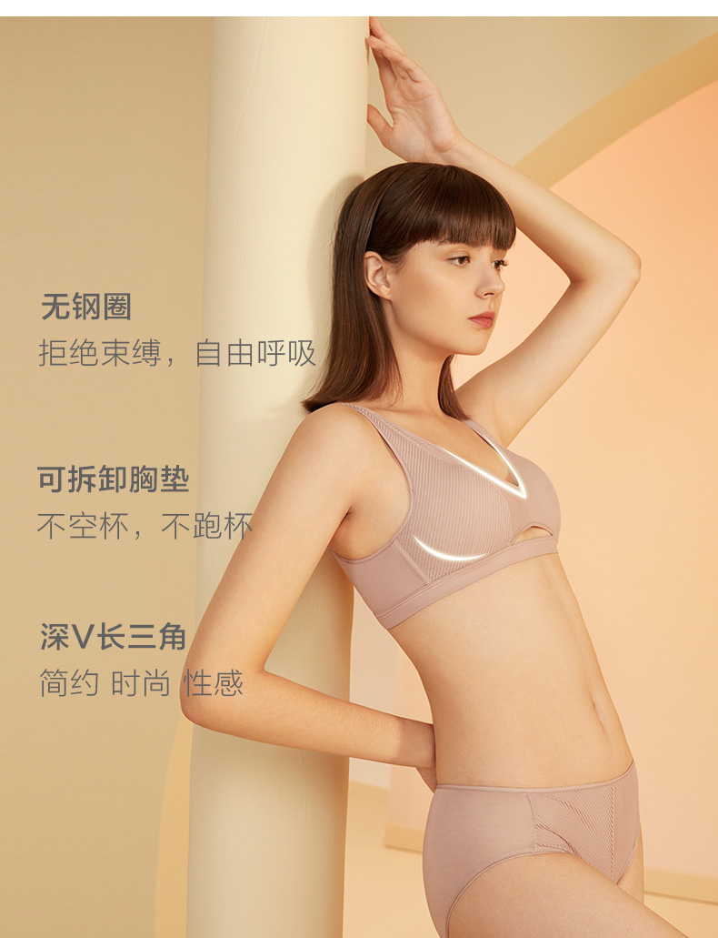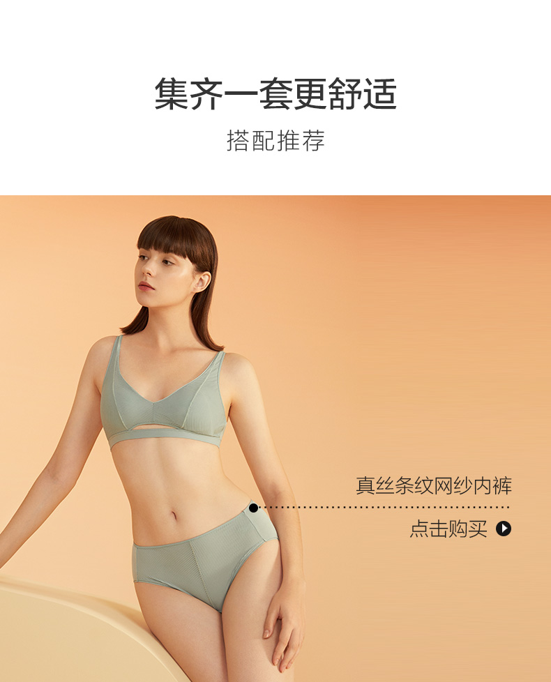金三塔桑蚕丝条纹网纱拼接内衣 无钢圈薄款无痕文胸NZFBA313