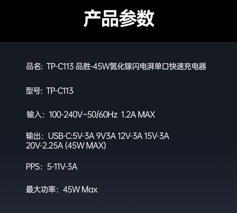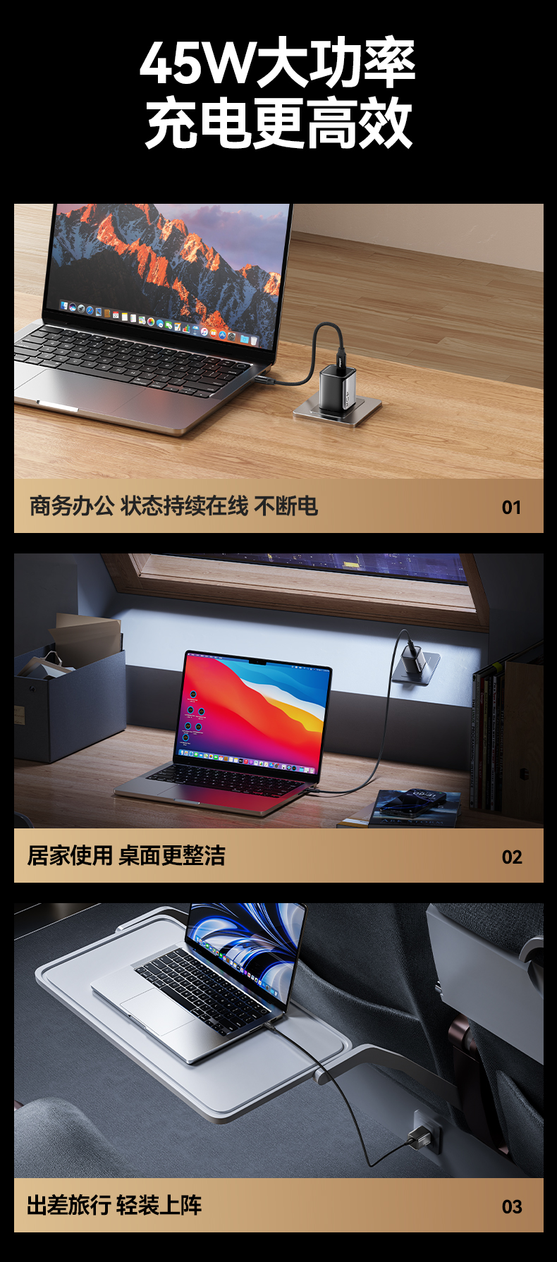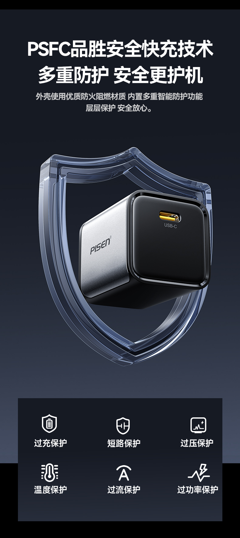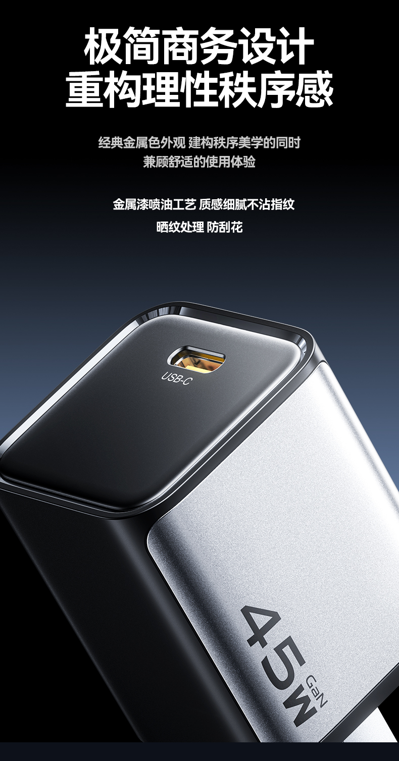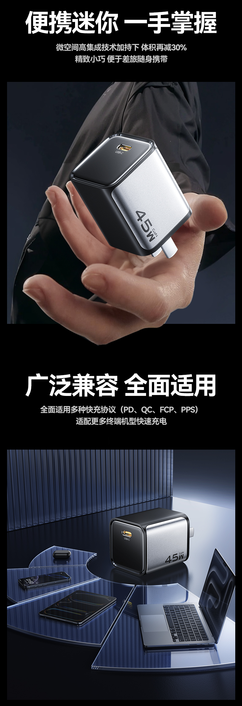 品胜 45W氮化镓闪电湃单口快速充电器Type-C快充头适用苹果16充电器iphone16e/ProMax/plus苹果华为三星手机插头