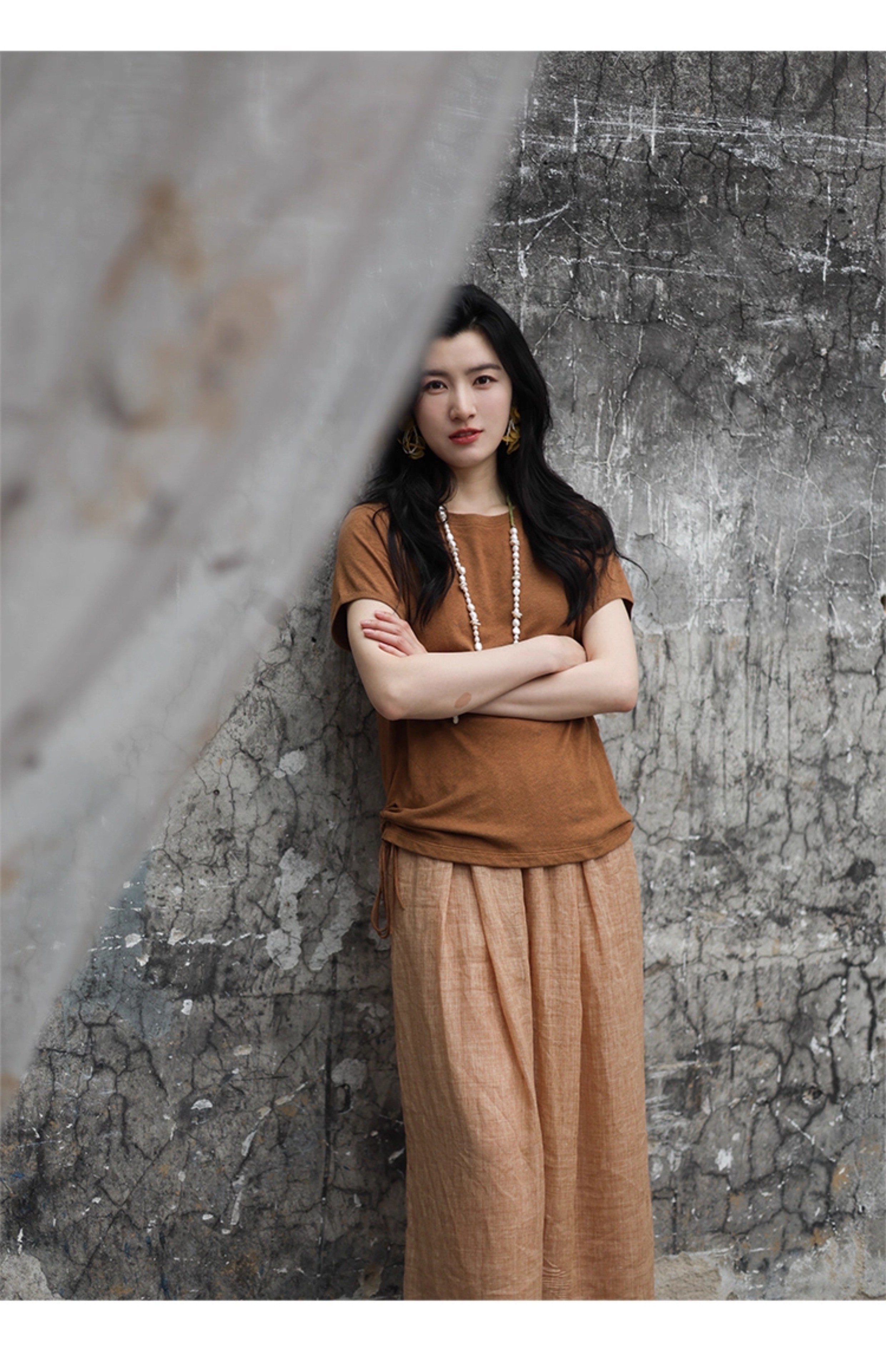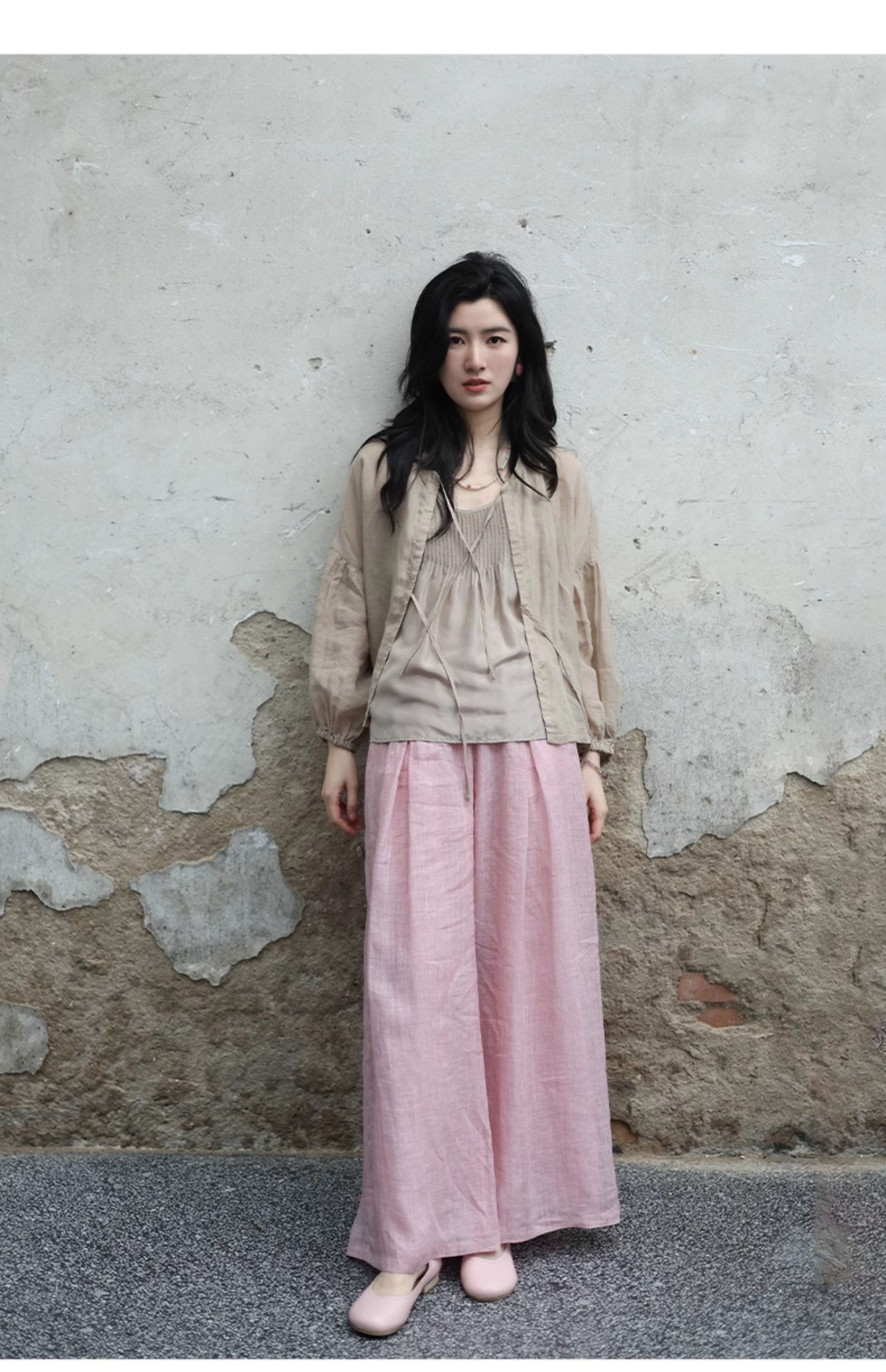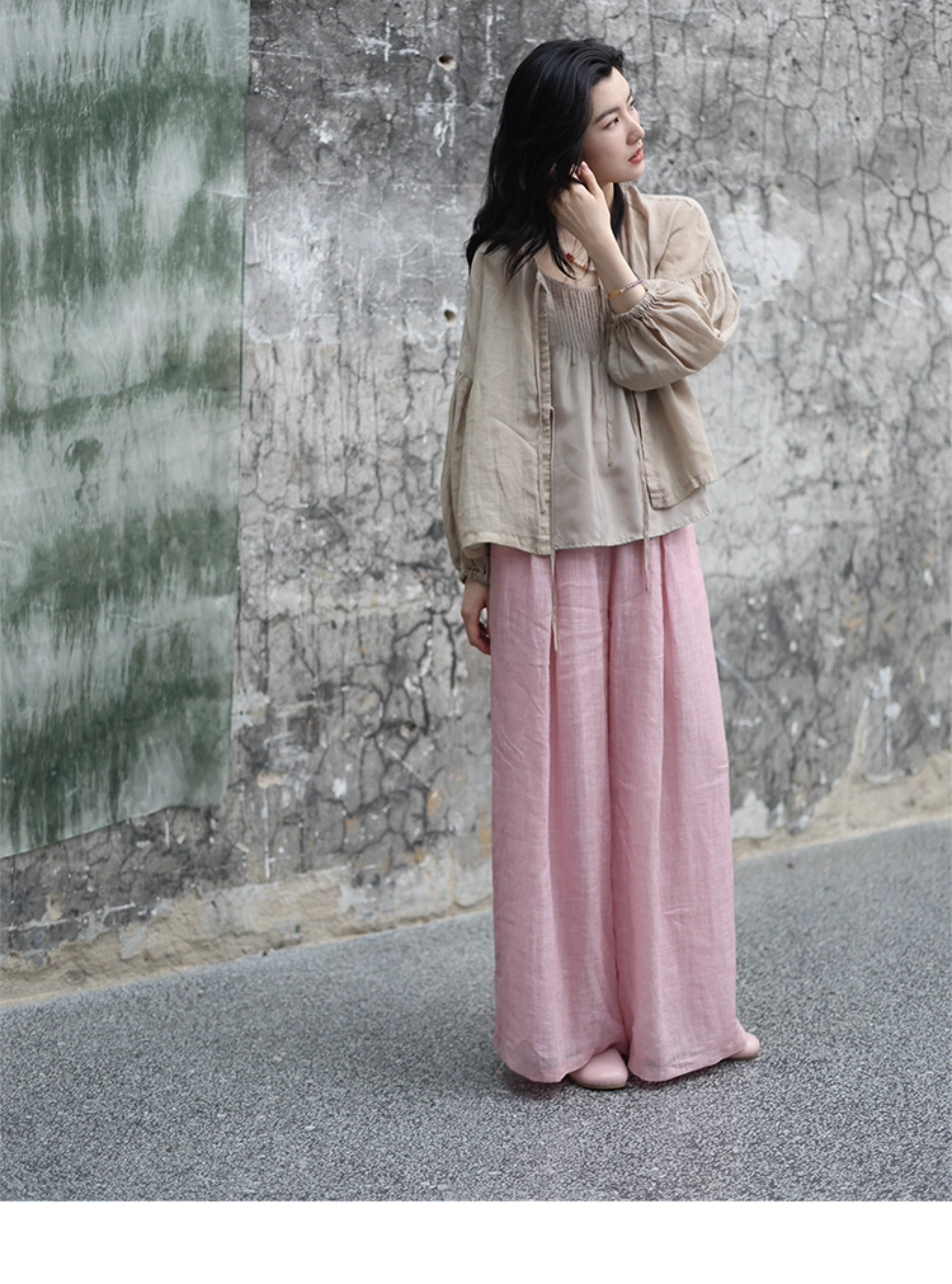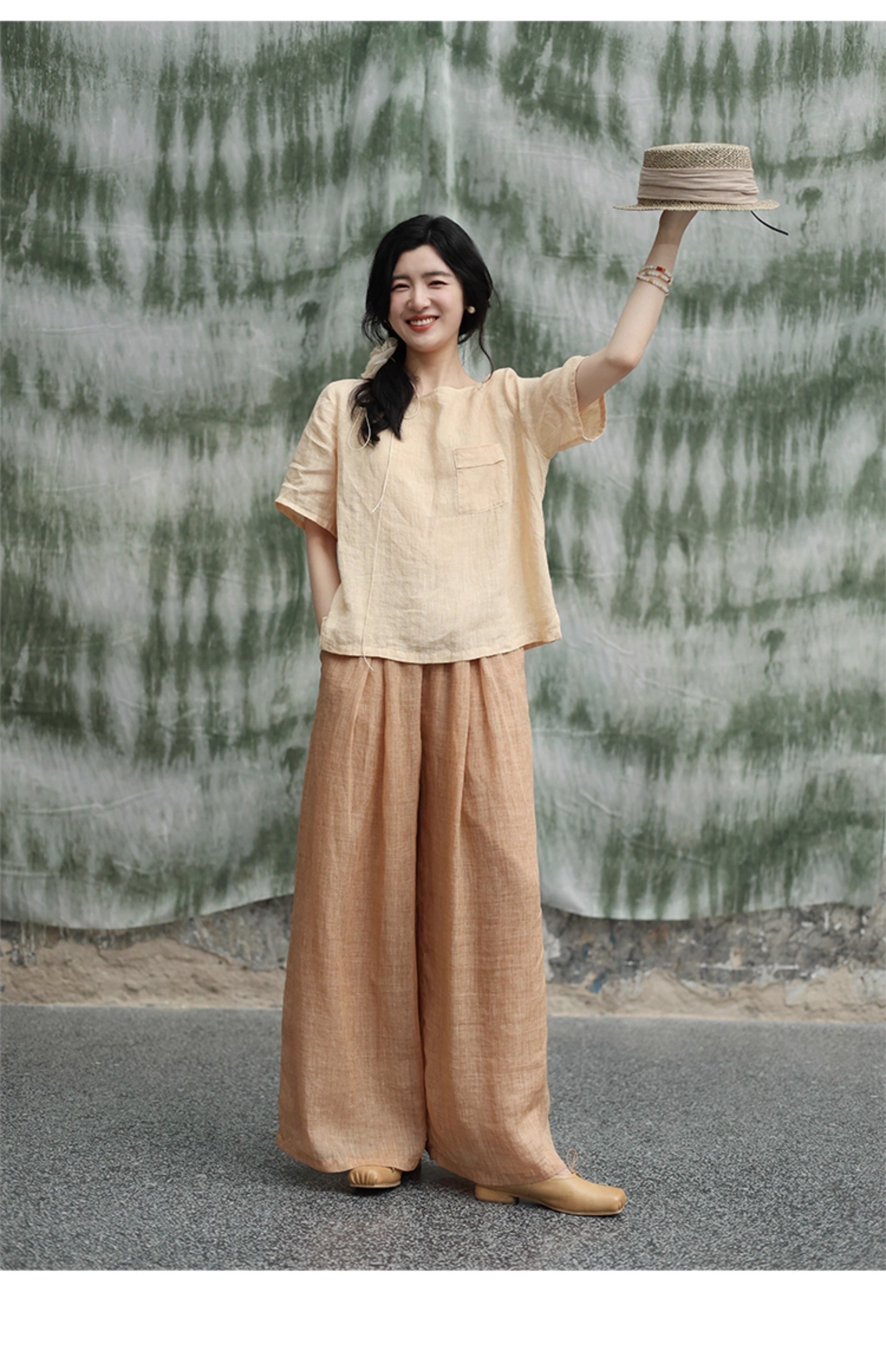 绽放女装316朵/【甜茶系列·玫瑰黄茶】高支苎麻炒色灯笼裤休闲裤