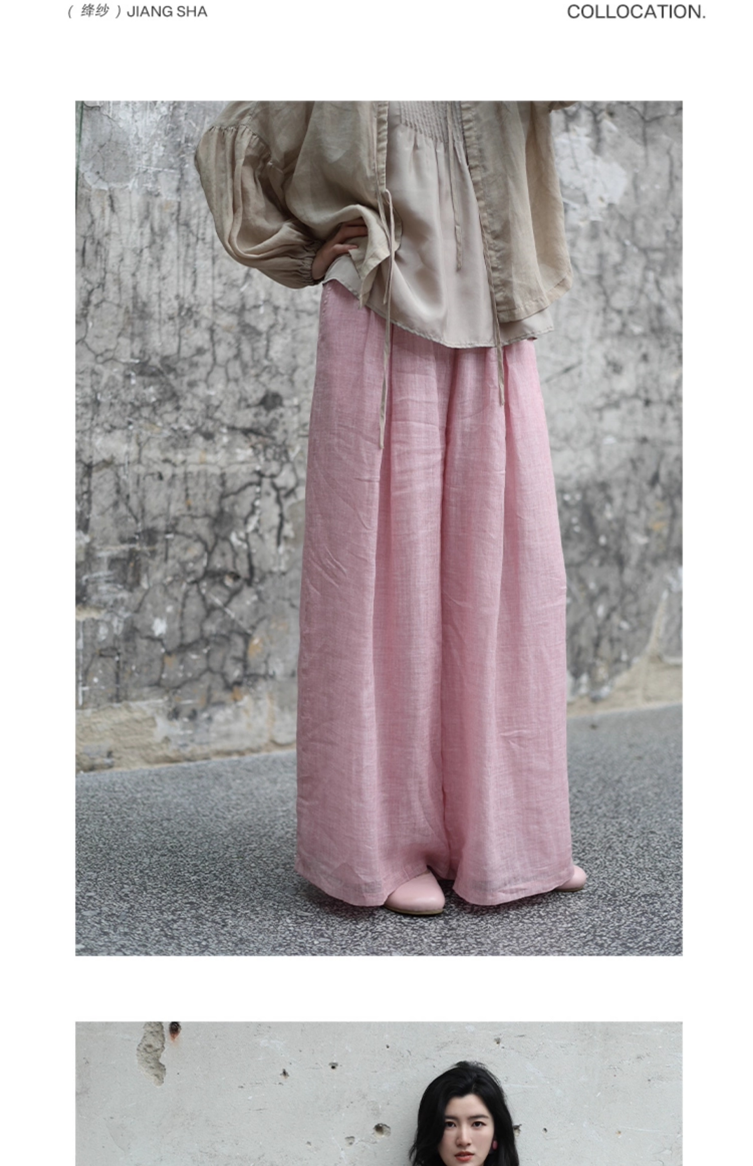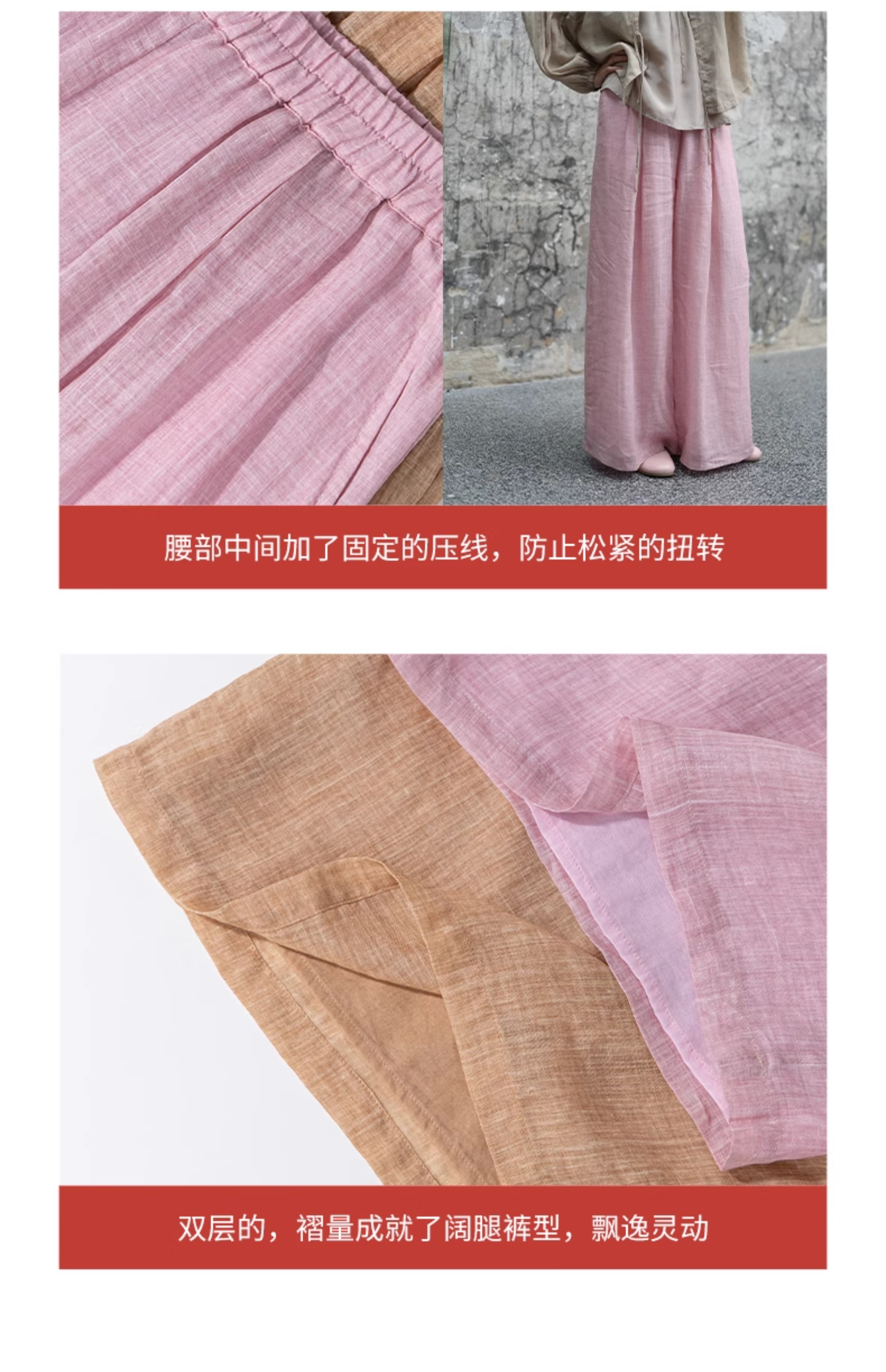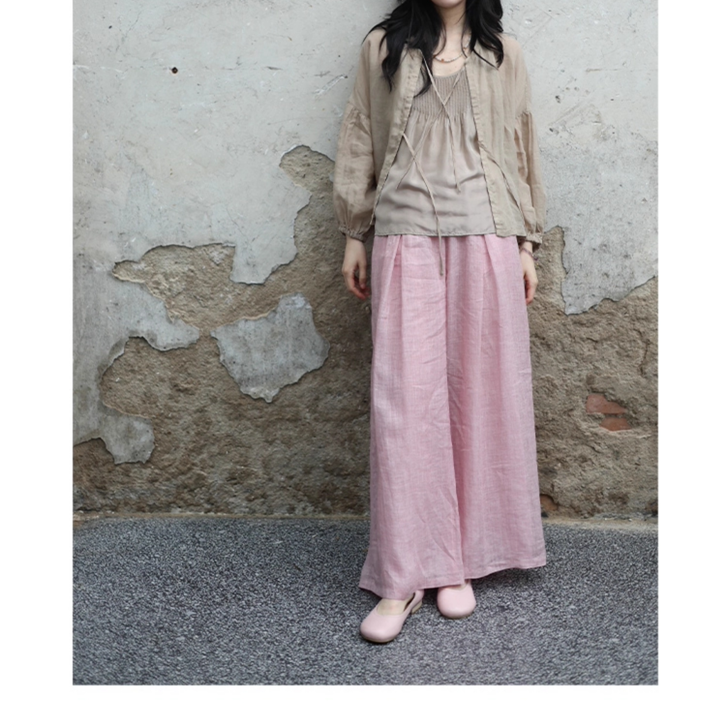 绽放女装316朵/【甜茶系列·玫瑰黄茶】高支苎麻炒色灯笼裤休闲裤
