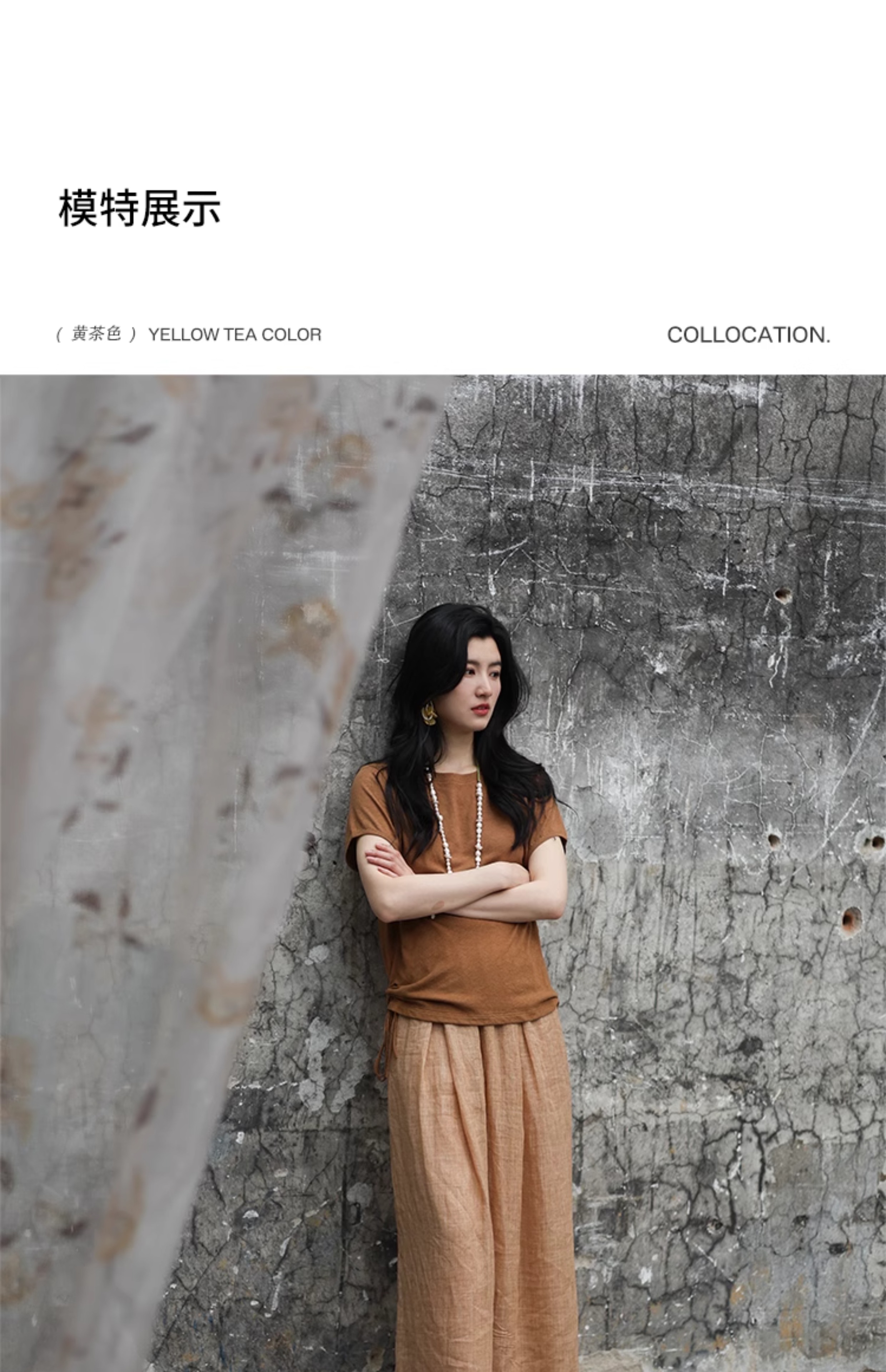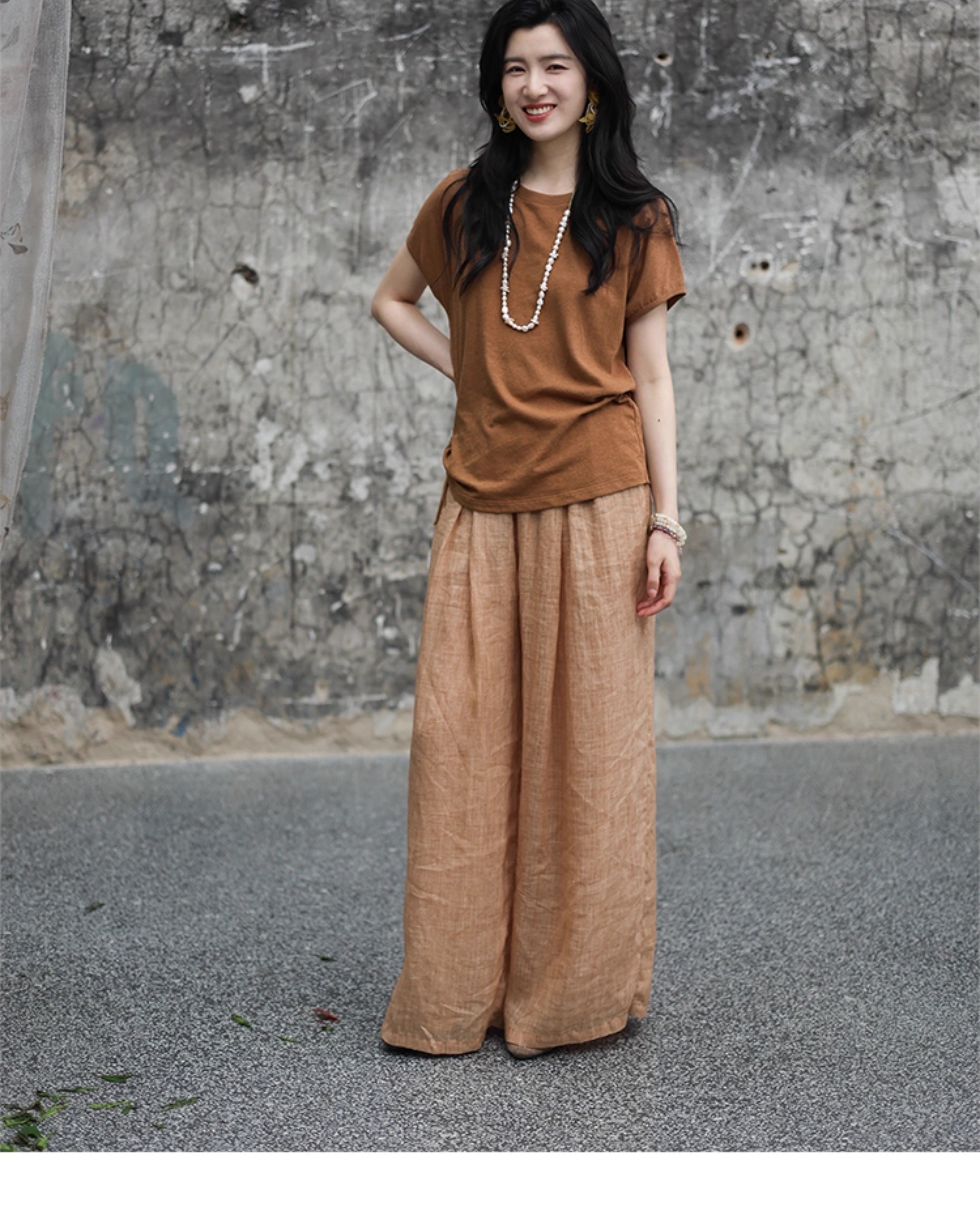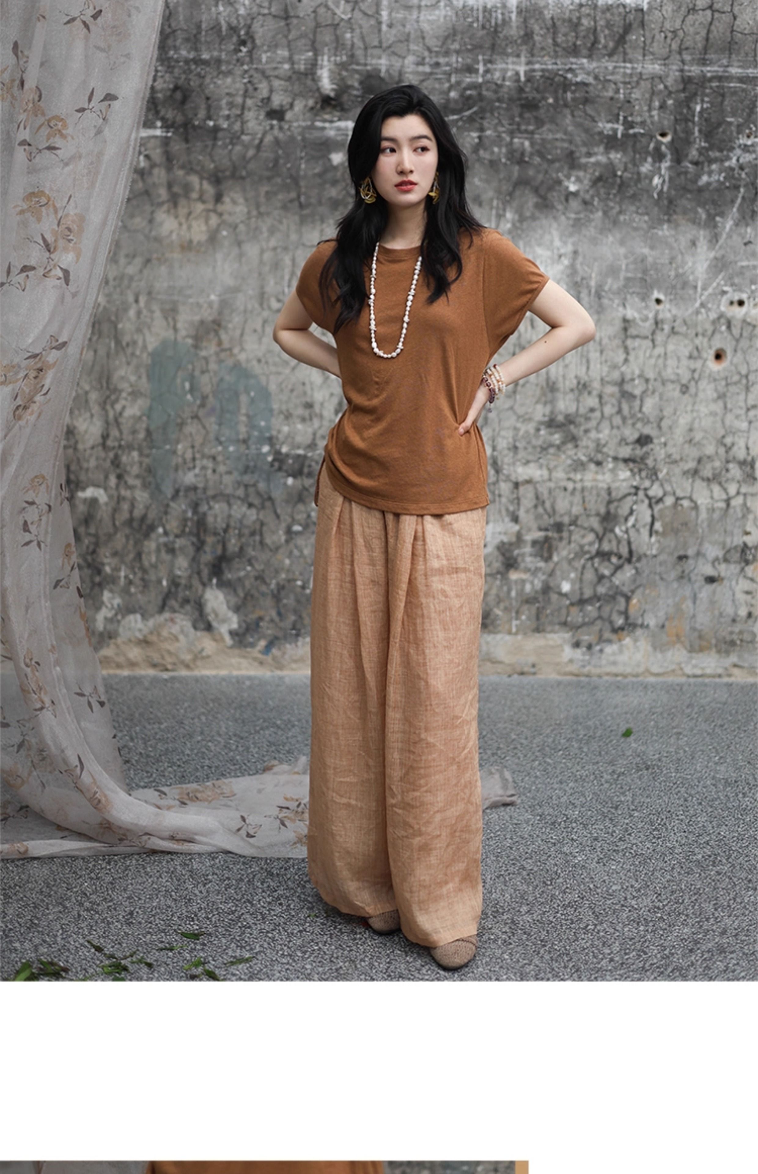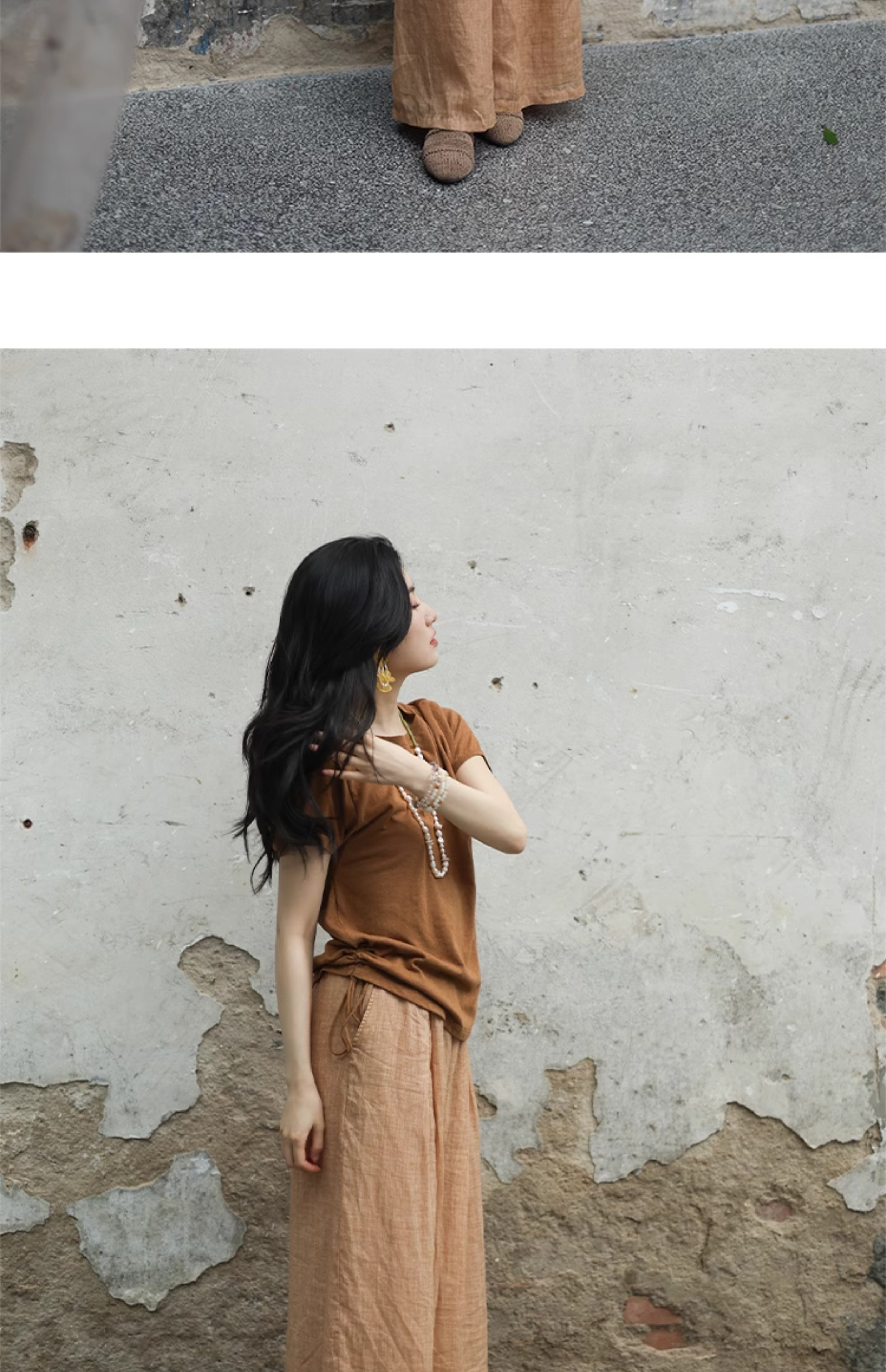 绽放女装316朵/【甜茶系列·玫瑰黄茶】高支苎麻炒色灯笼裤休闲裤