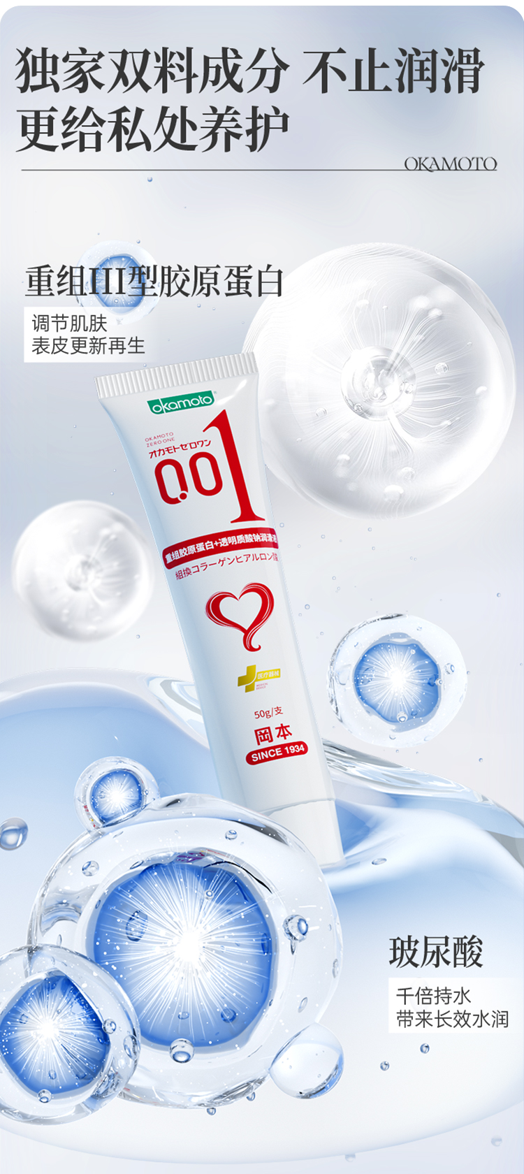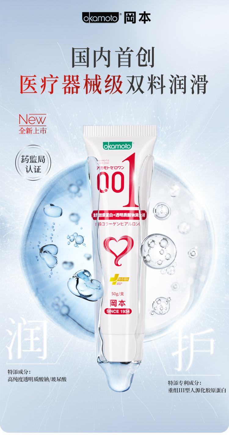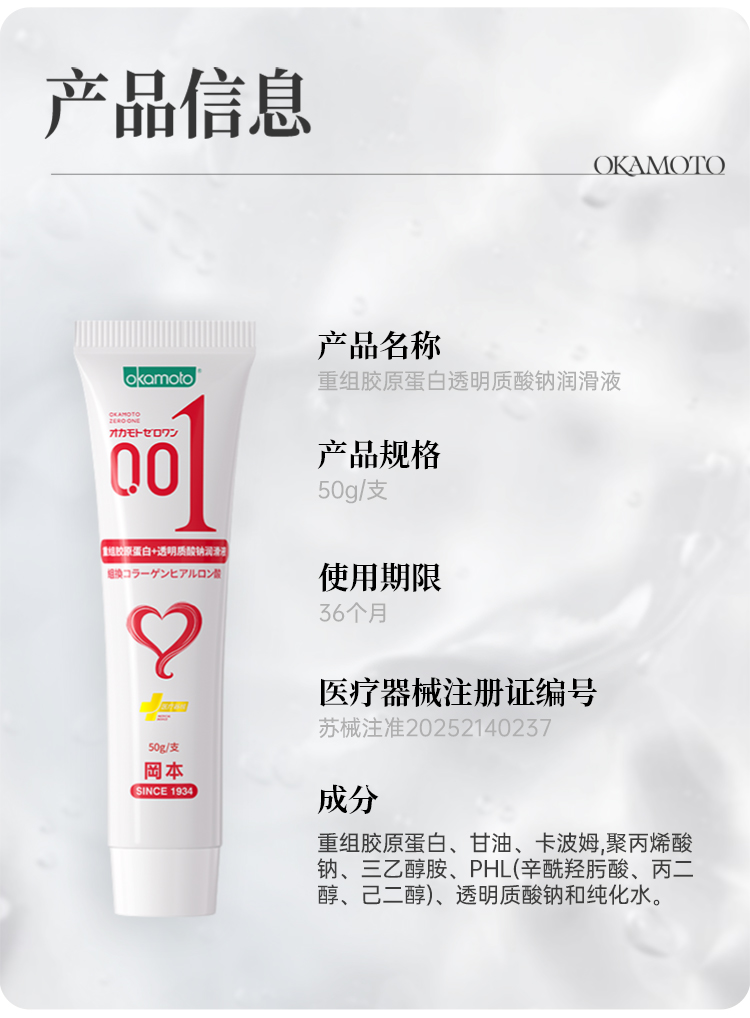 【001润滑液】2支装 冈本0.01胶原蛋白润滑液50g 199-100 OKAMOTO冈本官方商城