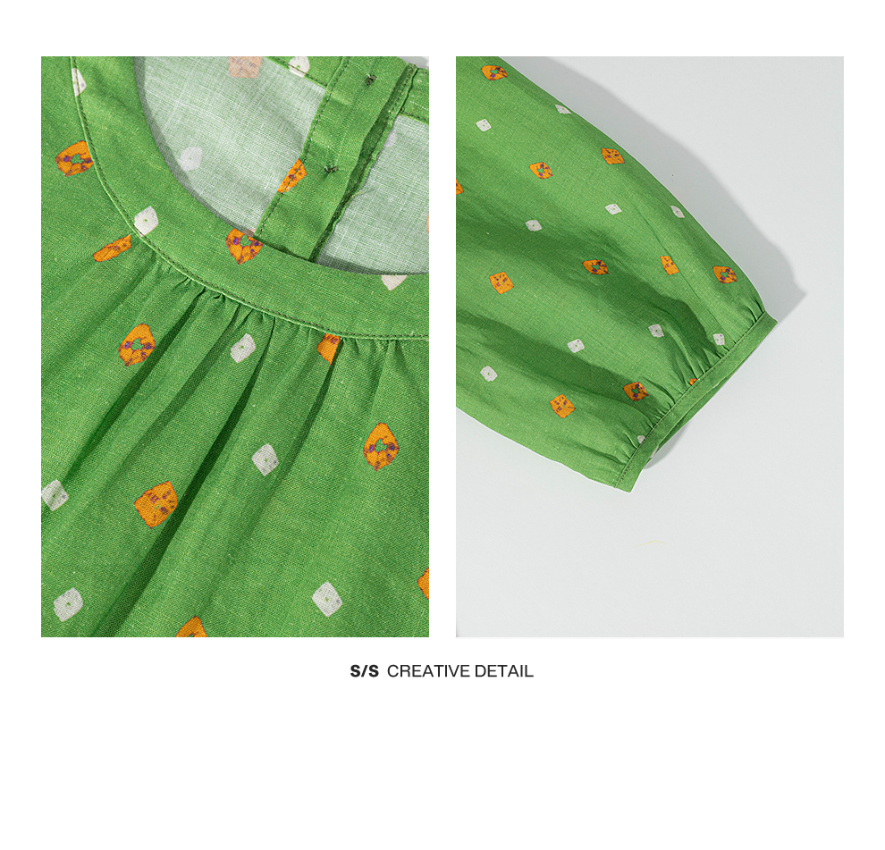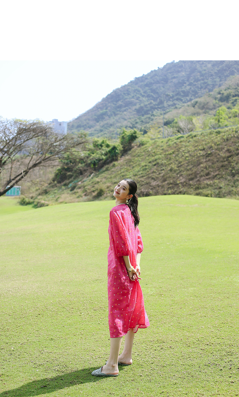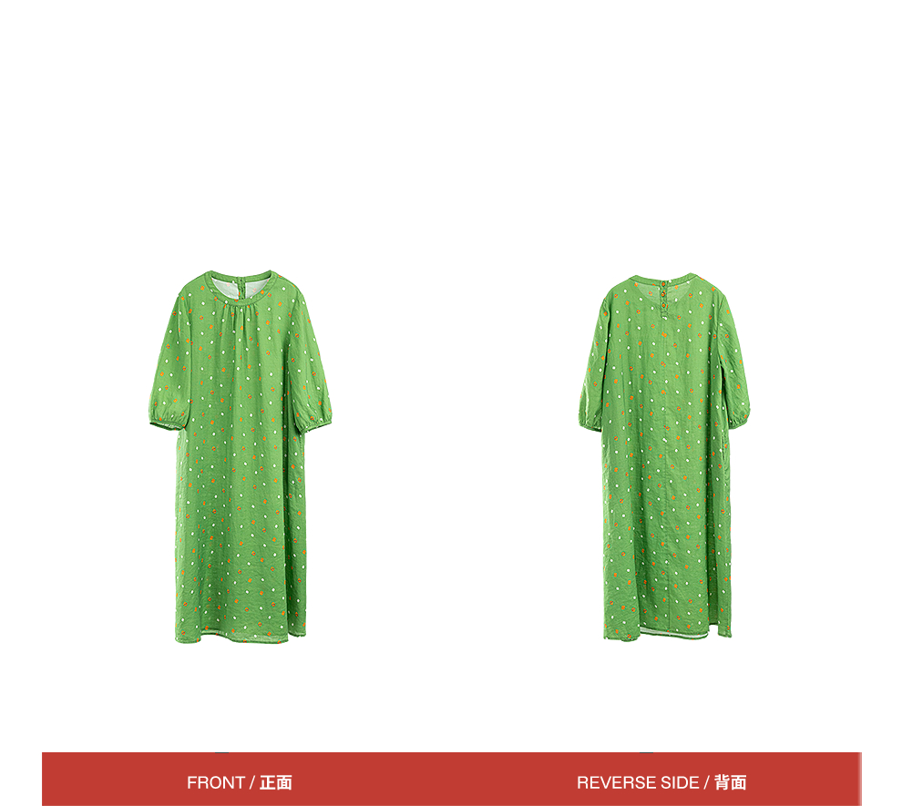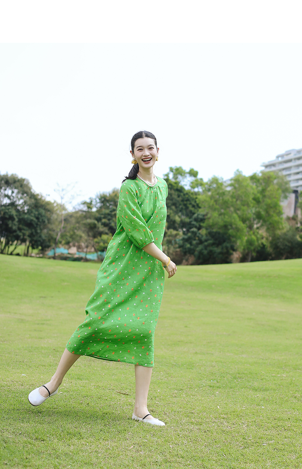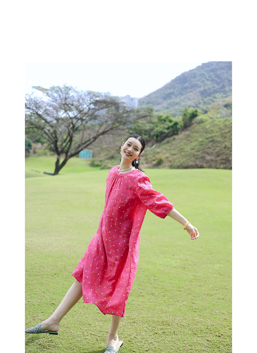 绽放旅行女装202朵/雨点裙春季小波点印花灯笼袖文艺七分袖连衣裙