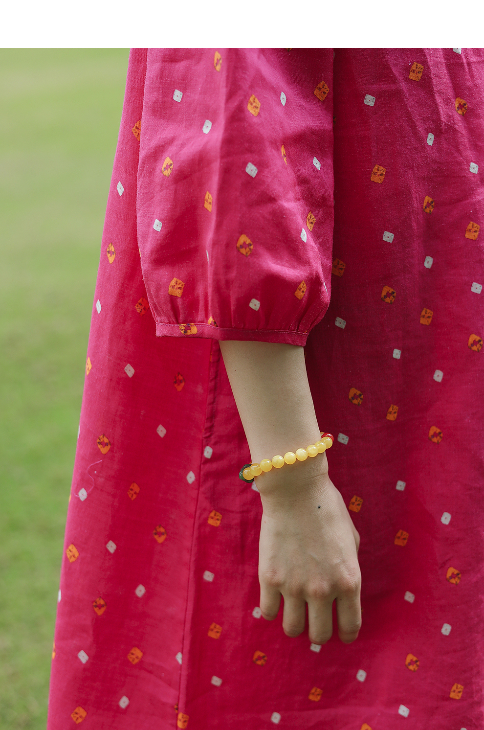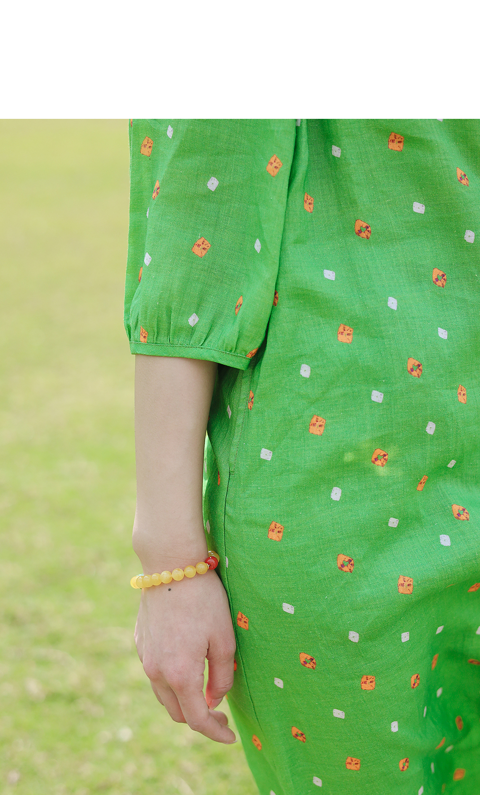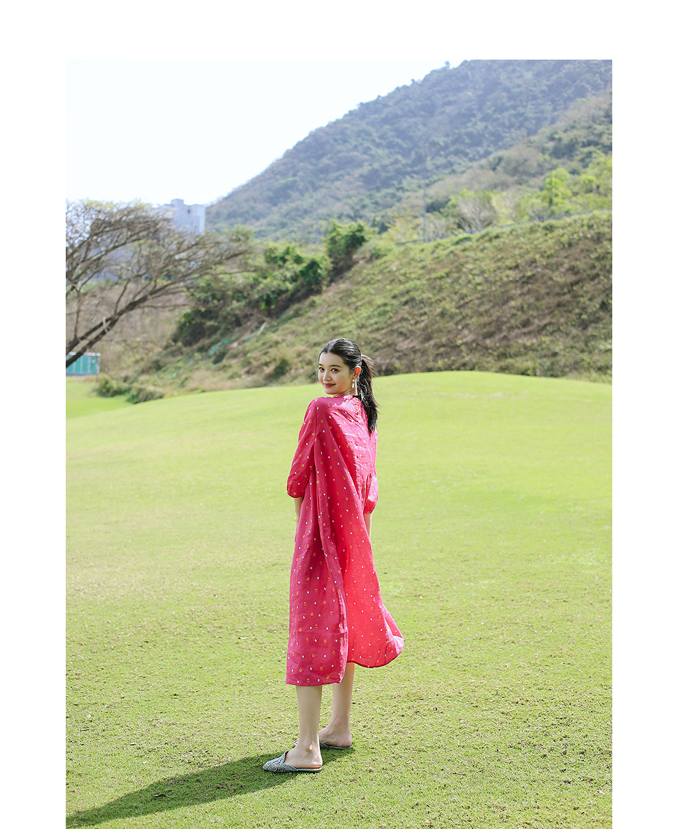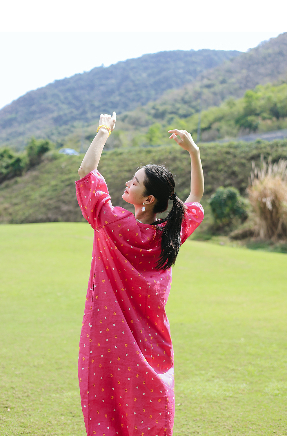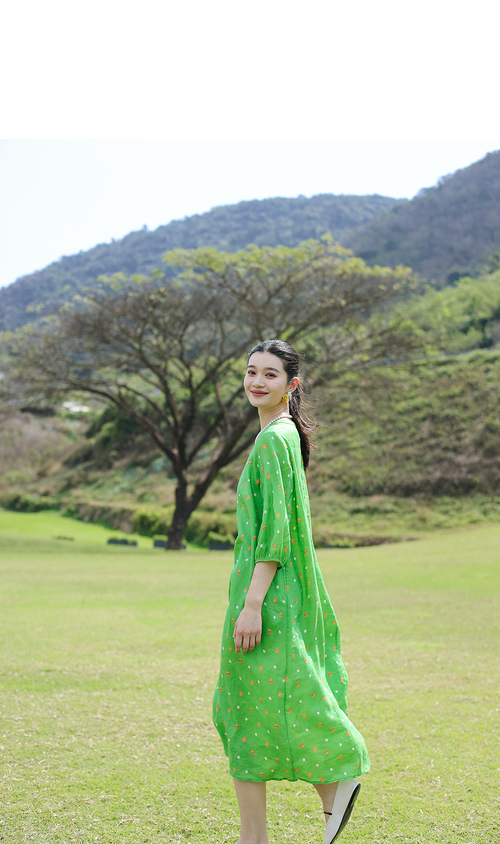 绽放旅行女装202朵/雨点裙春季小波点印花灯笼袖文艺七分袖连衣裙