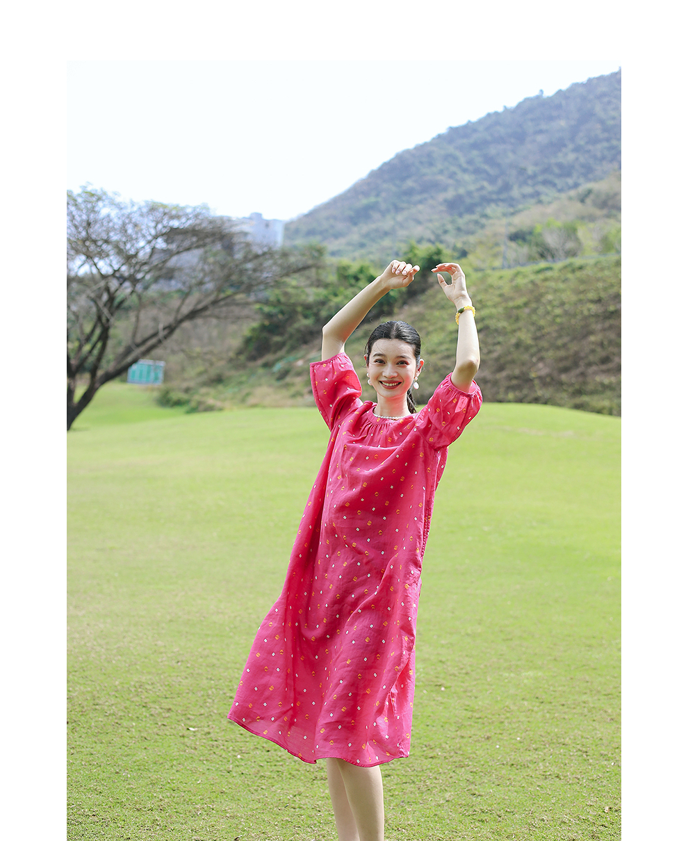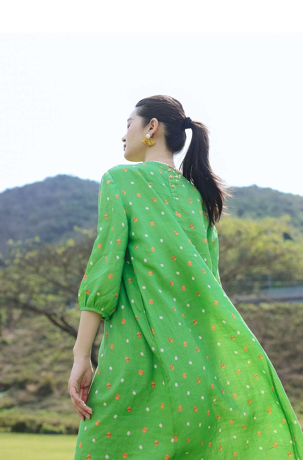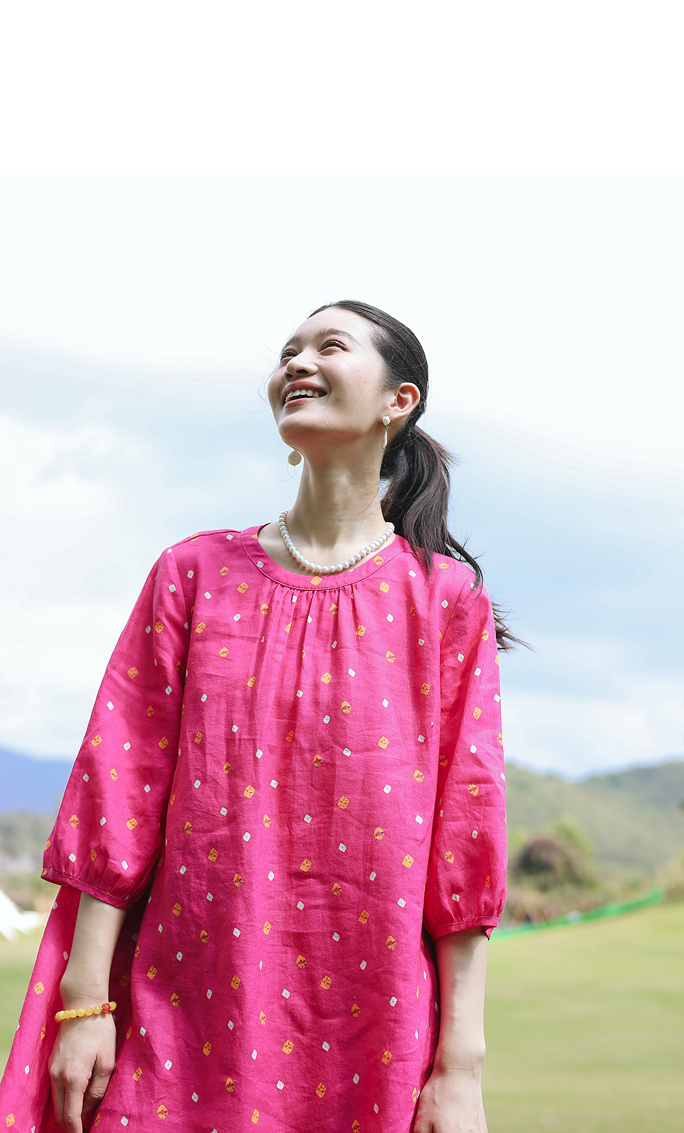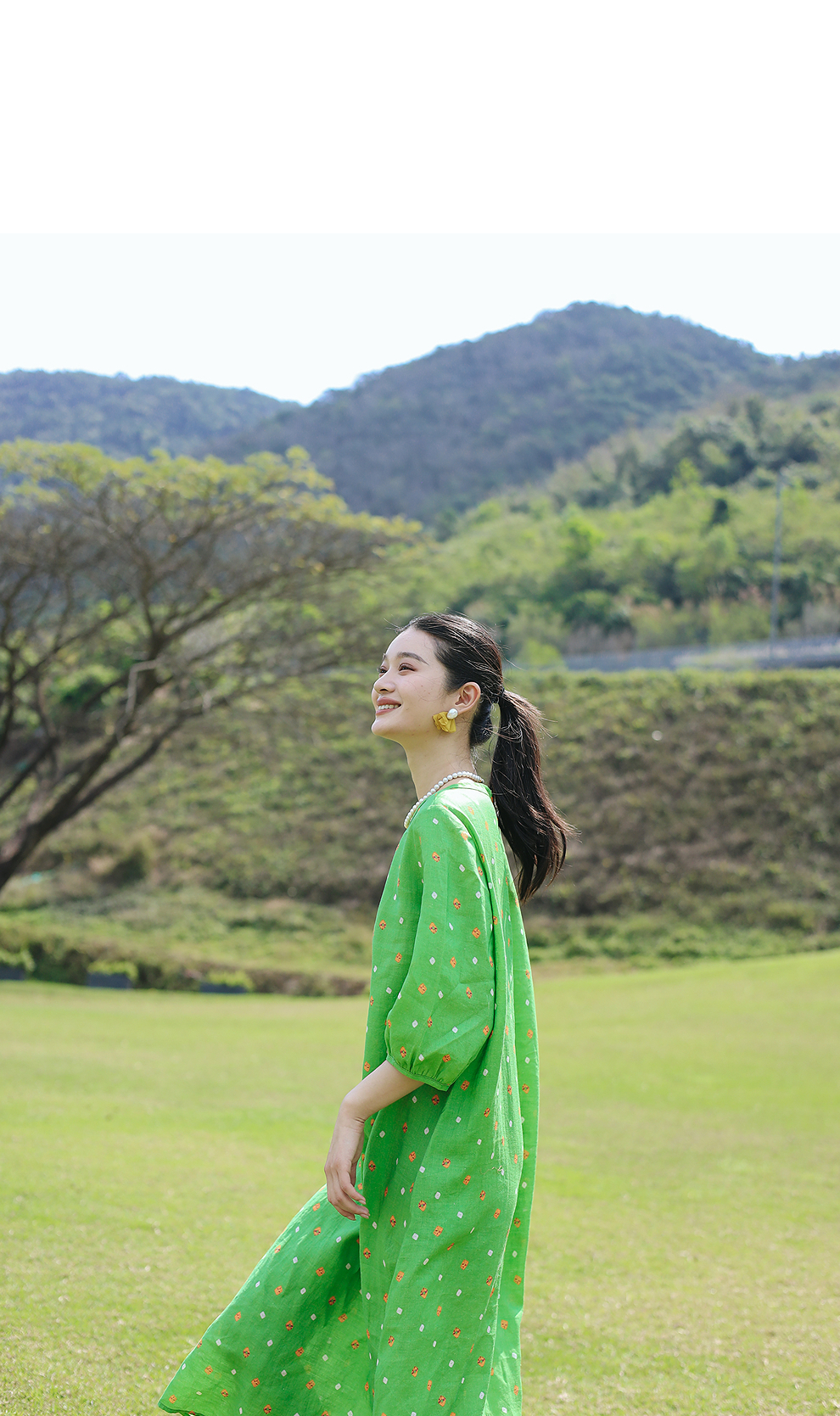 以天然亚麻为载体,融合热烈色彩与自在剪裁为身在城市、心怀远方的女性提供兼具美学与舒适的旅行着装