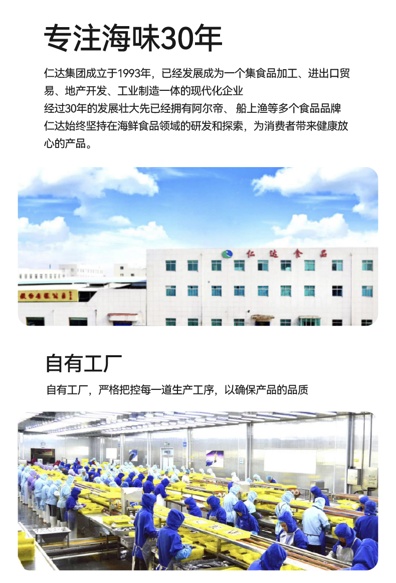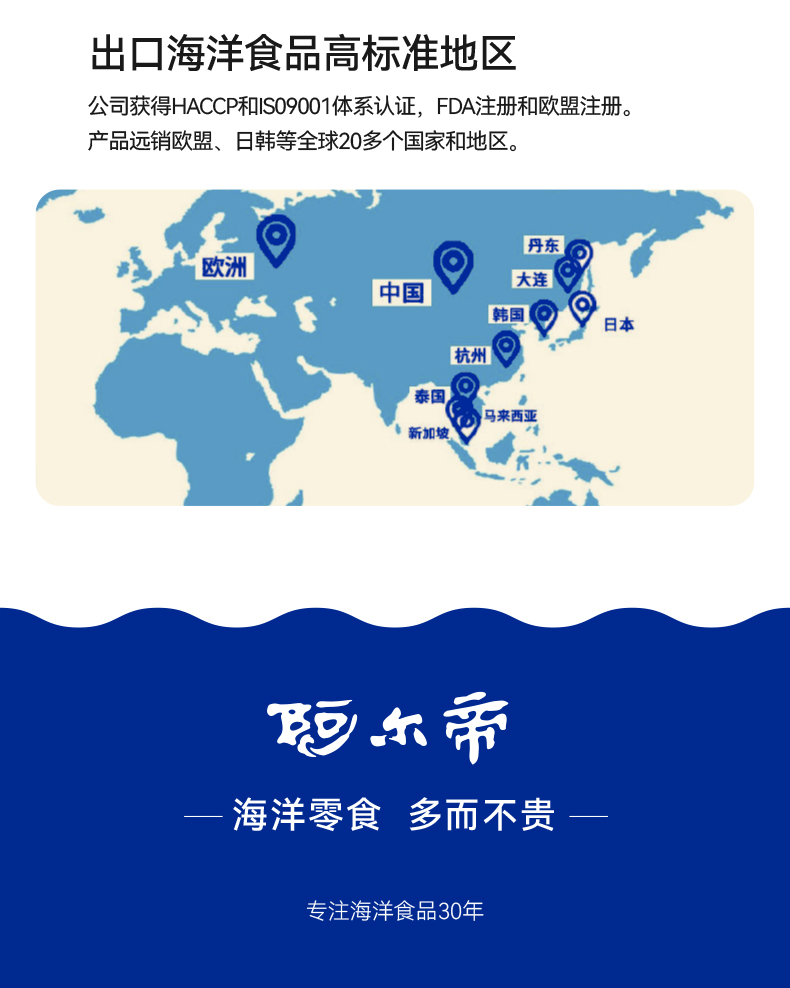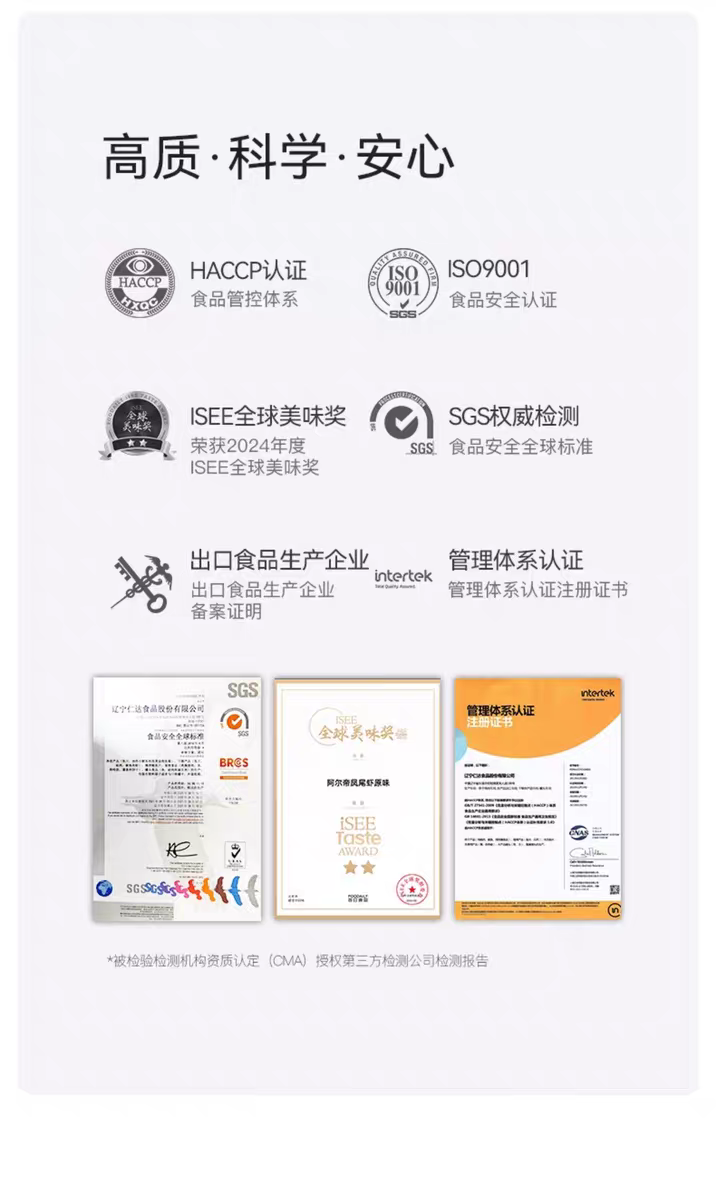 作为仁达旗下始于1993年的老品牌,阿尔帝几十年来深耕健康海味领域,自有工厂全程把控每一道生产工序,还通过了HACCP、ISO9001体系认证及FDA、欧盟等多项国际检测,产品常年出口日本、韩国、欧盟等高标准地区,国民零食的过硬品质让人超放心。