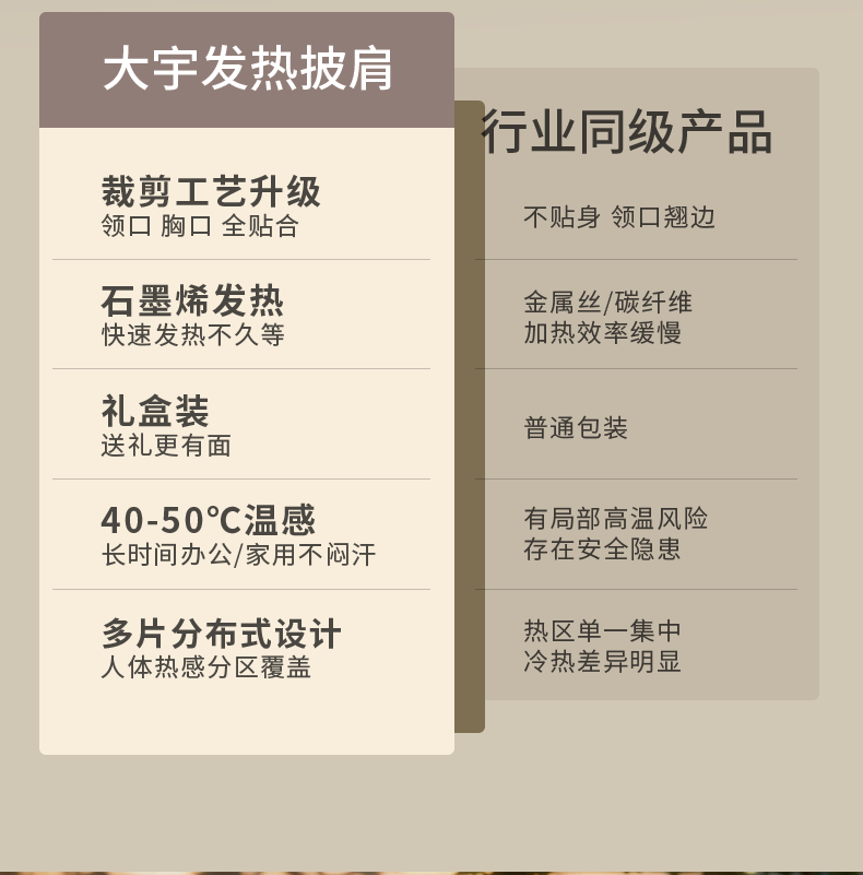一般的发热暖身披肩只有后背带发热片