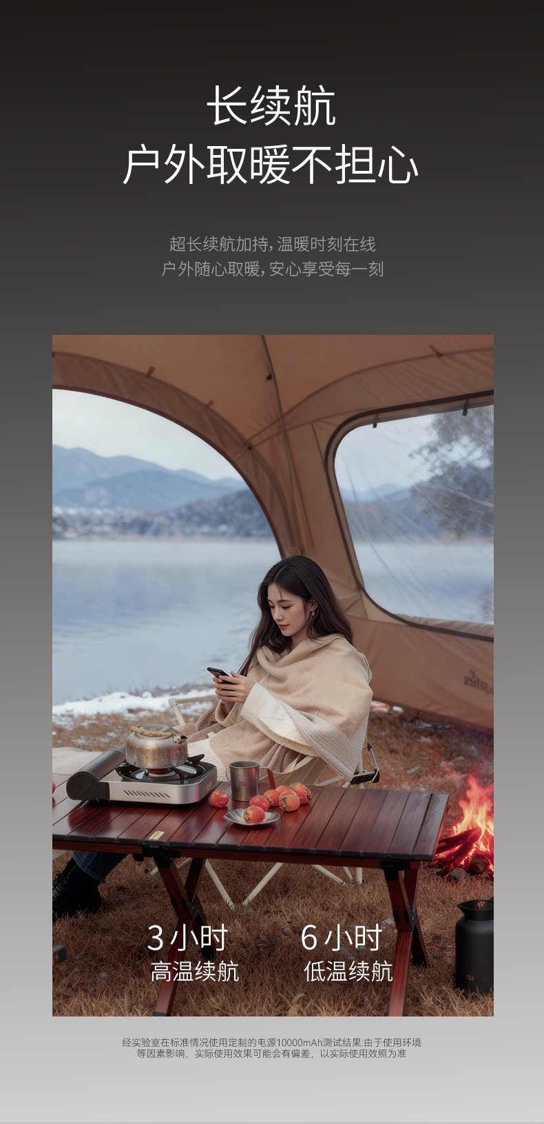 ✅3档温度可调➕6小时长续航,户外取暖不担心