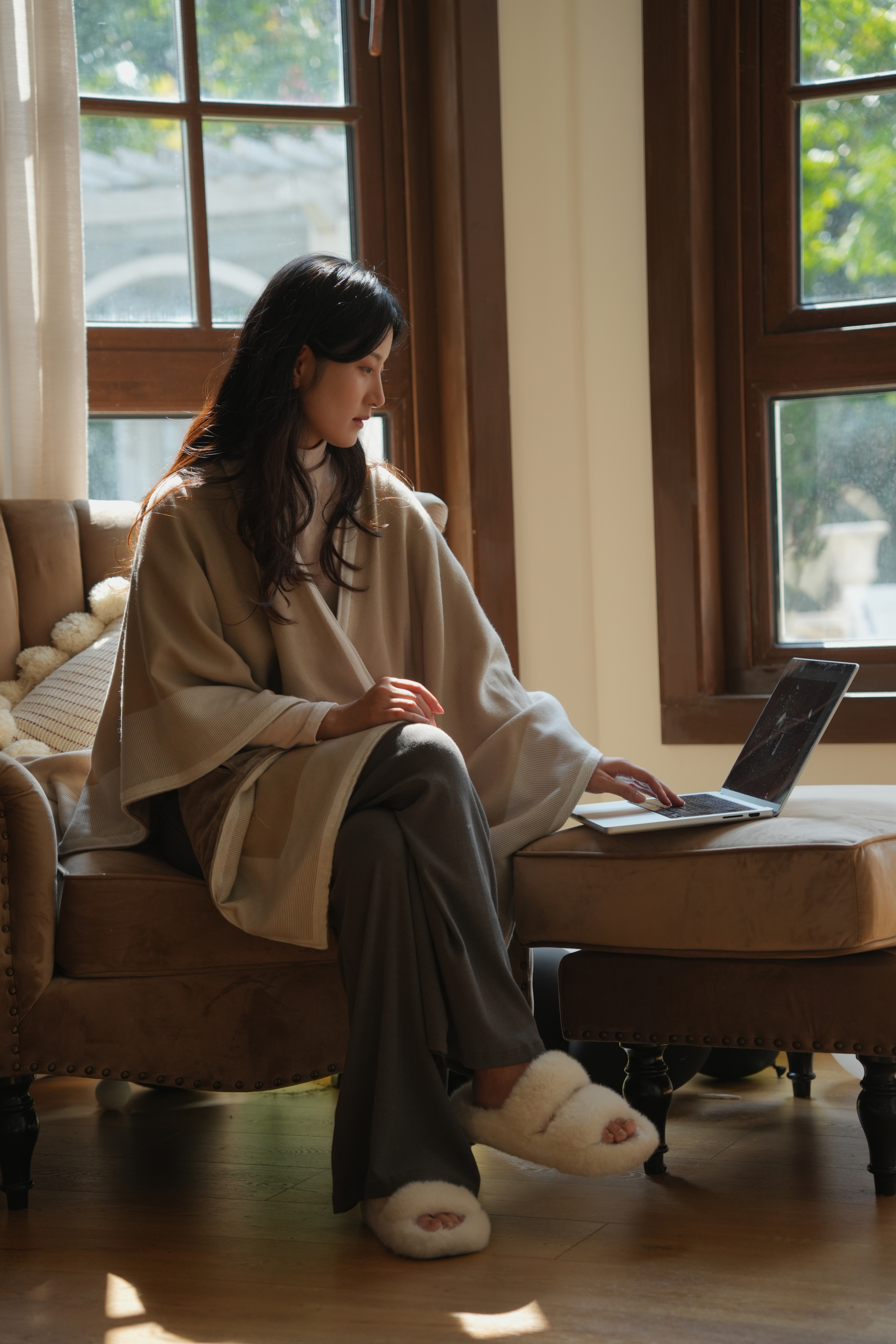氛围感仅靠一条披肩就能搞定✨