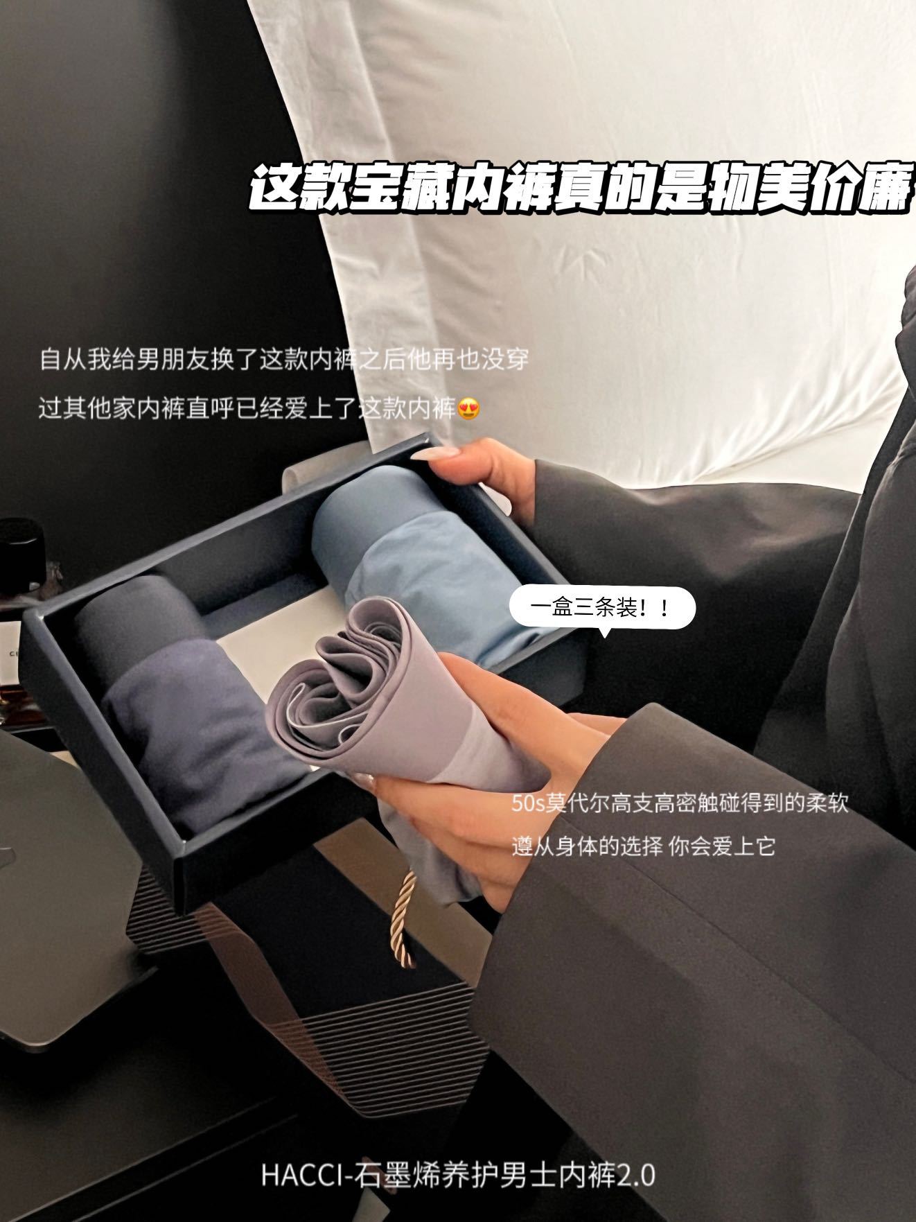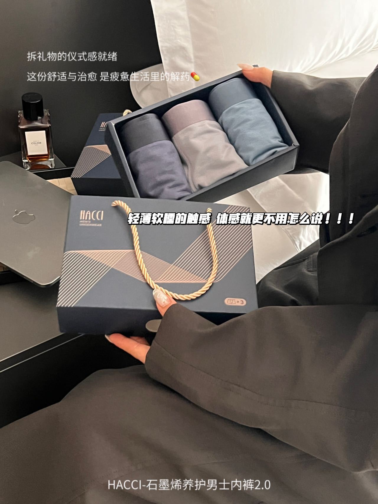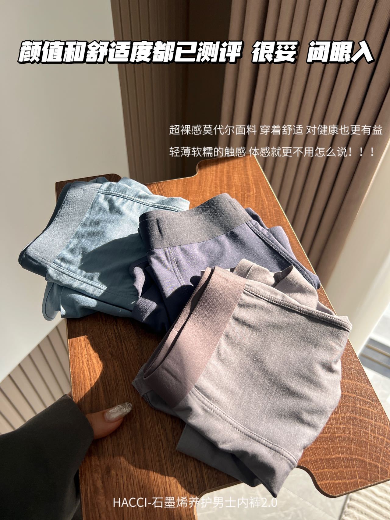 【冬季新品】3条装!50S莫代尔石墨烯抗菌男士内裤 高端礼盒高弹力宽松版平角裤舒适潮流大码四角裤男