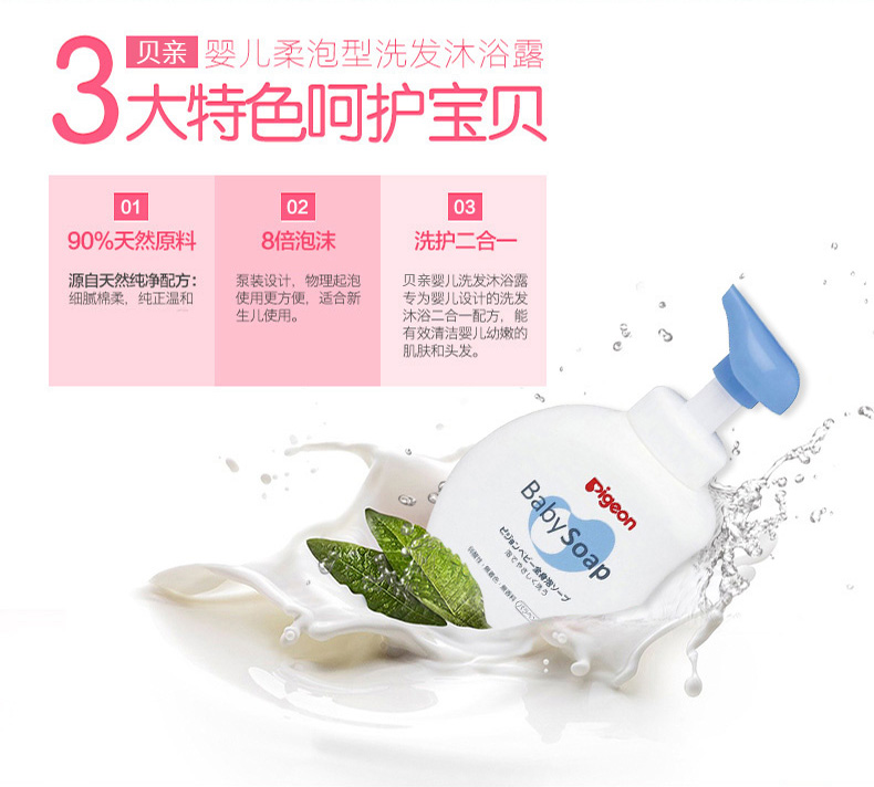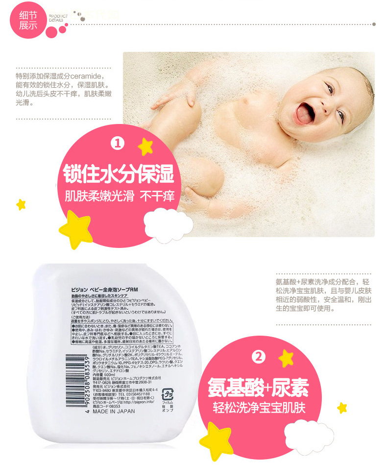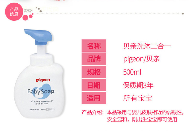 【保税仓】日本本土版 贝亲 婴儿泡沫洗发沐浴二合一500ML 蓝色清爽型