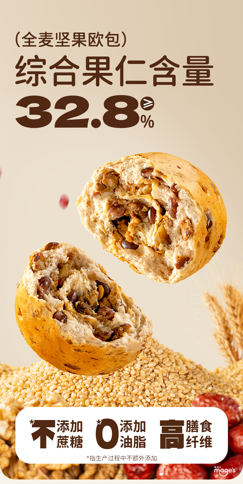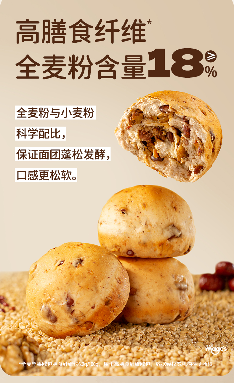 麦吉士全麦坚果欧包无蔗糖核桃饱腹早餐