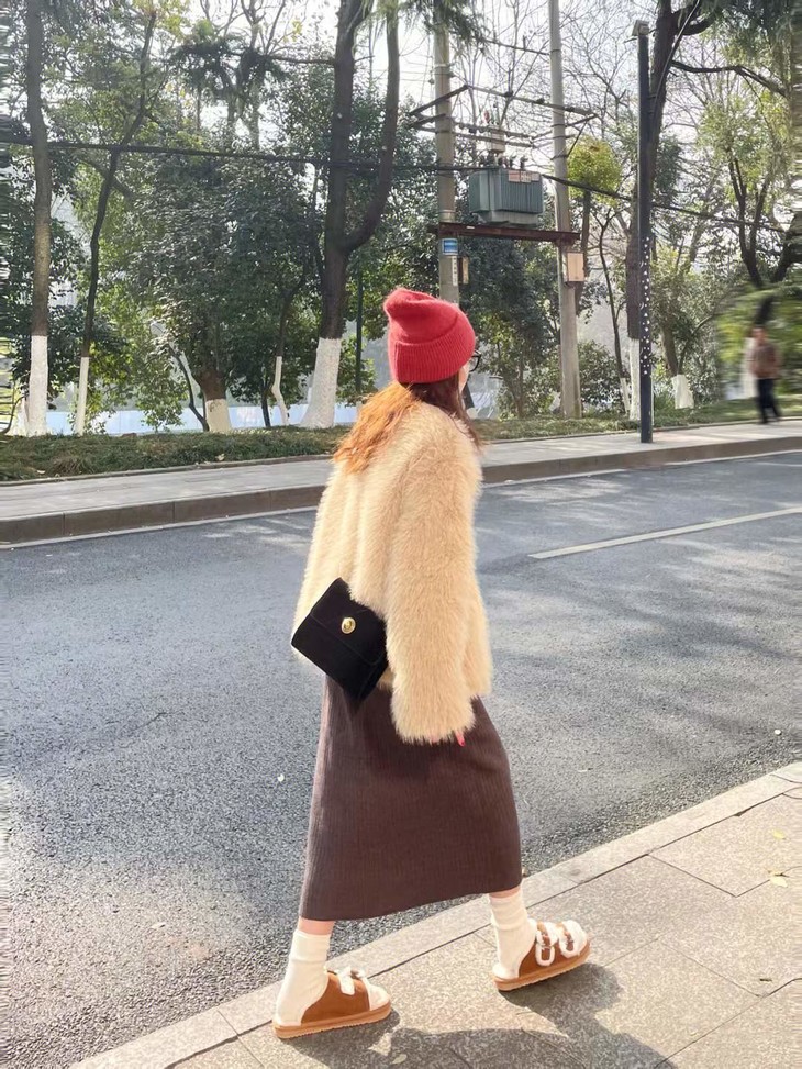 整个织纹超级细腻,软软糯糯的包裹双足️,真的做到了又时髦、又保暖、又不臃肿的效果