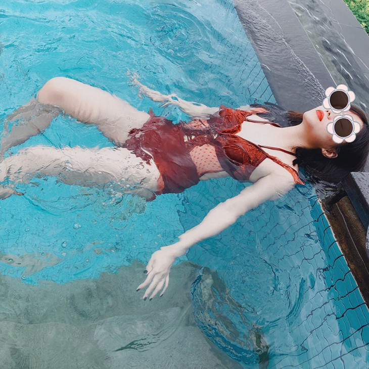 【泳衣】*泳衣女连体性感蕾丝波点小胸聚拢遮肚显瘦一字肩温泉度假网红