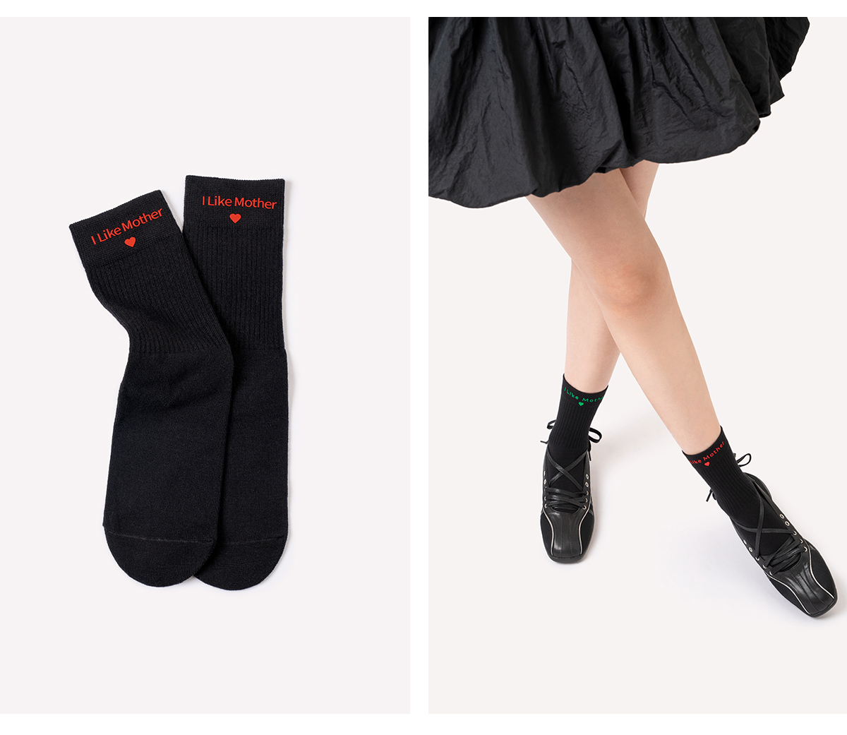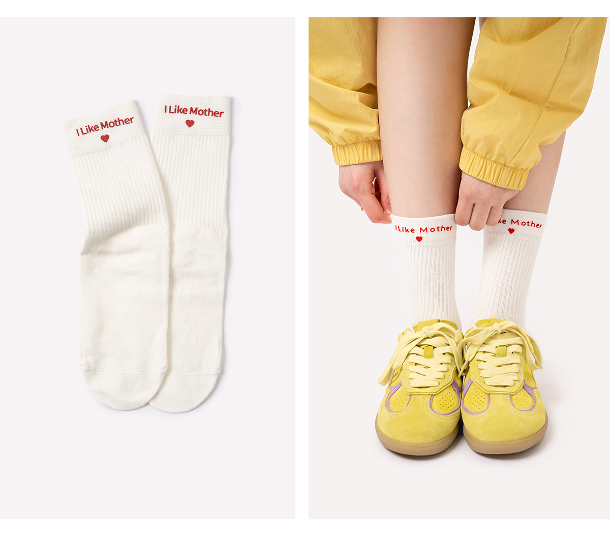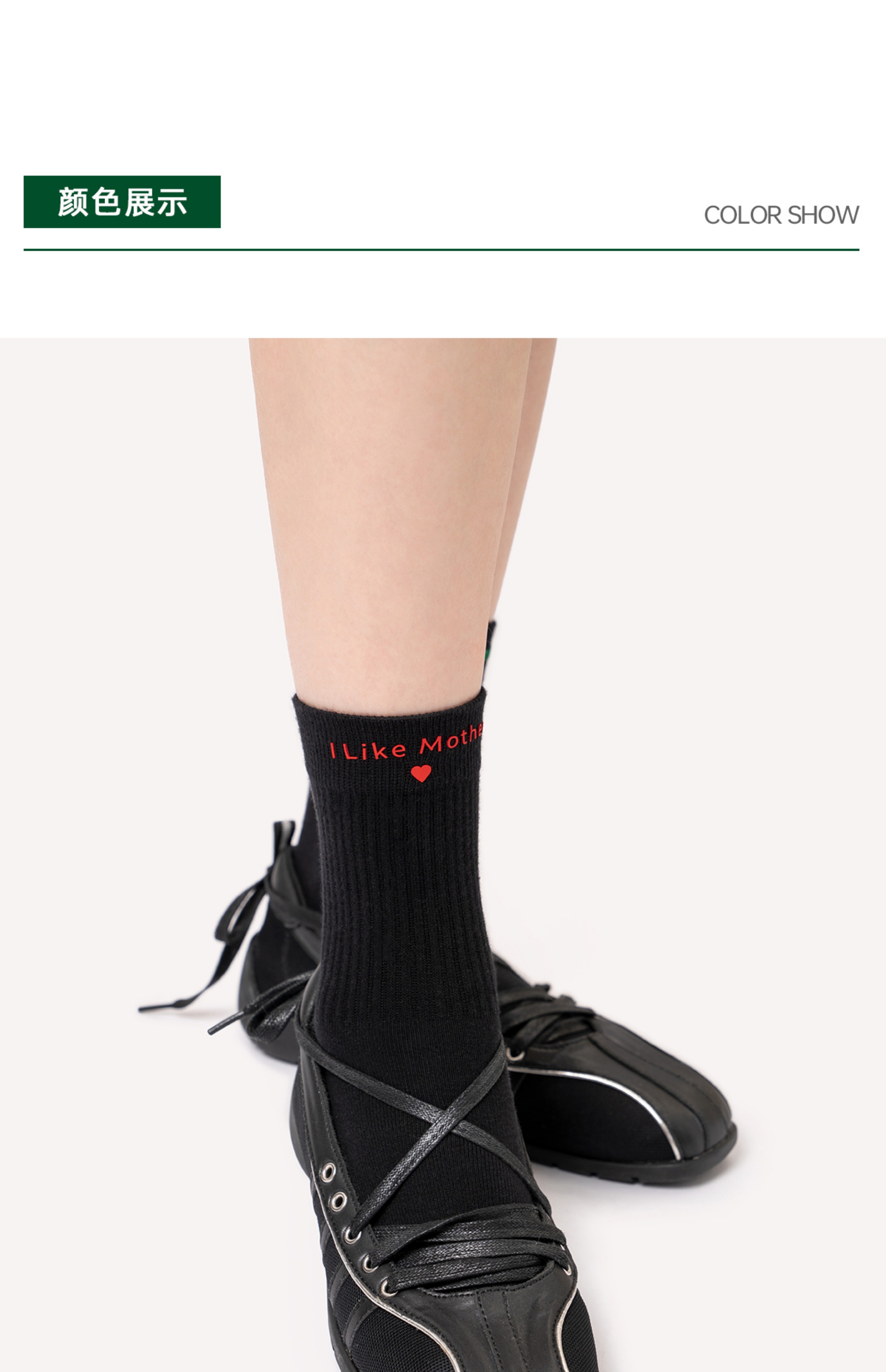 靴下物红色袜子女中筒堆堆袜女春秋薄款透气jk日系白色小腿袜刺绣