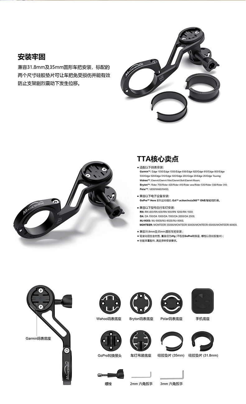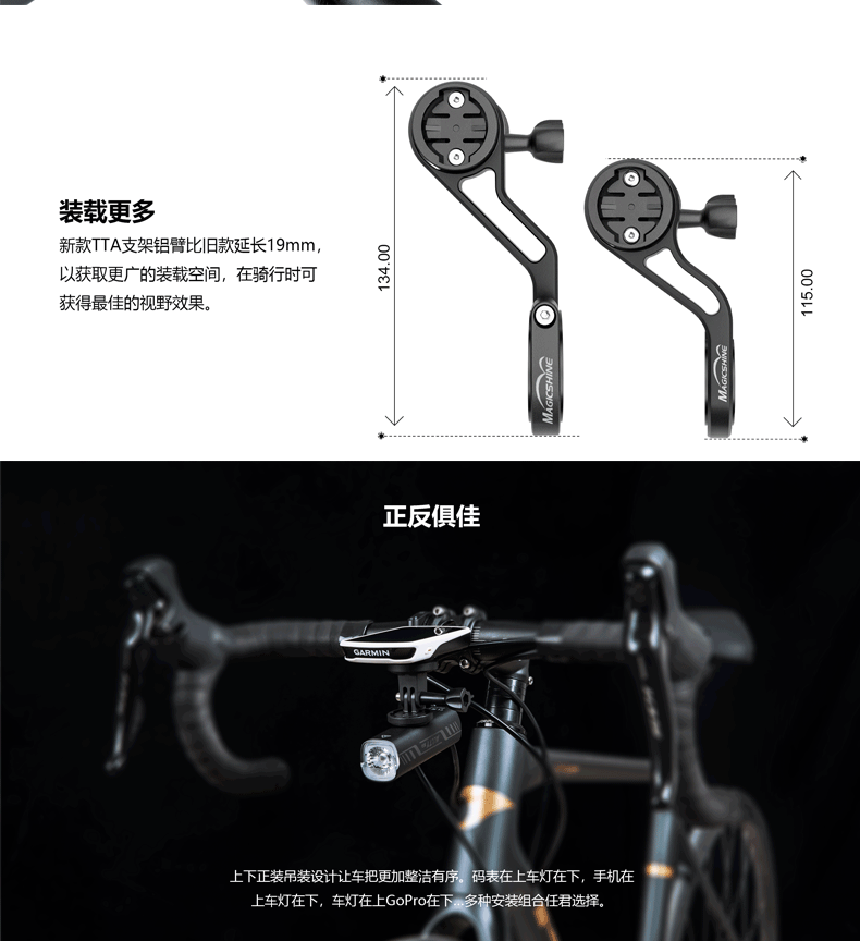 迈极炫TTA(二代)自行车灯码表支架手机延伸支架可挂Gpro相机