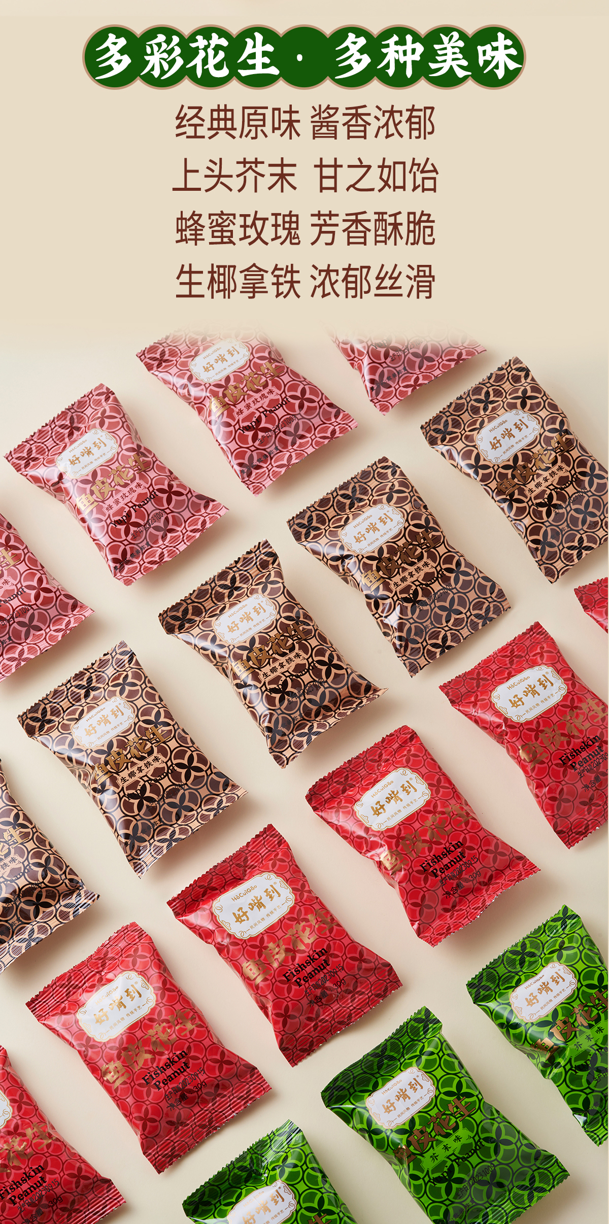【好嘴到】鱼皮花生届的天花板!嘎嘣脆好吃!传统原味,儿时回忆!新增芥末、蜂蜜玫瑰、生椰拿铁。什锦装包括以上四个口味