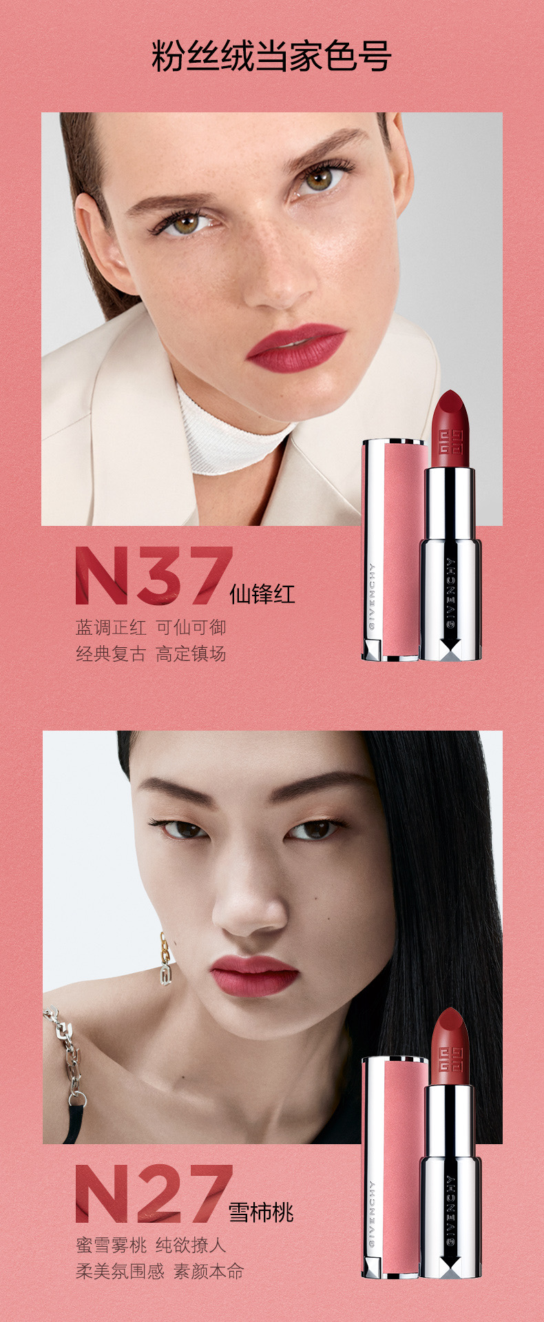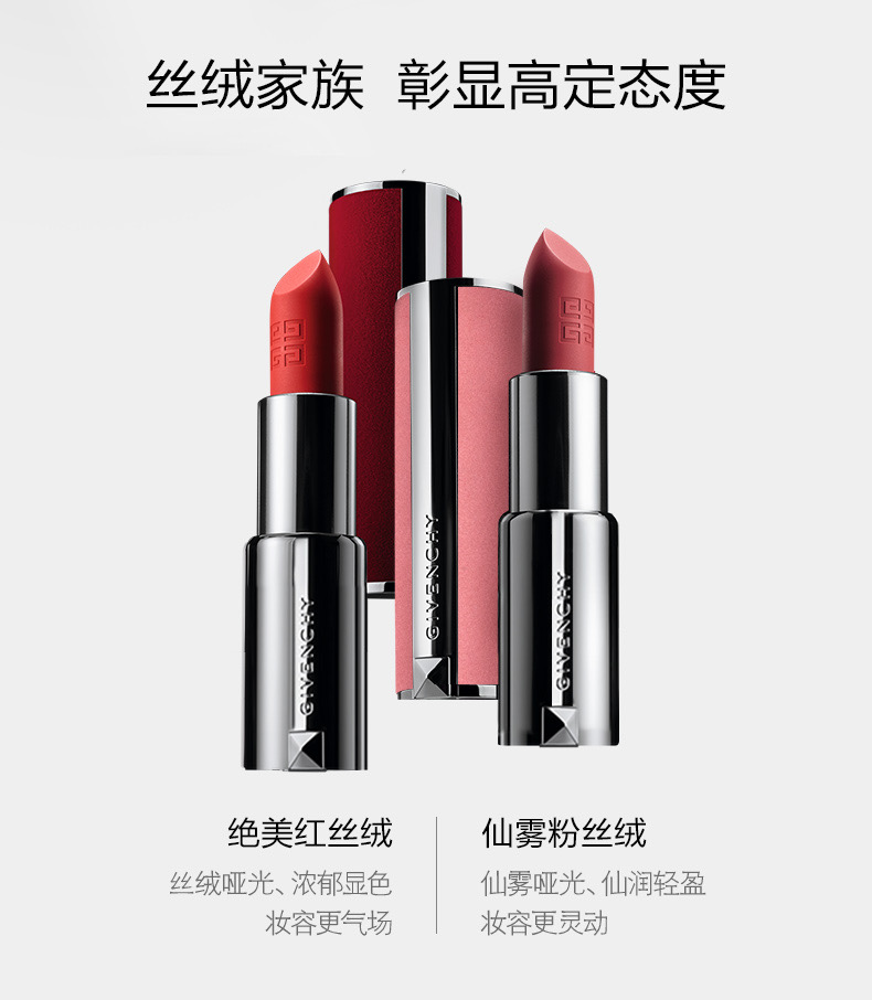 春日限定【可溯源】[ 买一送一 ]GIVENCHY纪梵希高定香榭粉丝绒唇膏(粉丝绒)3.4g正装/梵希小羊皮3.4g口红唇膏_bba