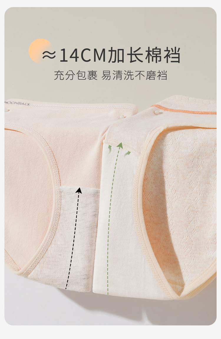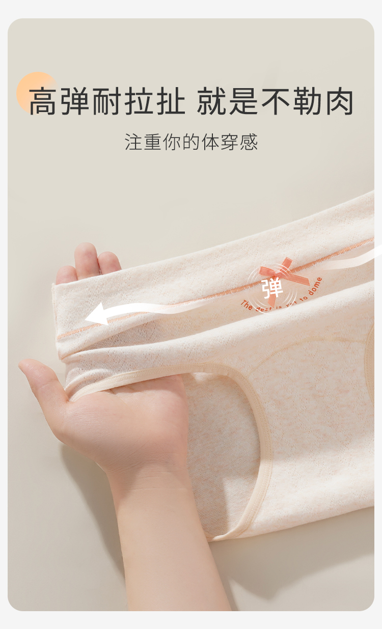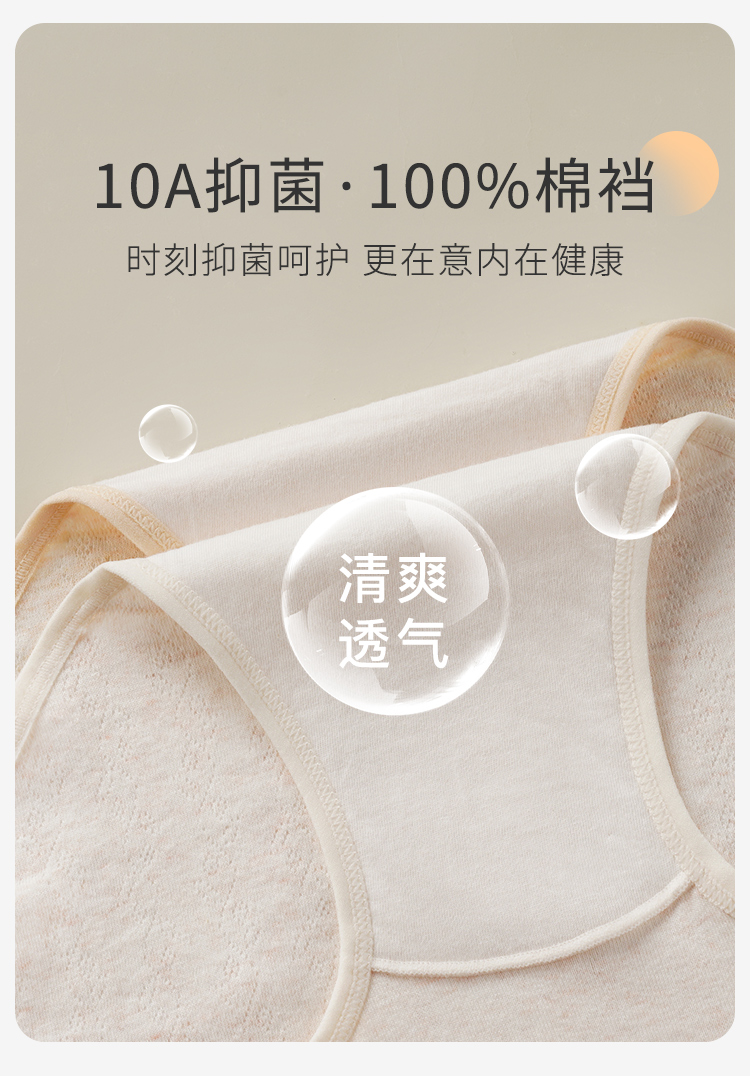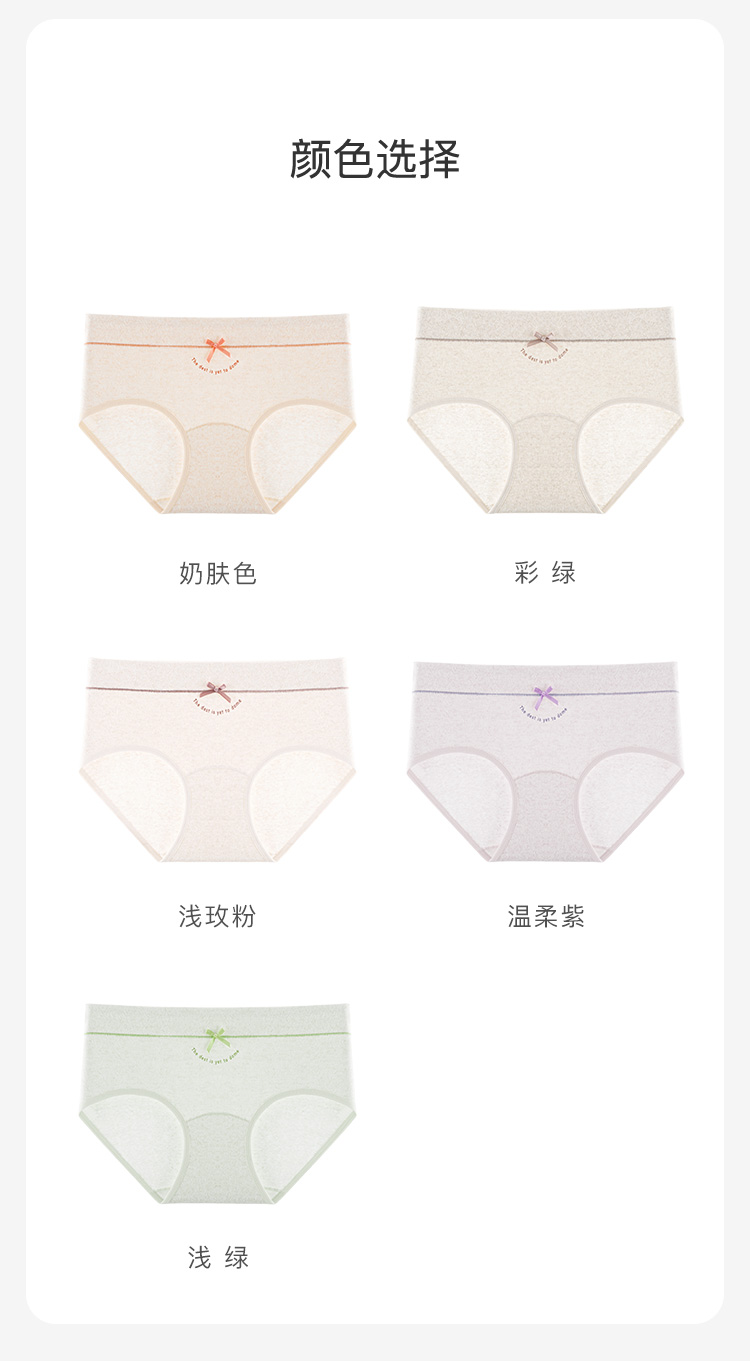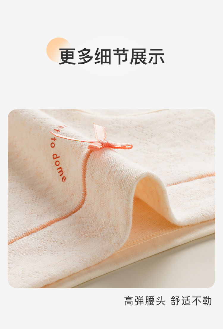 【4条装】10A抑菌纯棉加长裆内裤女舒适0染原棉高弹不夹臀CM-15线条蝴蝶结内裤