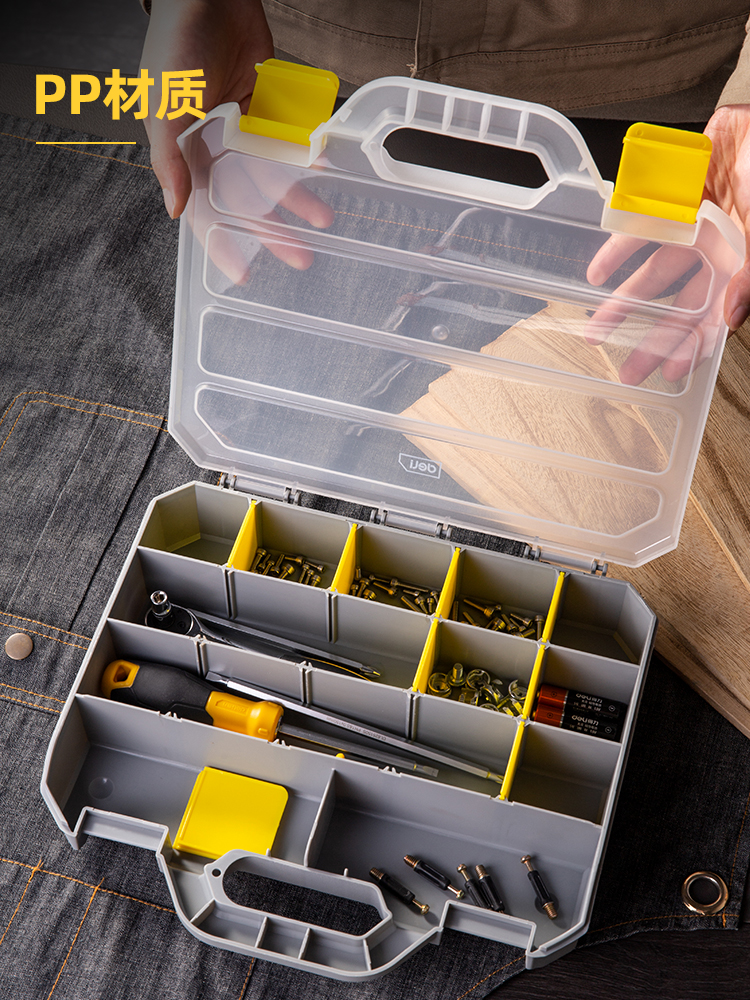 得力零件盒手提式(白)