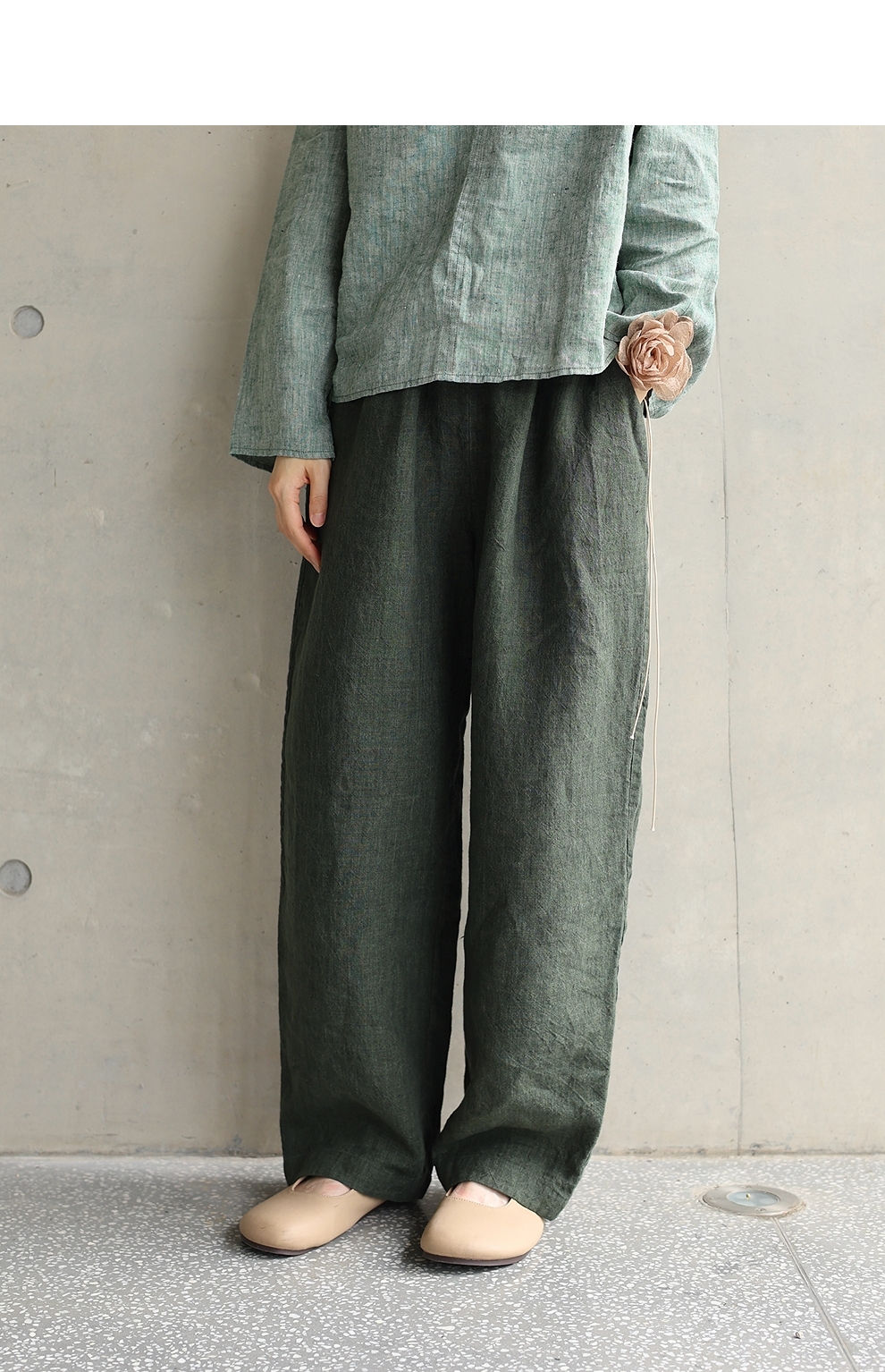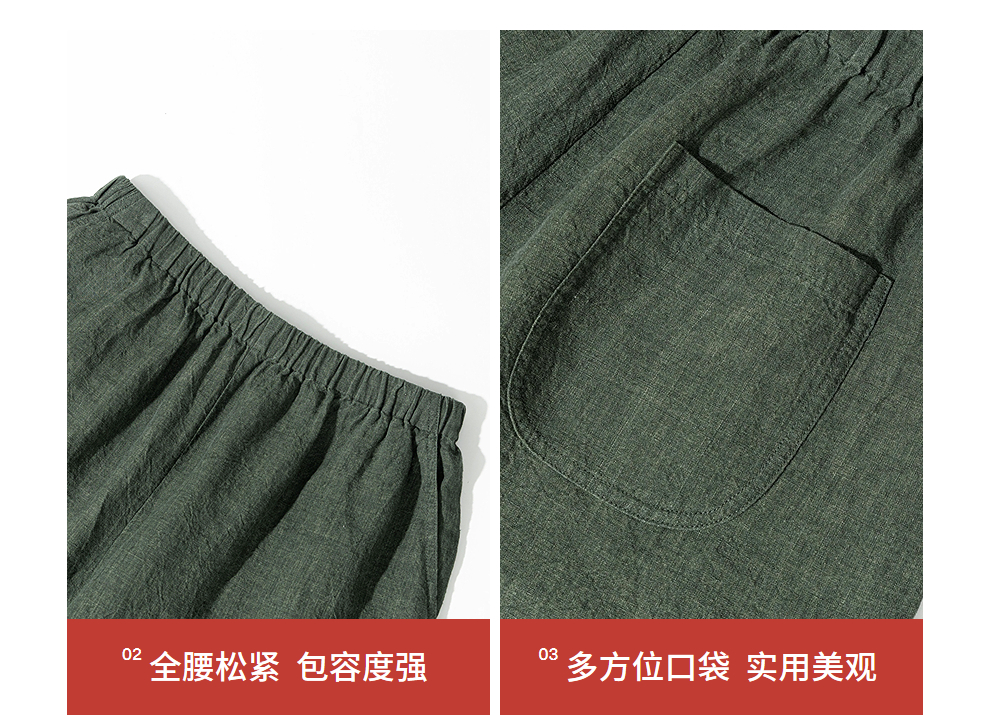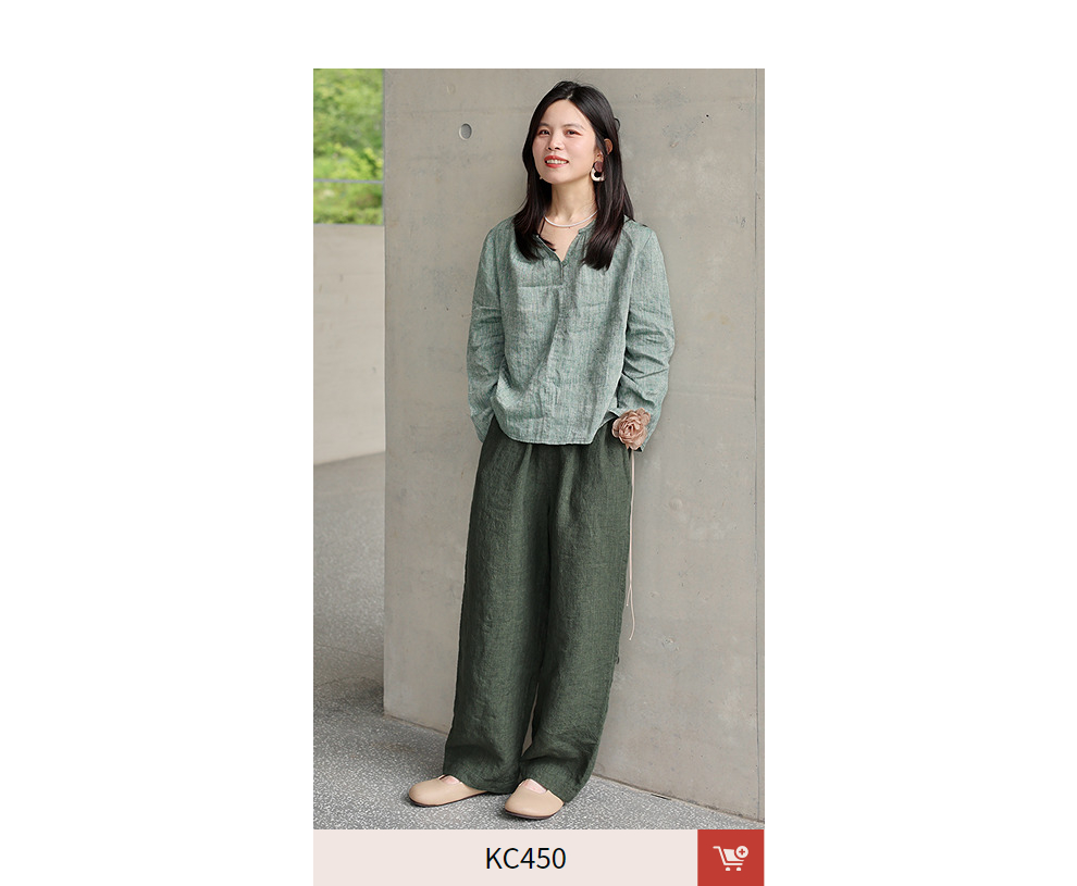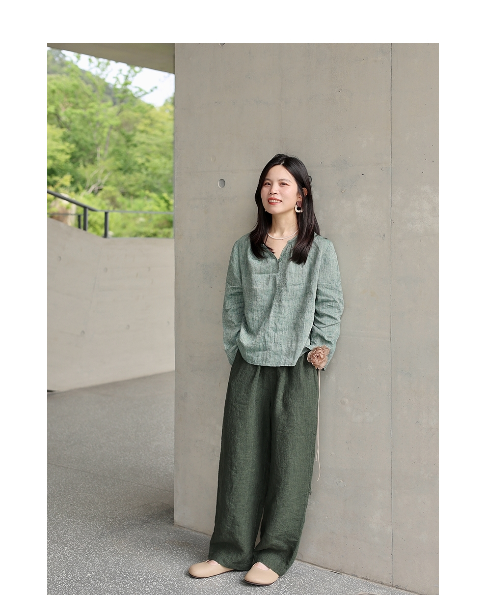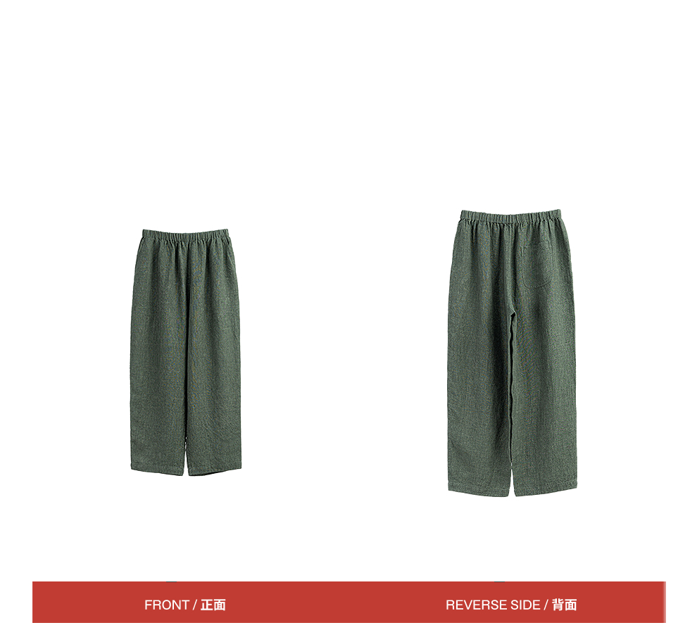 绽放旅行女装450朵/舒适百搭色织亚麻显瘦直筒裤休闲裤女透气吸湿