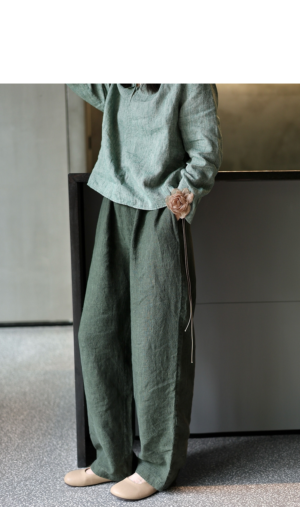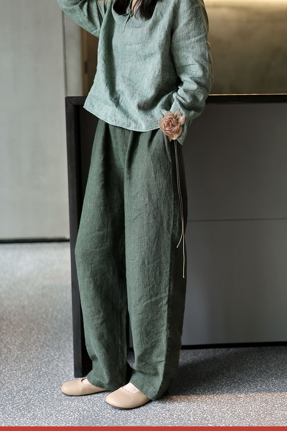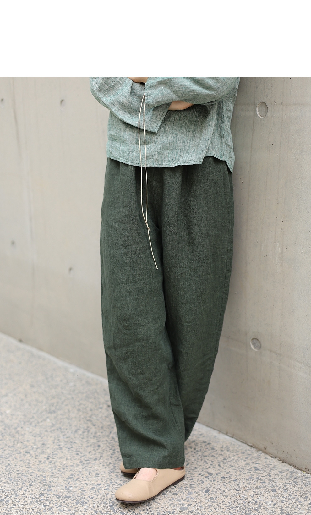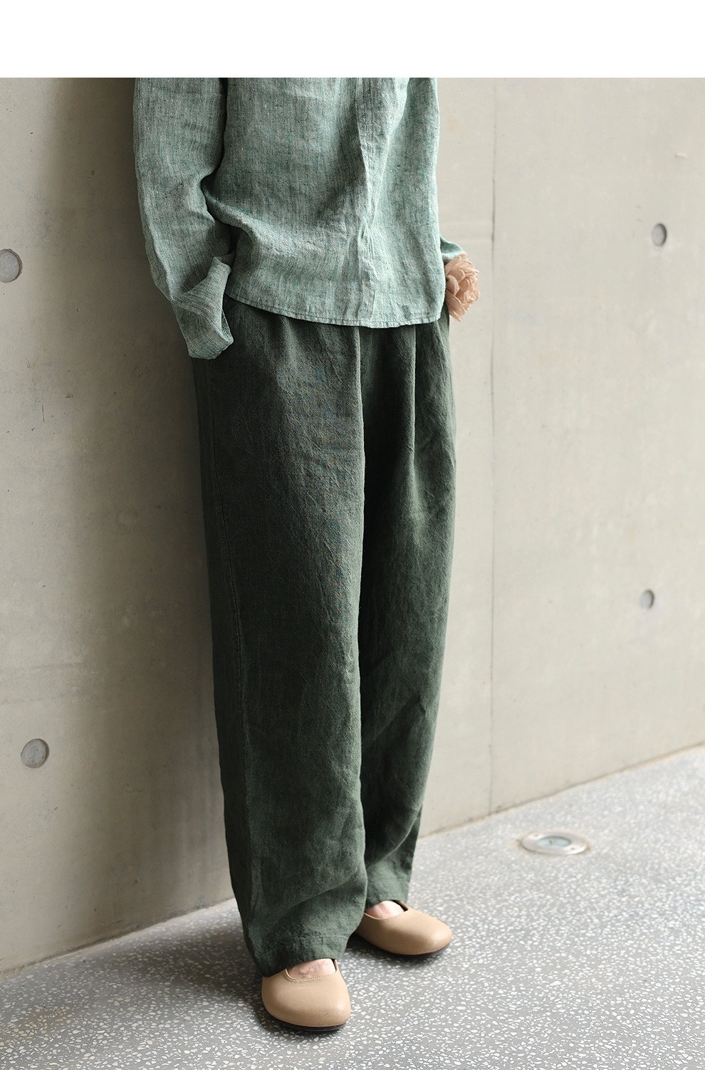 绽放旅行女装450朵/舒适百搭色织亚麻显瘦直筒裤休闲裤女透气吸湿