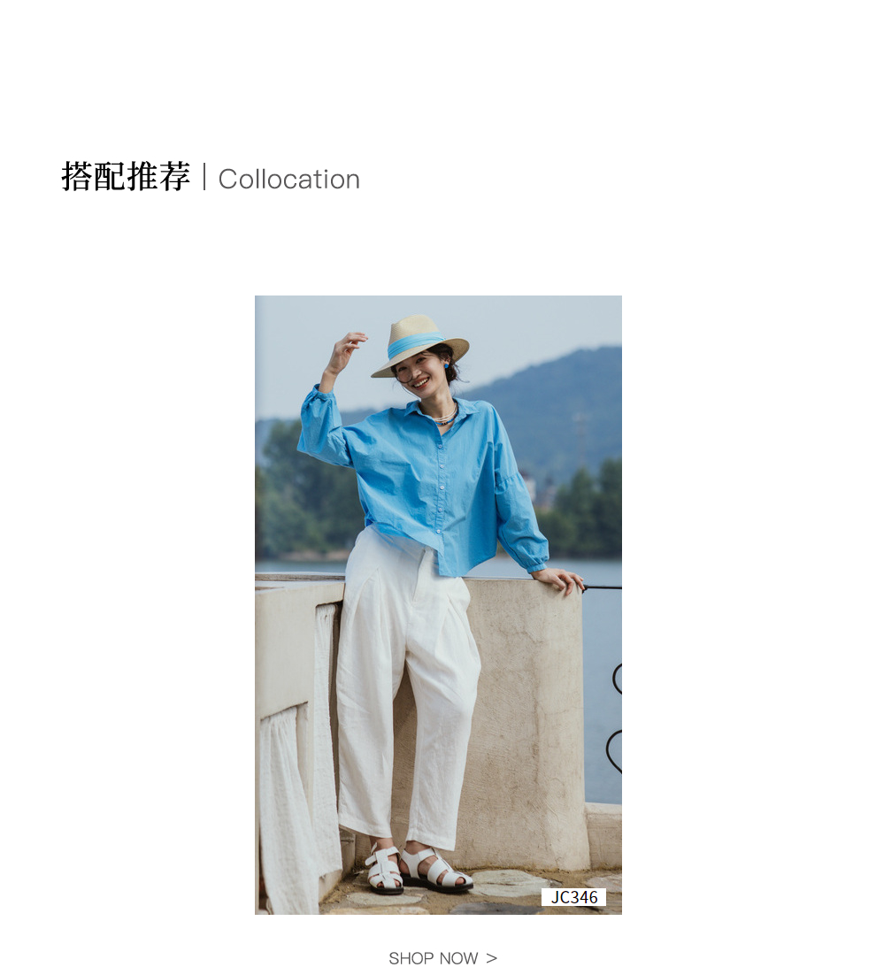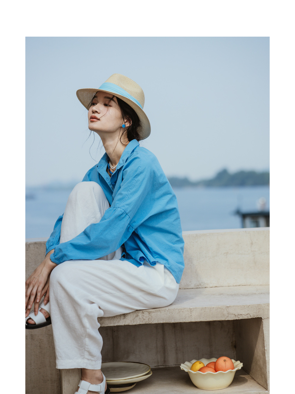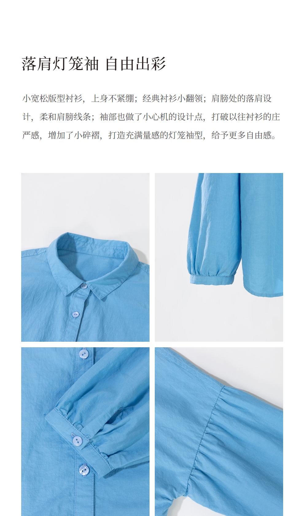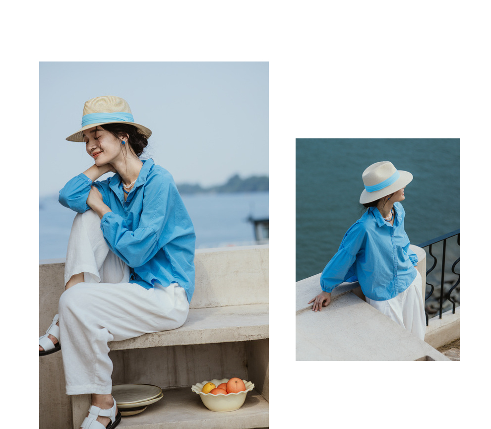 * 绽放装397朵【入蓝系列】海蓝色高端汉麻棉海边度假灯笼长袖衬衫