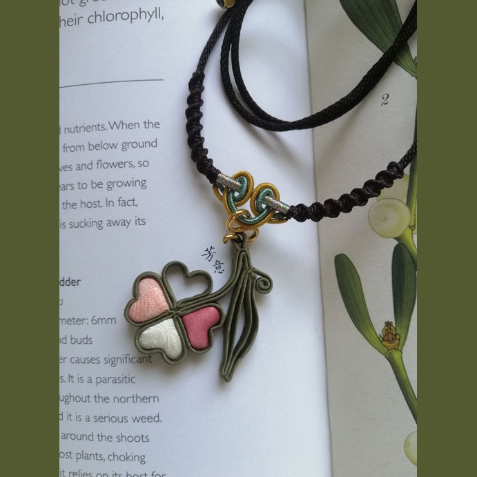 材质:真丝,珐琅铜丝,新疆长绒棉,可调节中国结手工绳圈