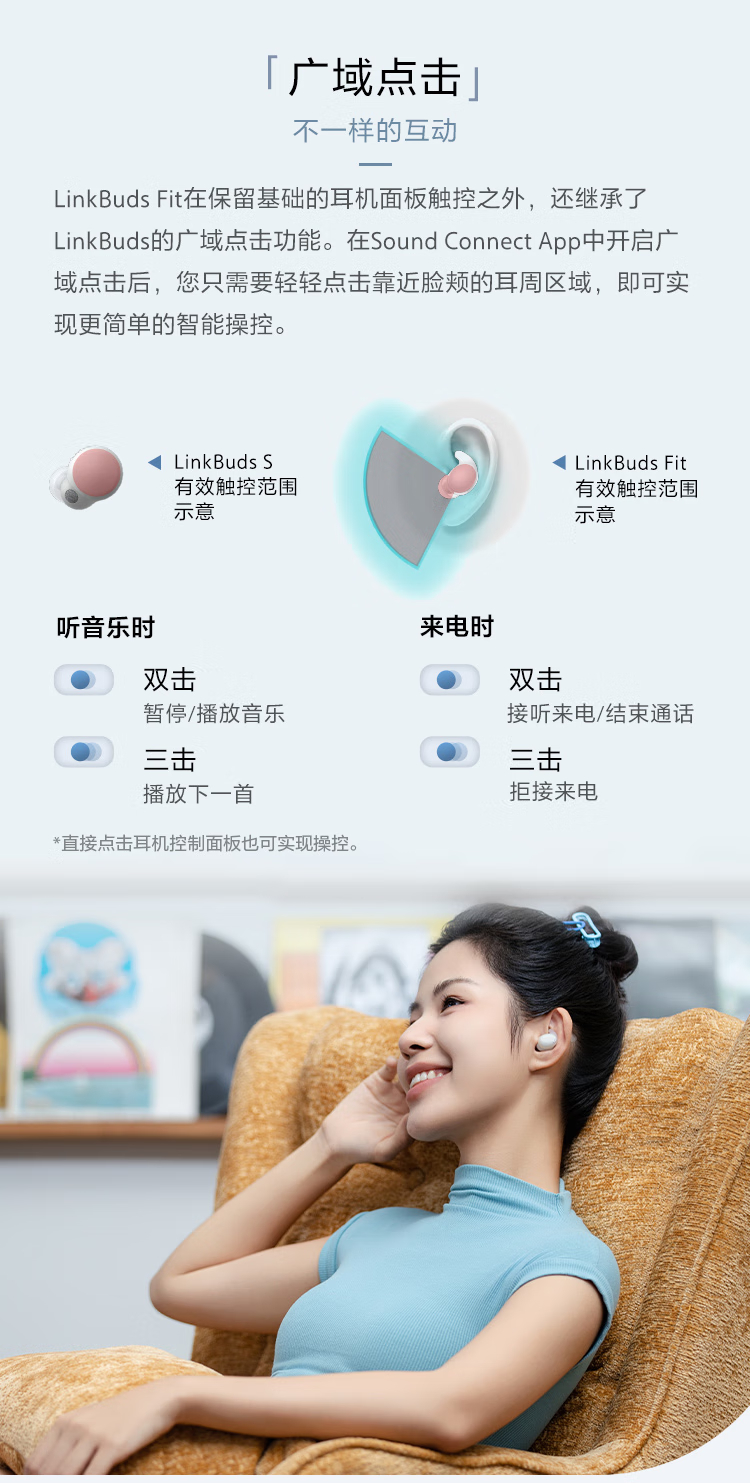 索尼(SONY)LinkBuds Fit Hi-Res舒适降噪真无线耳机 索尼WF-LS910N