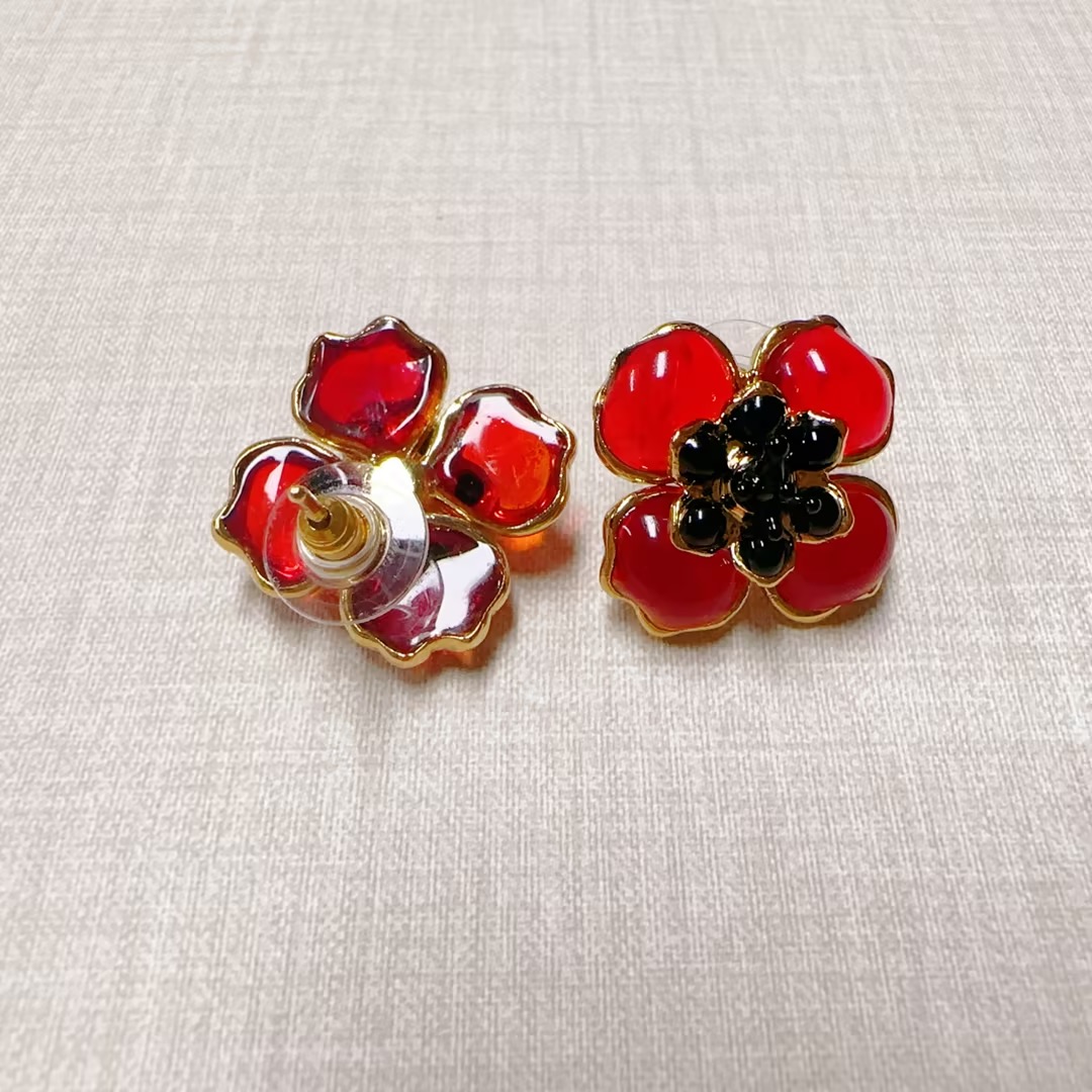 北京仓|Gripoix Paris-Poppy Flower-小号 虞美人 耳环[法国设计师]