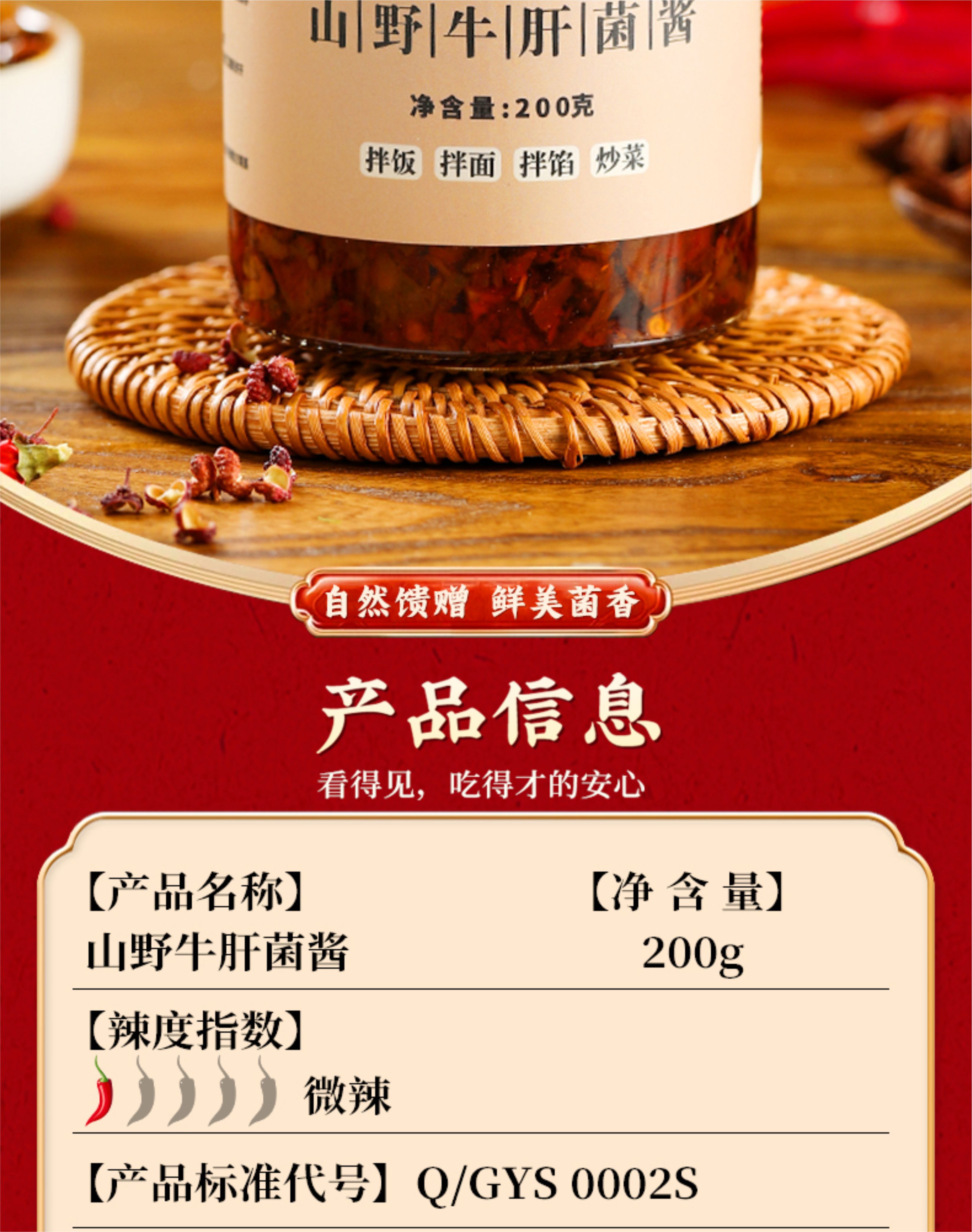 山野牛肝菌酱 净素配方 素食拌饭 拌面炒菜 菌香浓郁 下饭