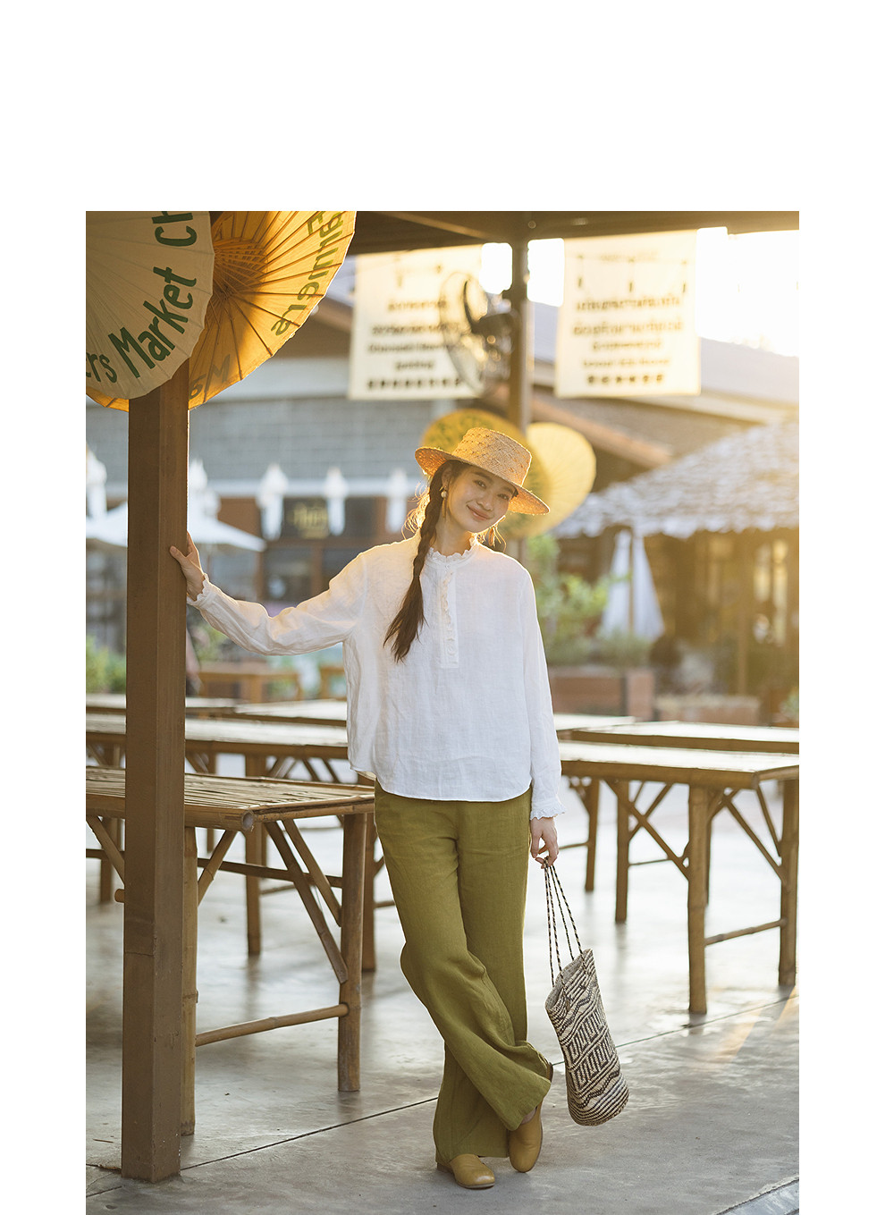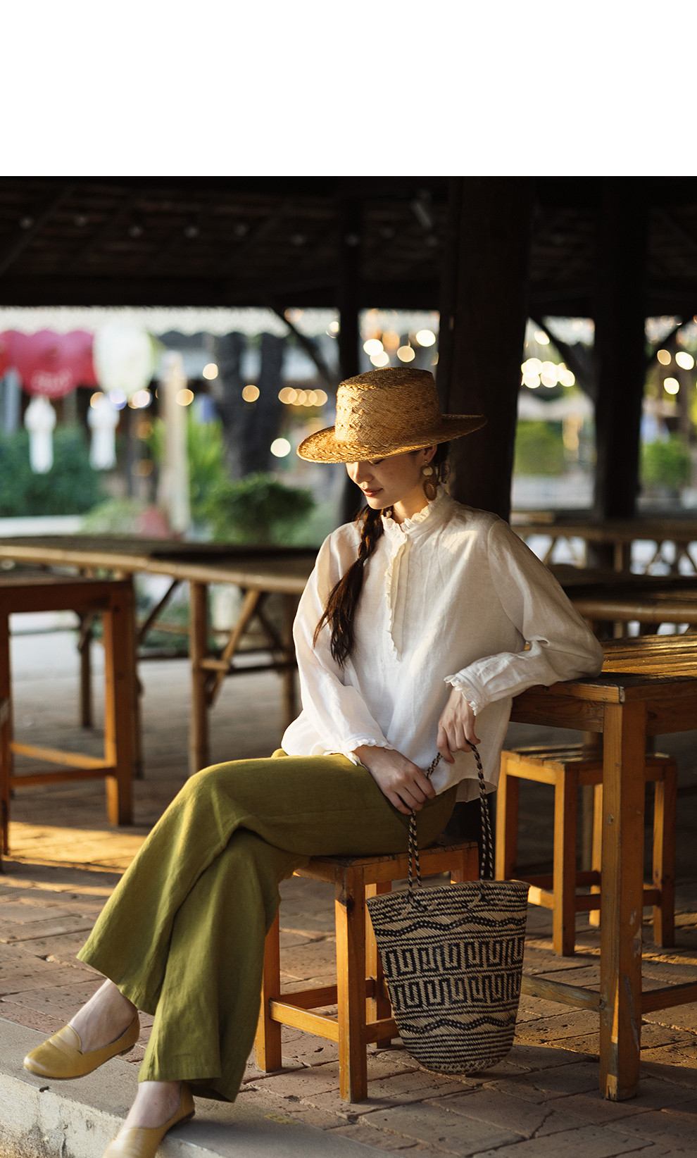 以天然亚麻为载体,融合热烈色彩与自在剪裁为身在城市、心怀远方的女性提供兼具美学与舒适的旅行着装