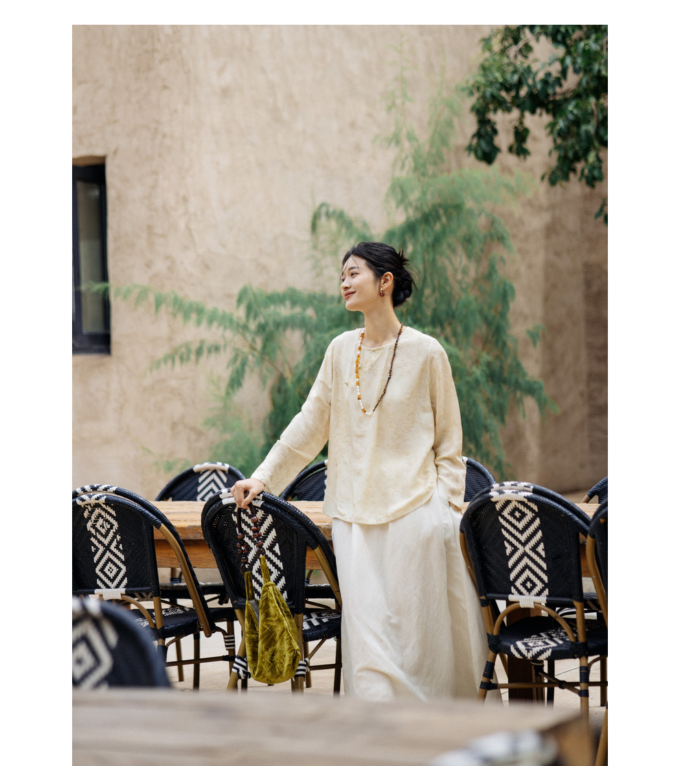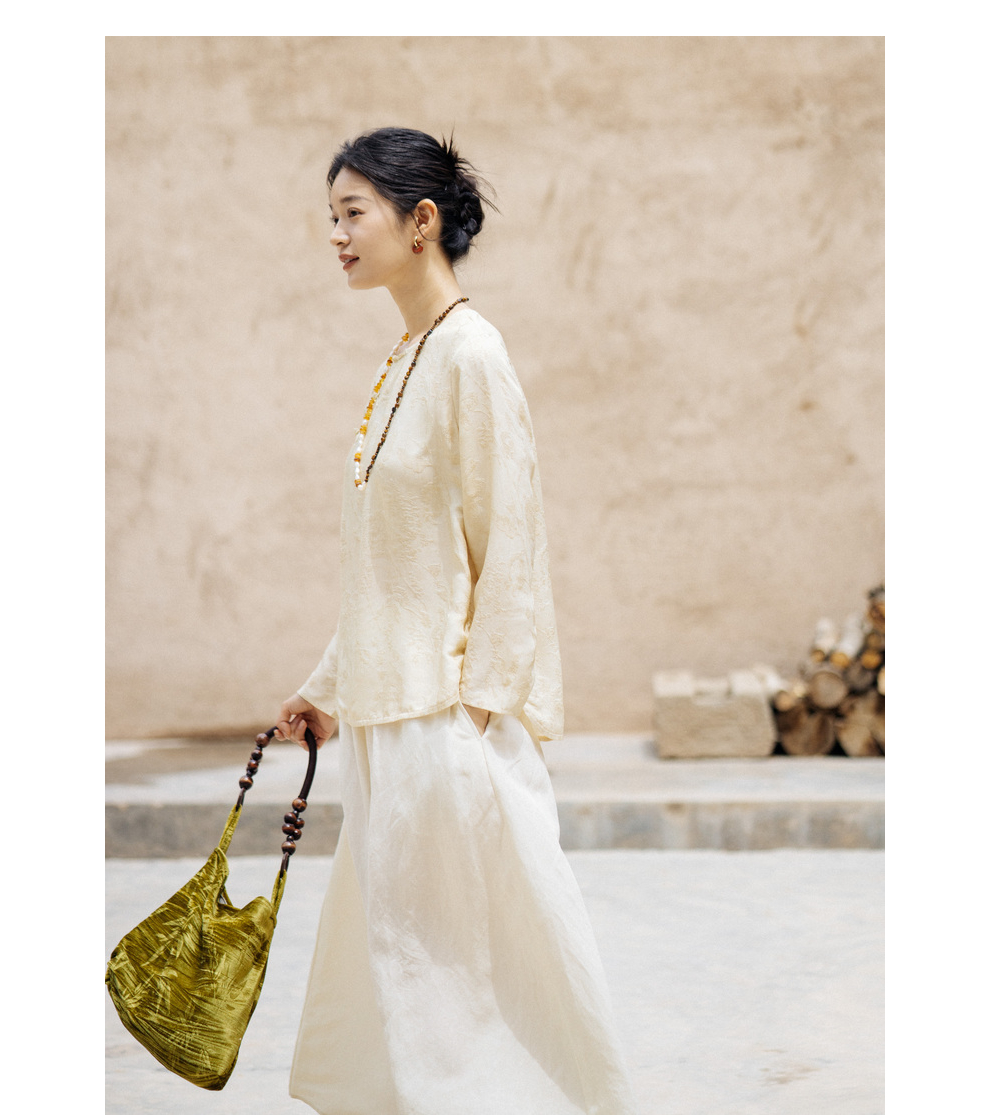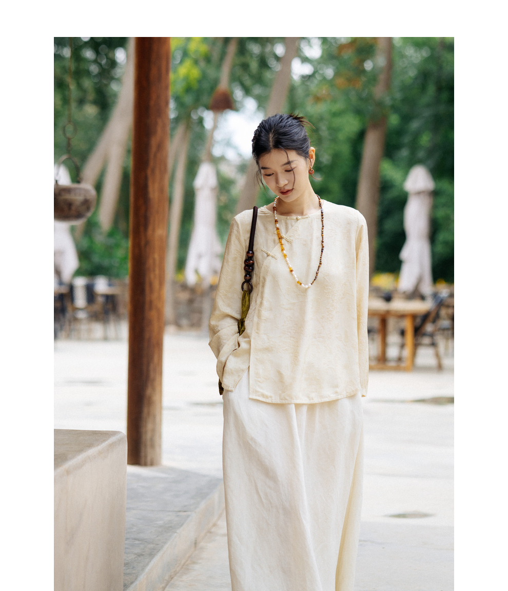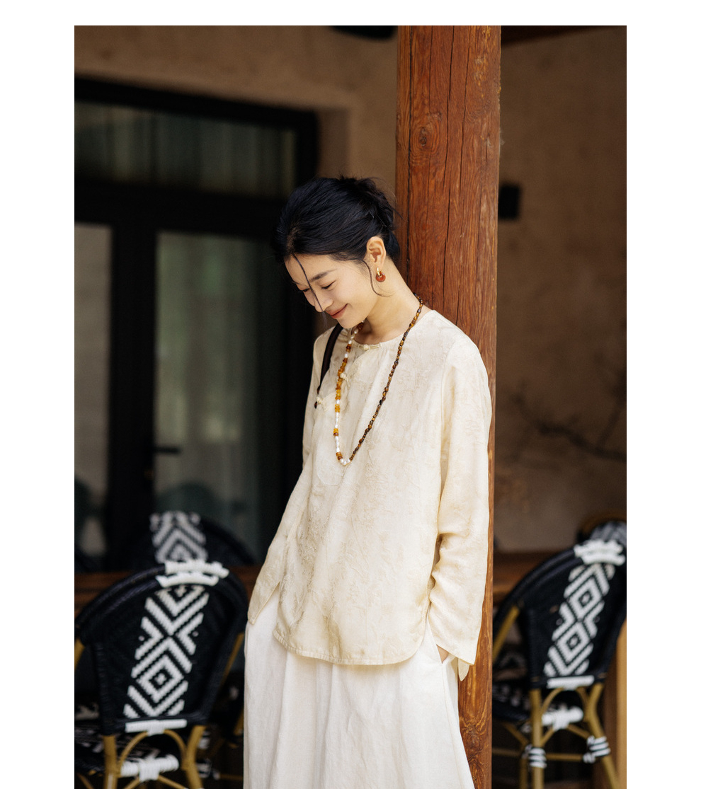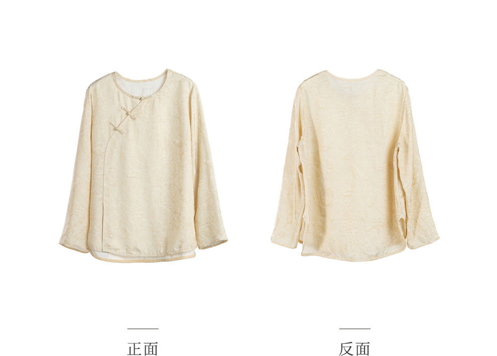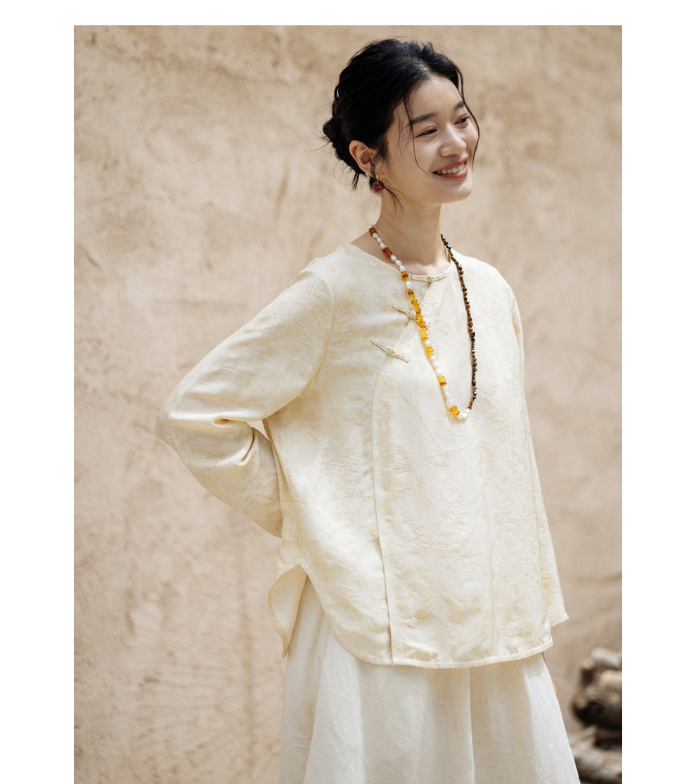 绽放旅行女装430高端新中式提花柞蚕丝衬衫圆领盘扣小衫国风上衣