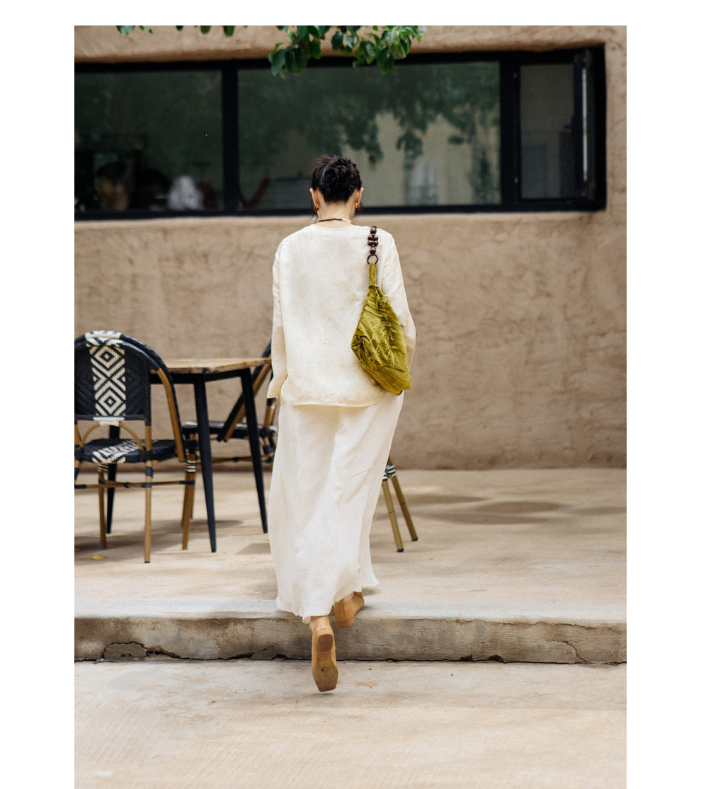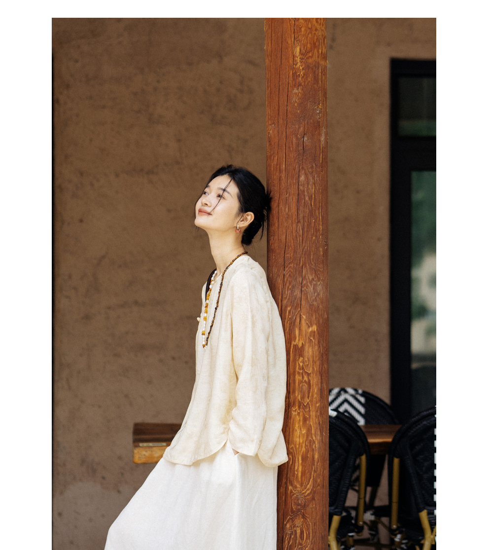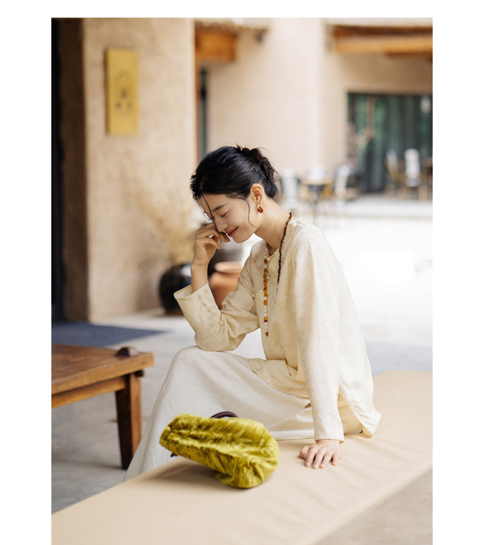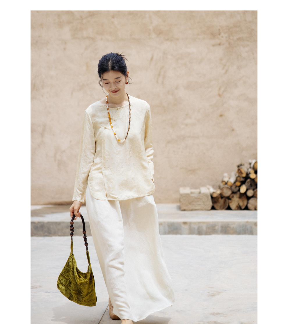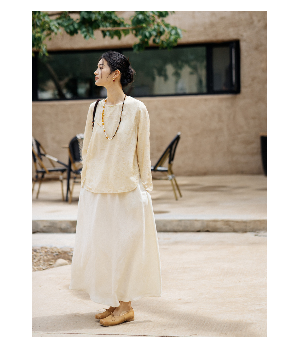 绽放旅行女装430高端新中式提花柞蚕丝衬衫圆领盘扣小衫国风上衣