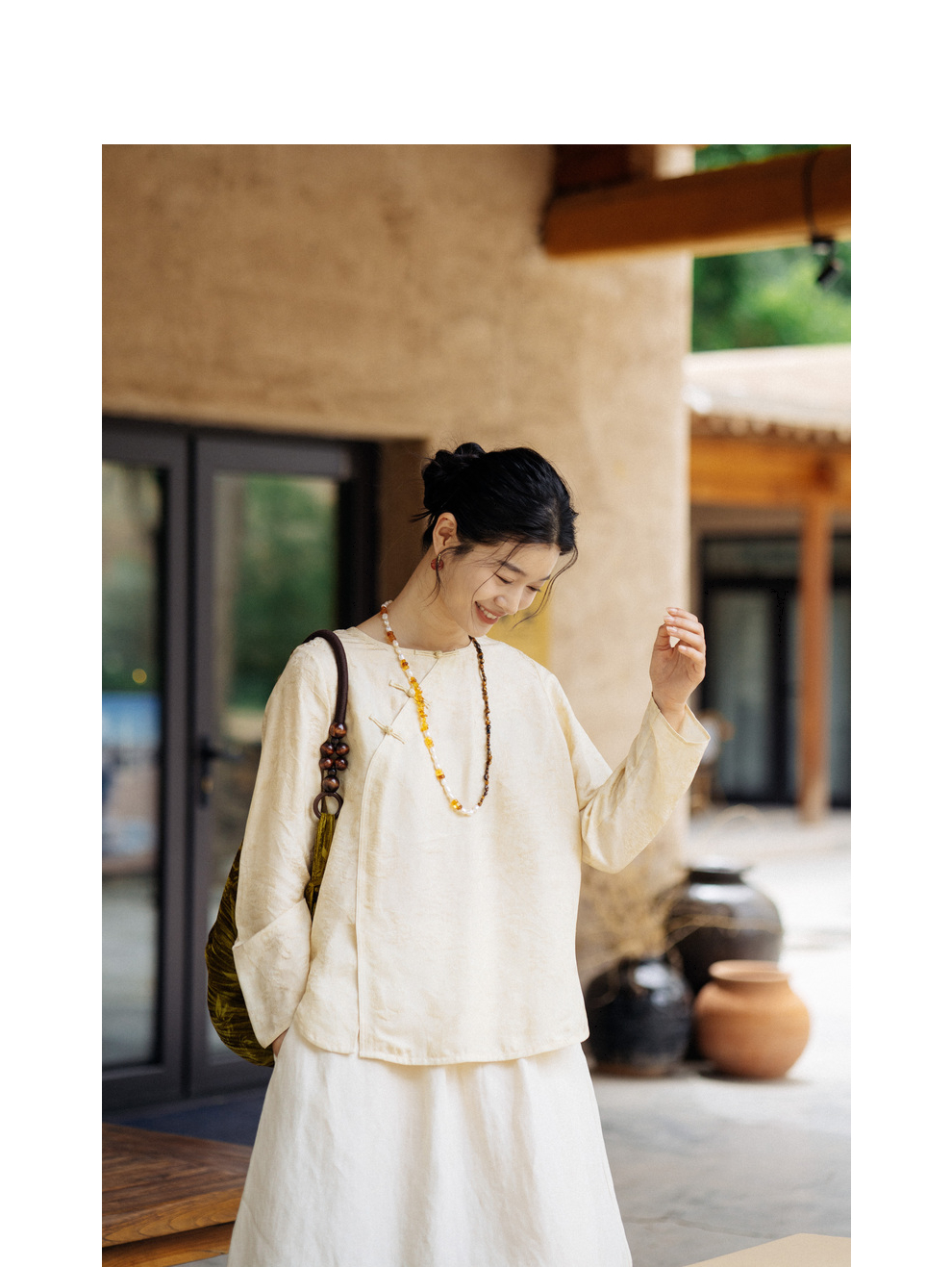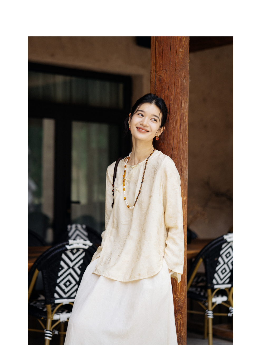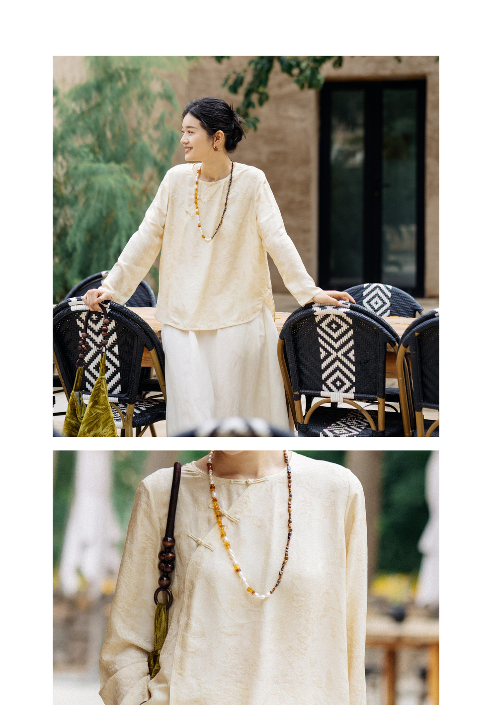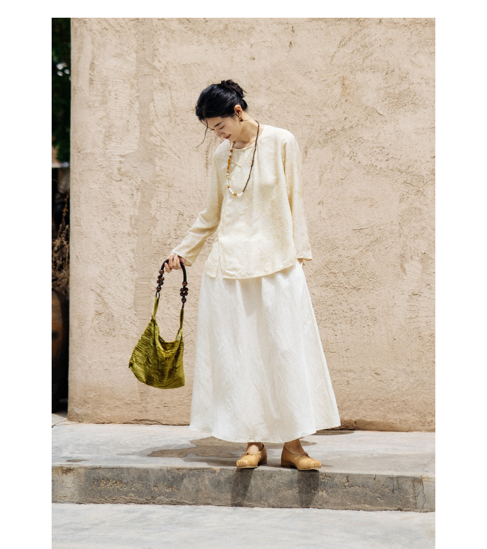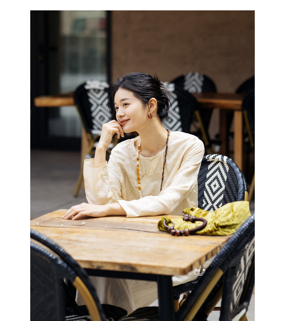 绽放旅行女装430高端新中式提花柞蚕丝衬衫圆领盘扣小衫国风上衣