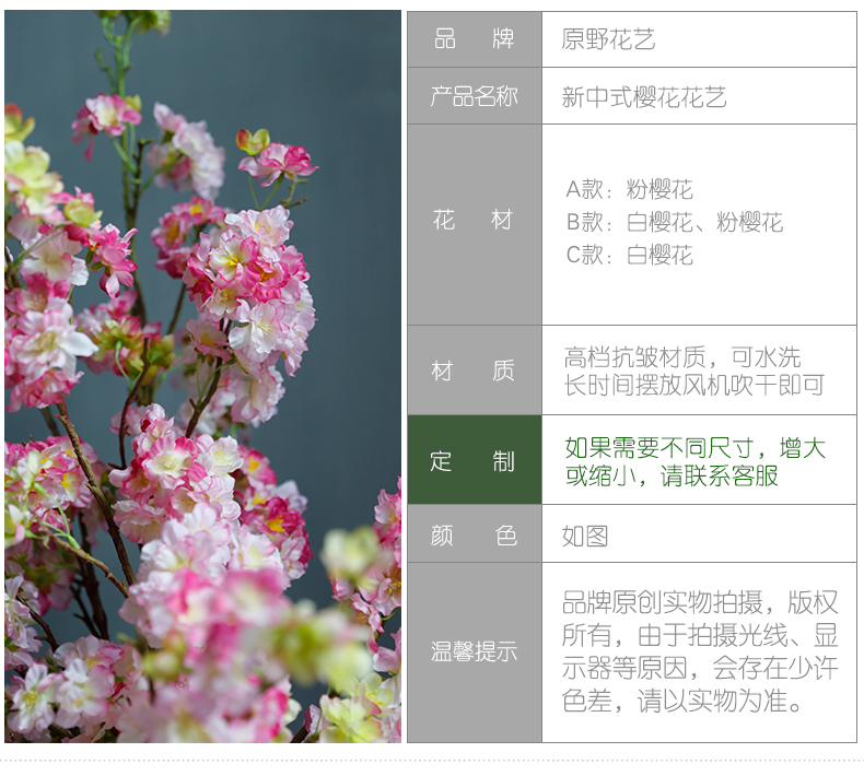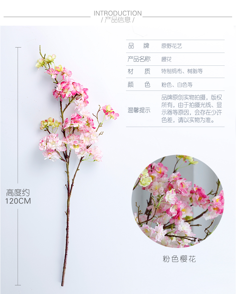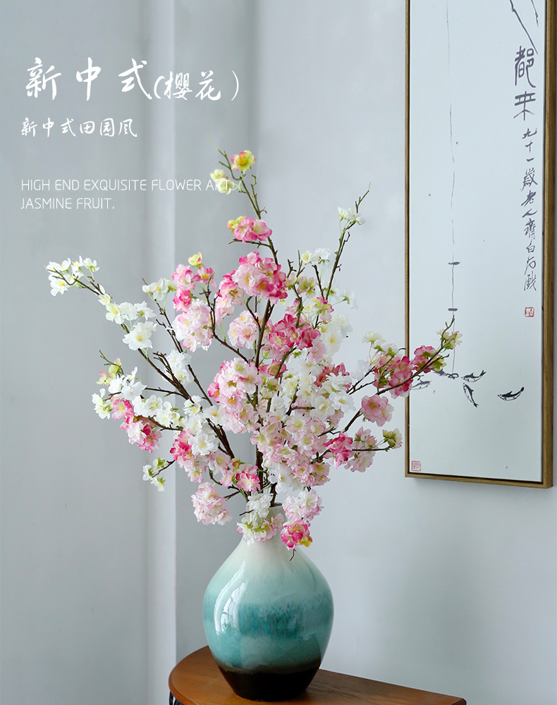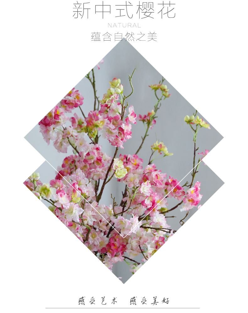 新中式樱花仿真花假花单枝装饰花样板房间酒店前台客厅玄关摆设件