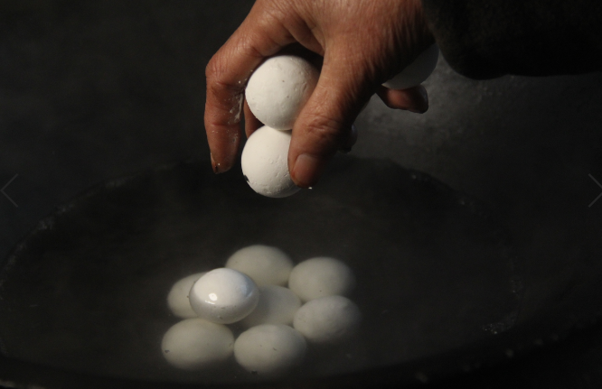▲王升大汤圆和普通汤圆对比图,右边王升大汤圆。