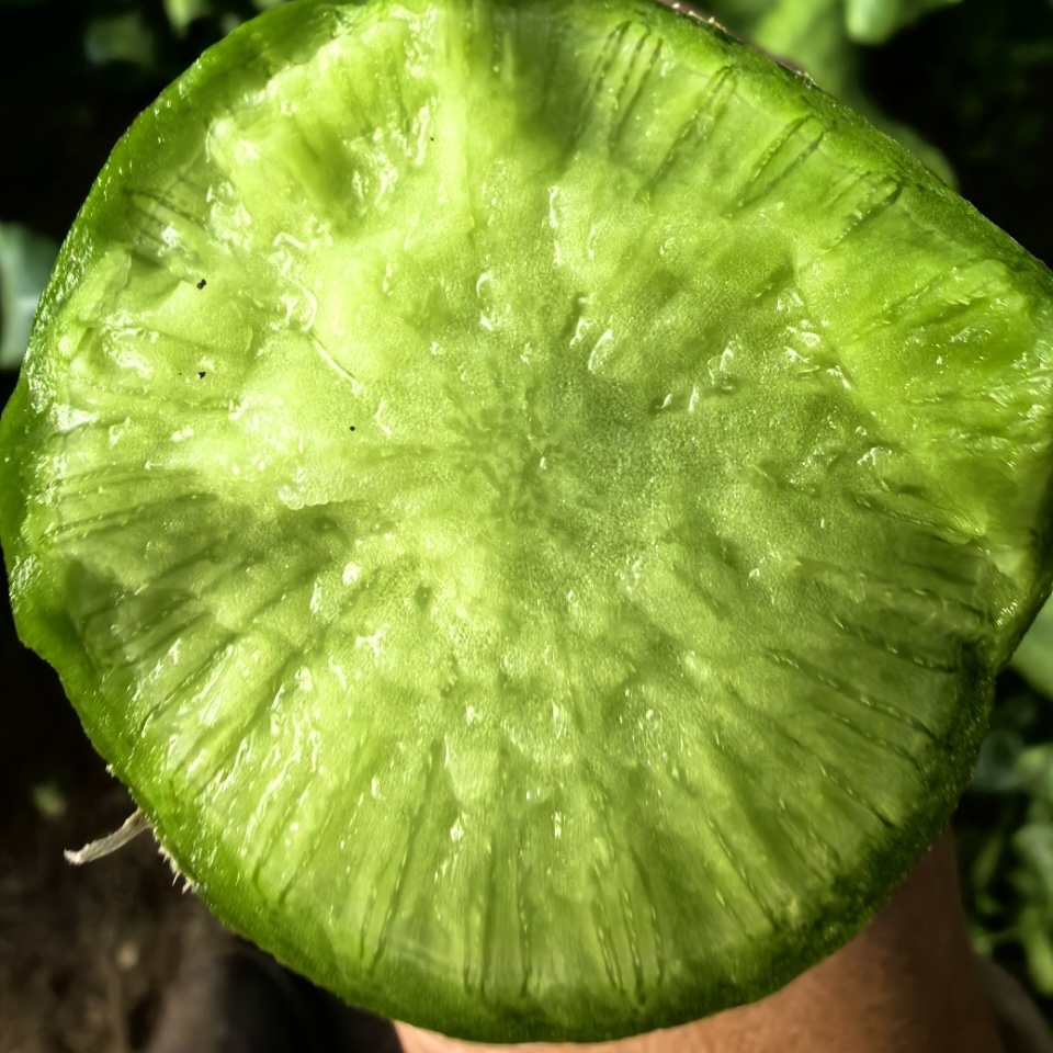 为给番茄找到更好的轮茬作物,去年开始,农场初次尝试在冬季暖棚种植了一亩水果青萝卜,种子是从天津买的,品种正是天津沙窝萝卜,种植地块儿前茬为有机番茄,播种前施用草原无污染发酵羊粪肥做底肥,不用化肥、农药、除草剂,不用科技增甜手段,自然生长,自然成熟。