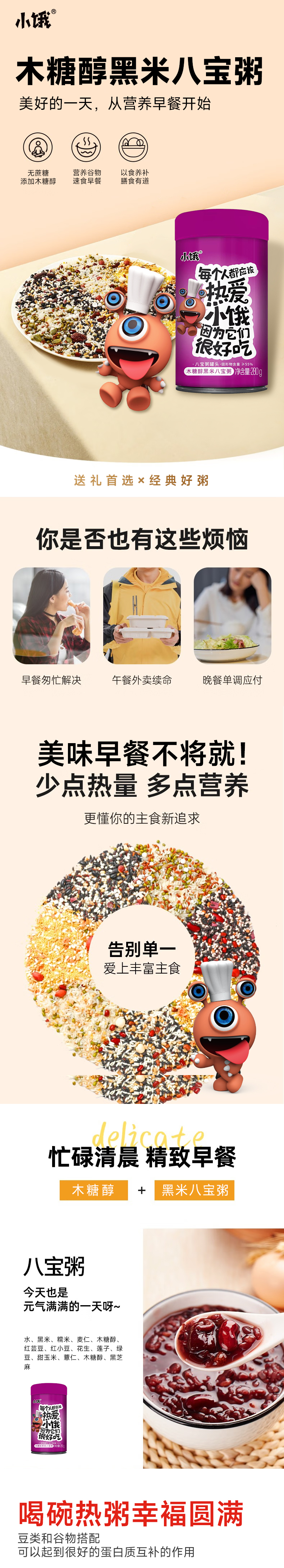 美亚百岁康小饿木糖醇黑米八宝粥280g*12罐