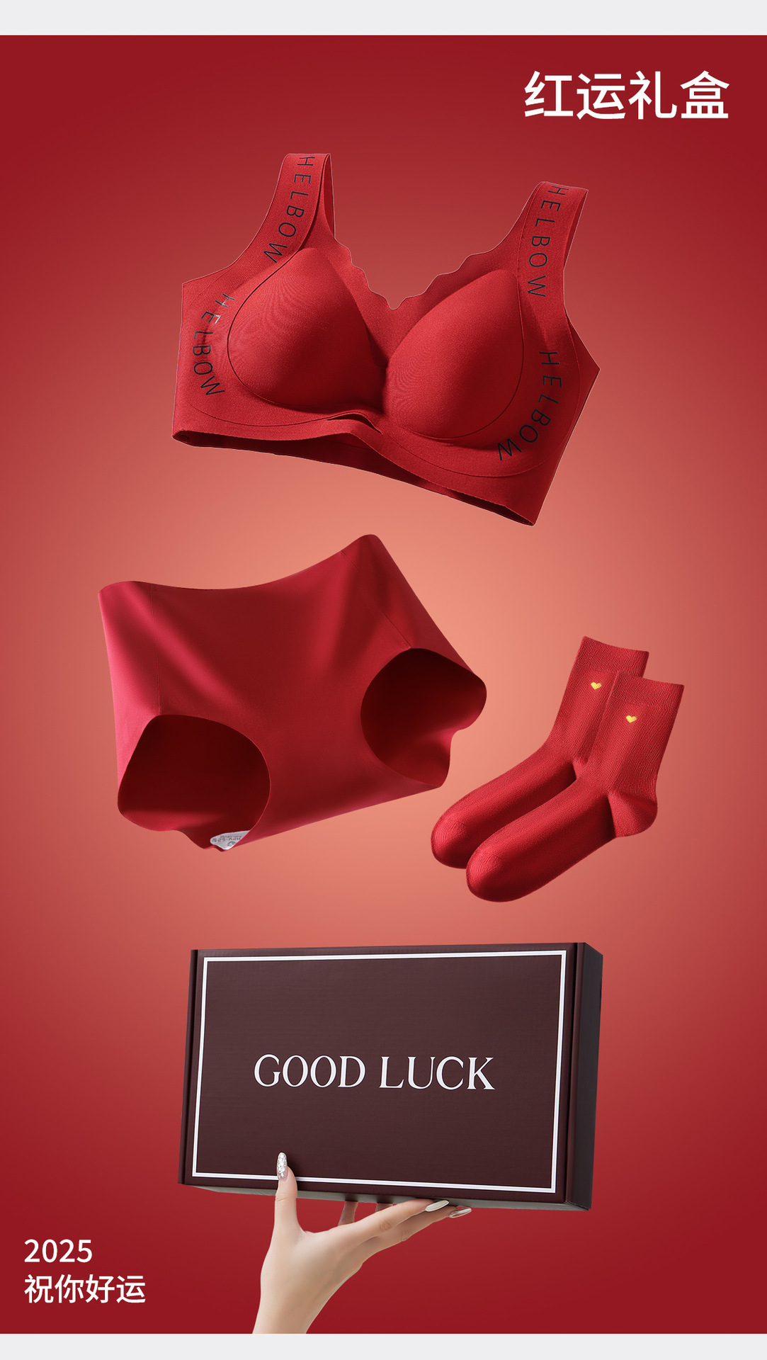 【穿红聚福❗️A类好运文胸套装】幸运加身,就要一红到底!新年红色内衣女士小胸聚拢马年结婚新娘礼盒套装本命年无痕罩袜子内裤