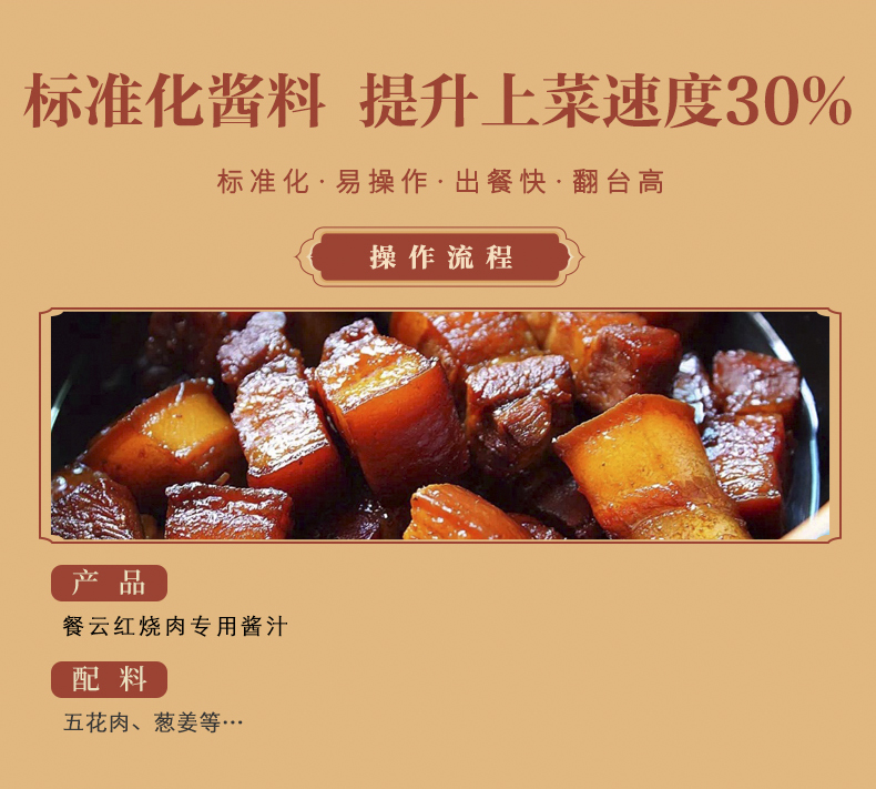 餐云红烧专用 湘菜经典菜品传承于创新 20年湘菜红烧肉匠人操刀研发 让湘菜红烧肉菜品实现标准化操作 连锁门店专用 (酱汁一斤装 一斤做10份)
